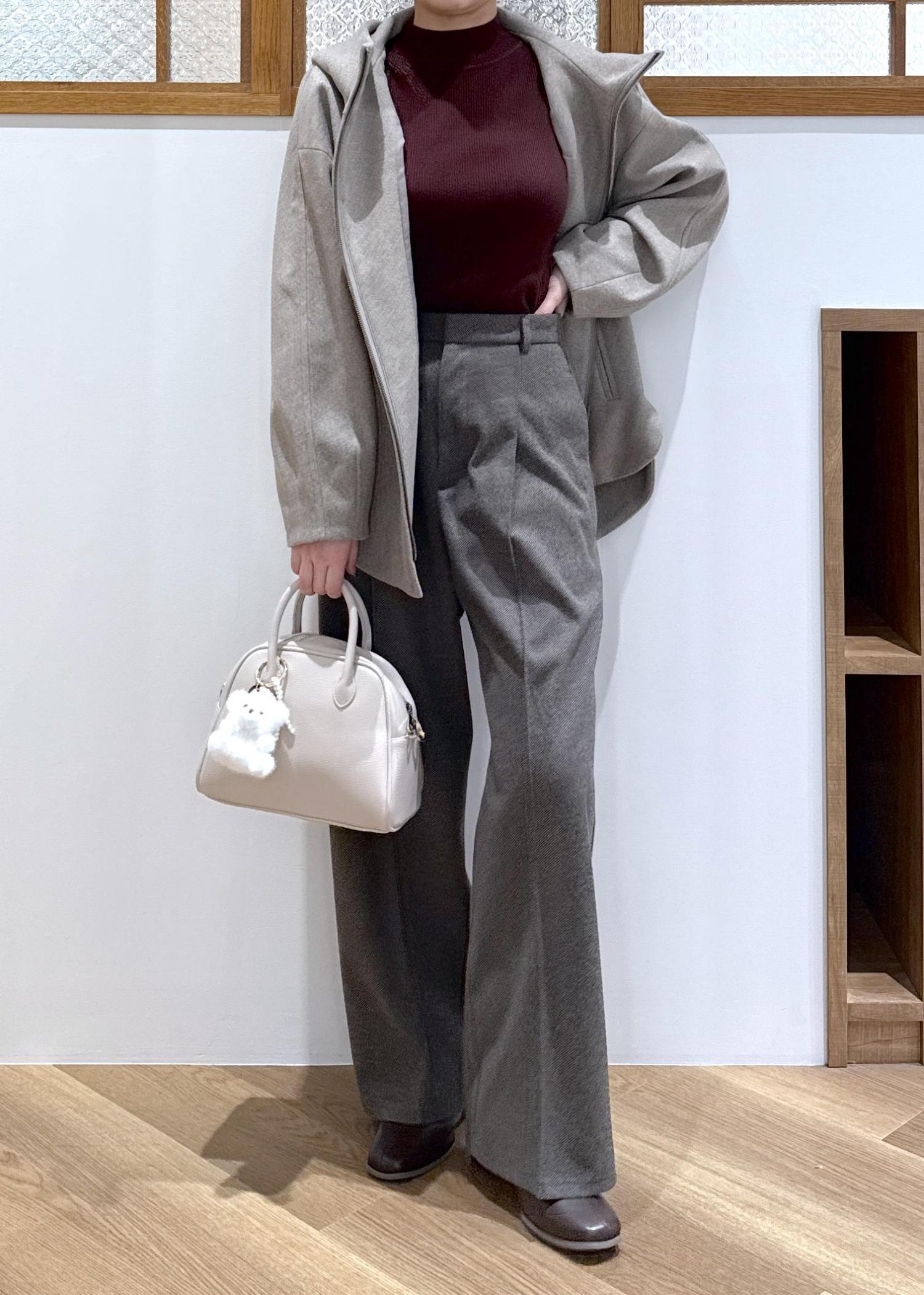 裾が広がりすぎないワイドパンツなのできれいめなコーディネートにも合わせやすいです。 -