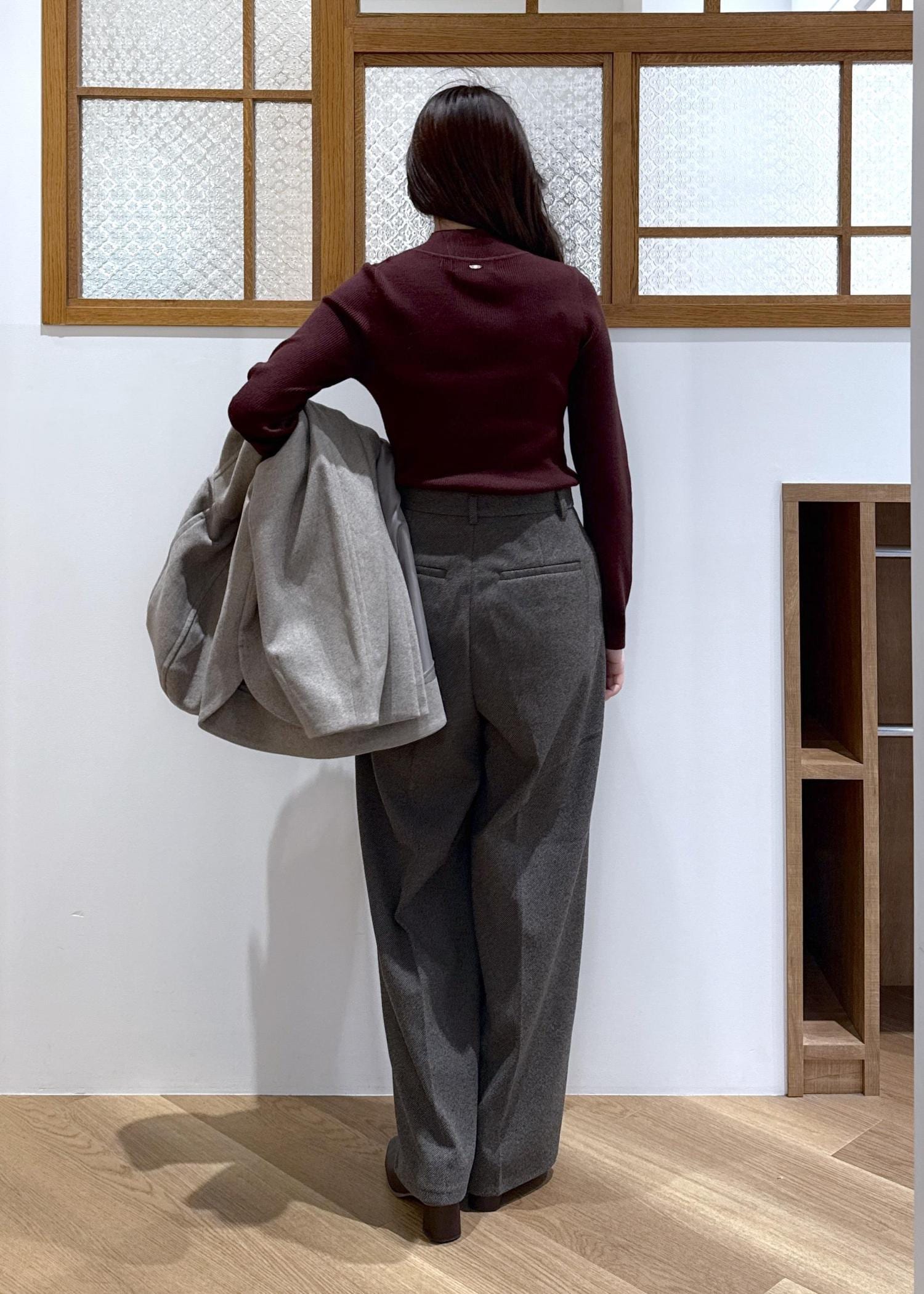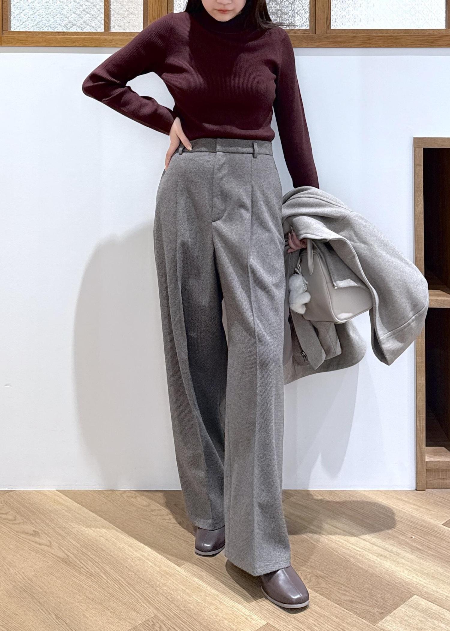 ハイネックは高すぎないデザインで、普段からハイネックを苦手とする私でも、着心地/首周りのバランス共に着やすいアイテムだと思いました。