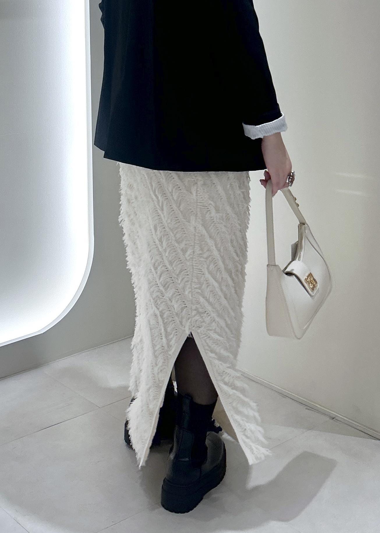 VISフリンジニットナロースカートキナリ / F¥6,589レビュー163cmで足首まで隠れる着丈です。