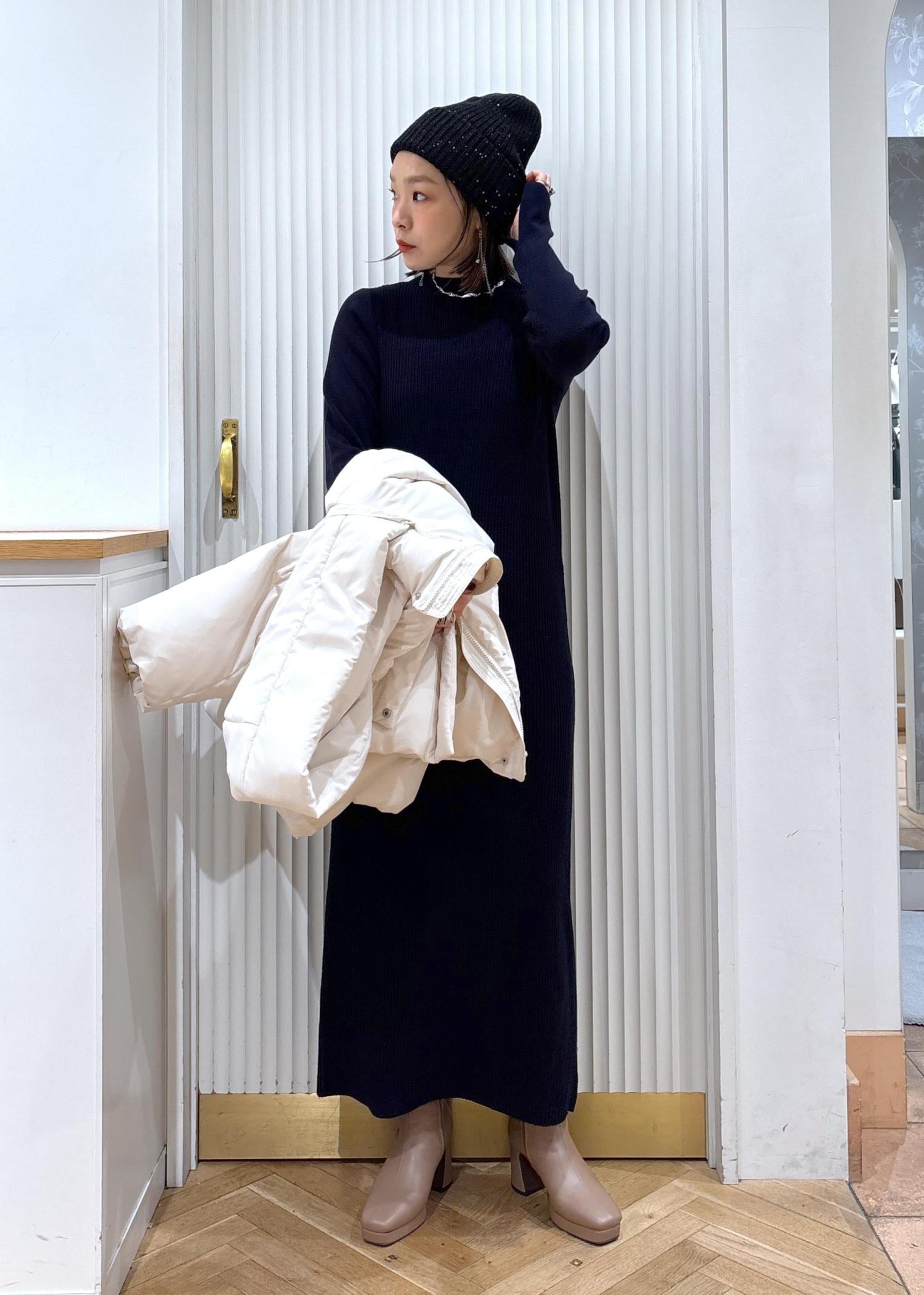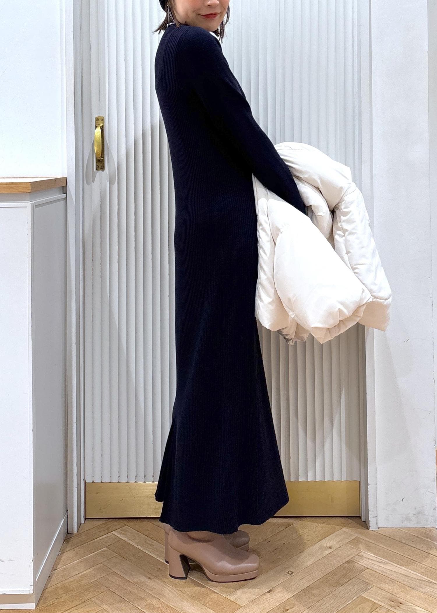 前回ご紹介したニットワンピースを普段使いに着こなすカジュアルコーディネート。