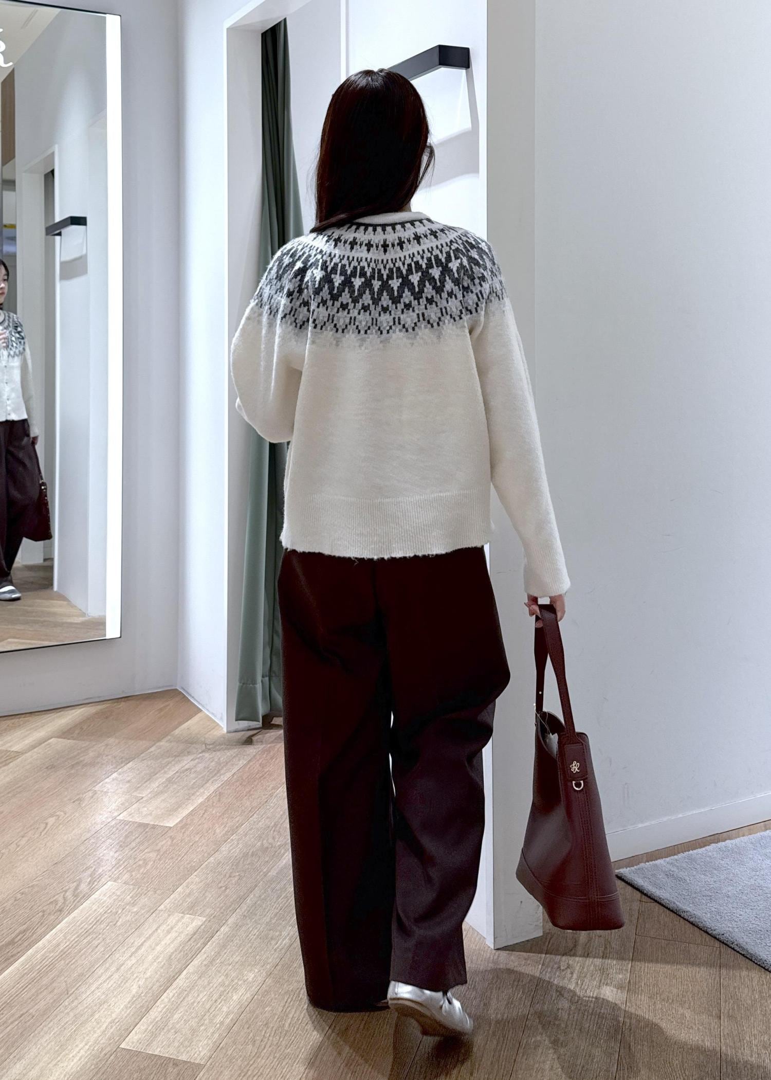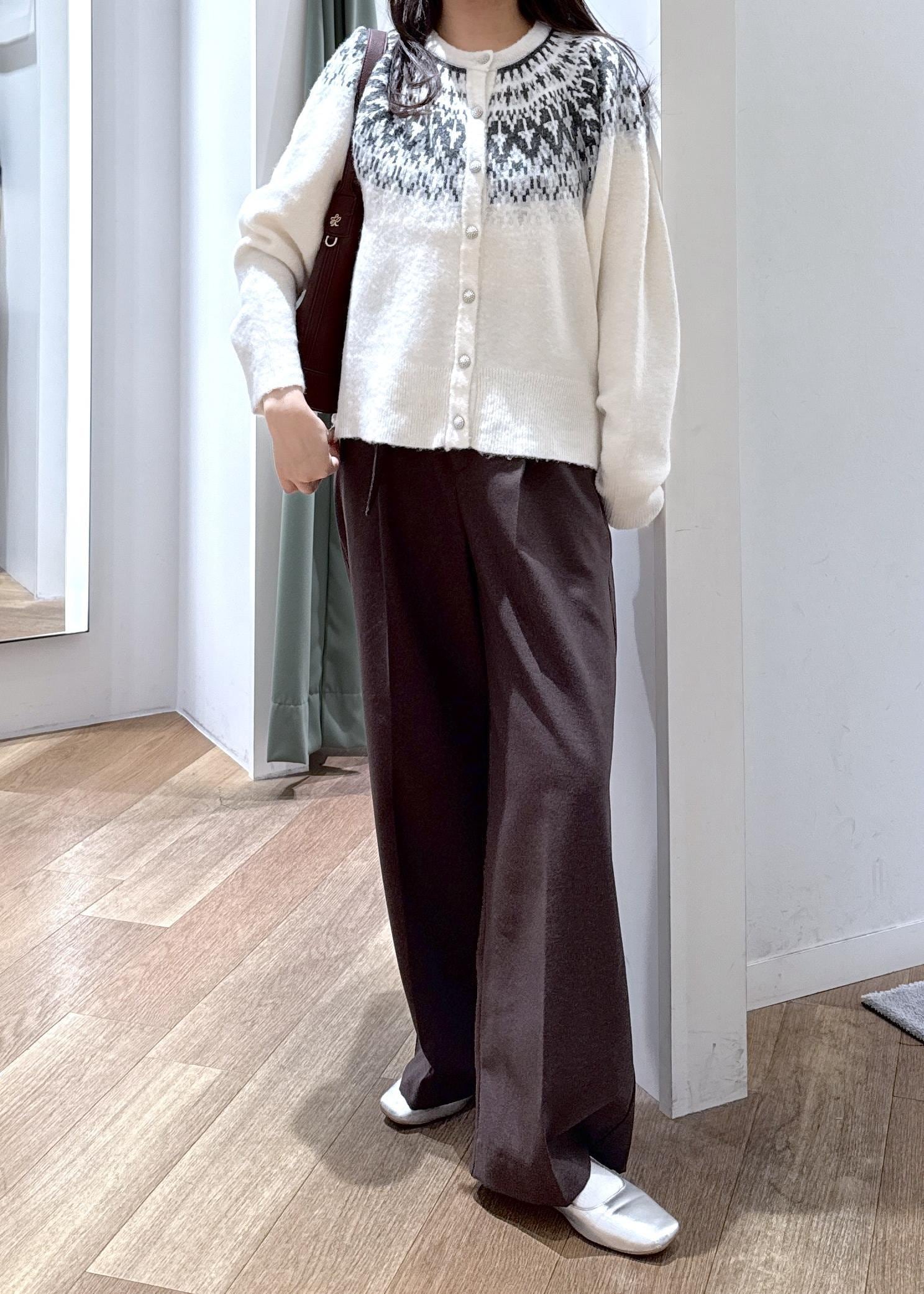 ノルディック柄が冬らしい印象のコーディネートです。