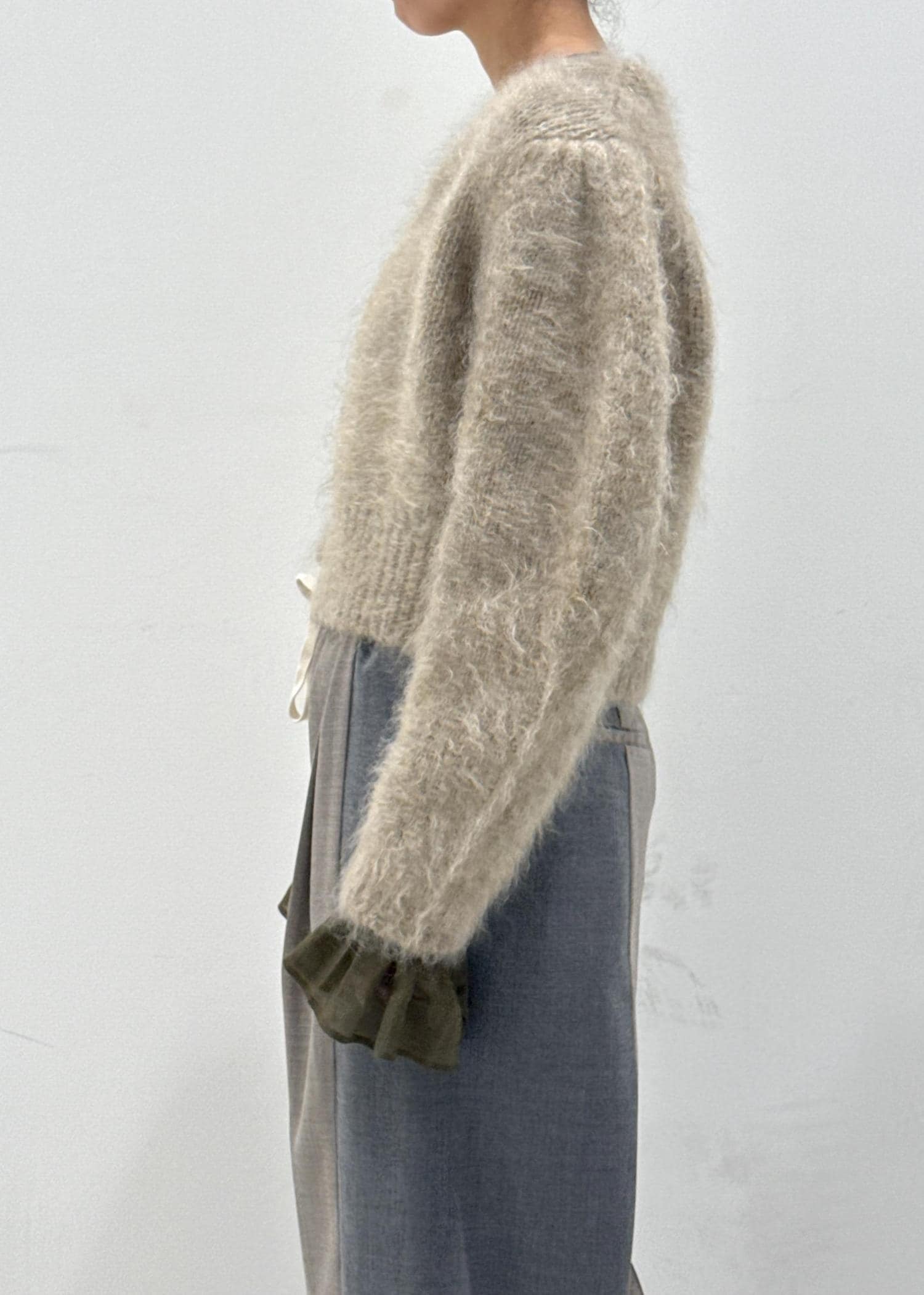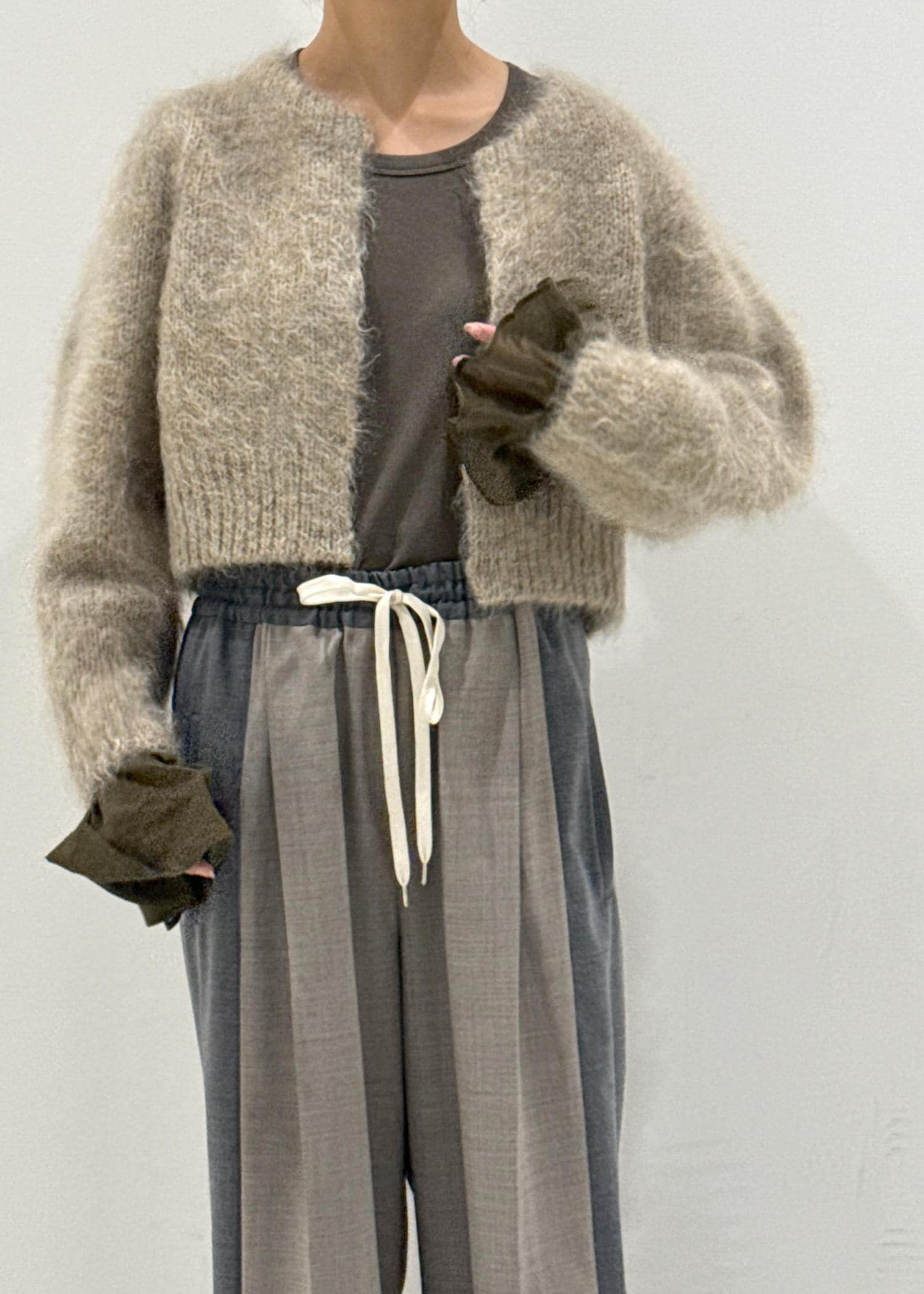 EMOELLE【EMOELLE】モヘアファーボレロカーディガンキャメル系 / F¥35,200レビュー毛足が長くふわふわとしたニットです。着丈は短めの為、ハイウエストのボトムと相性○お袖はボリュームがあり、着映えるデザインです。
