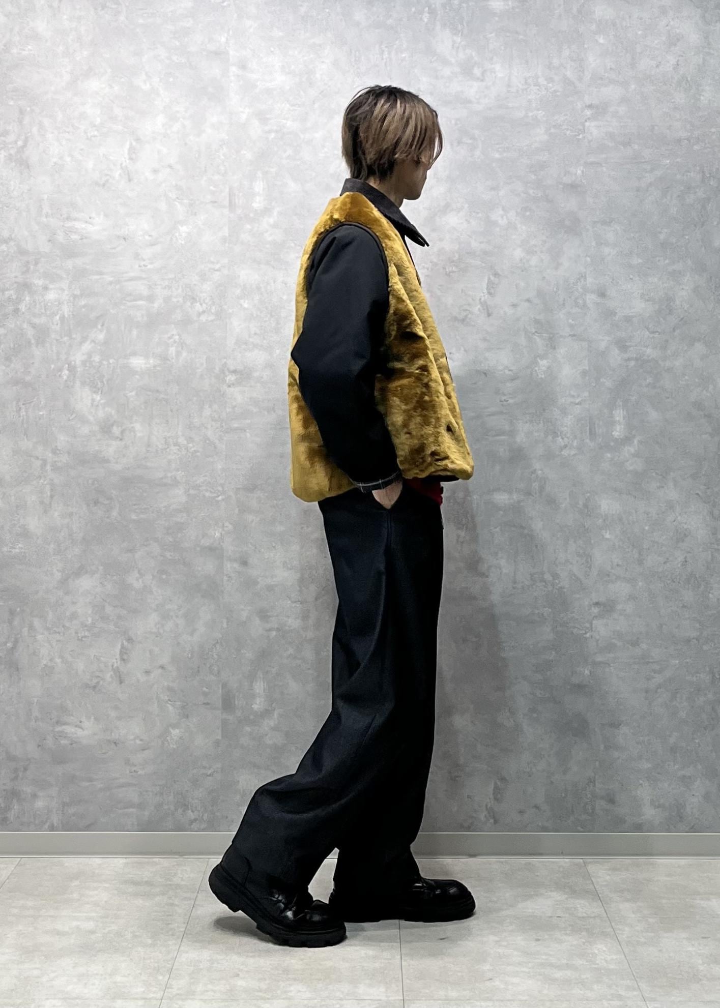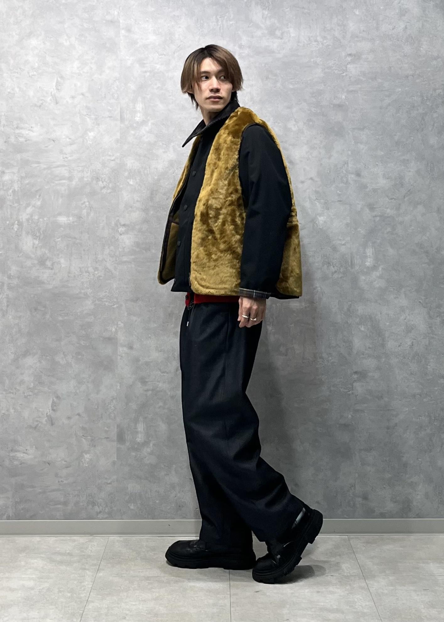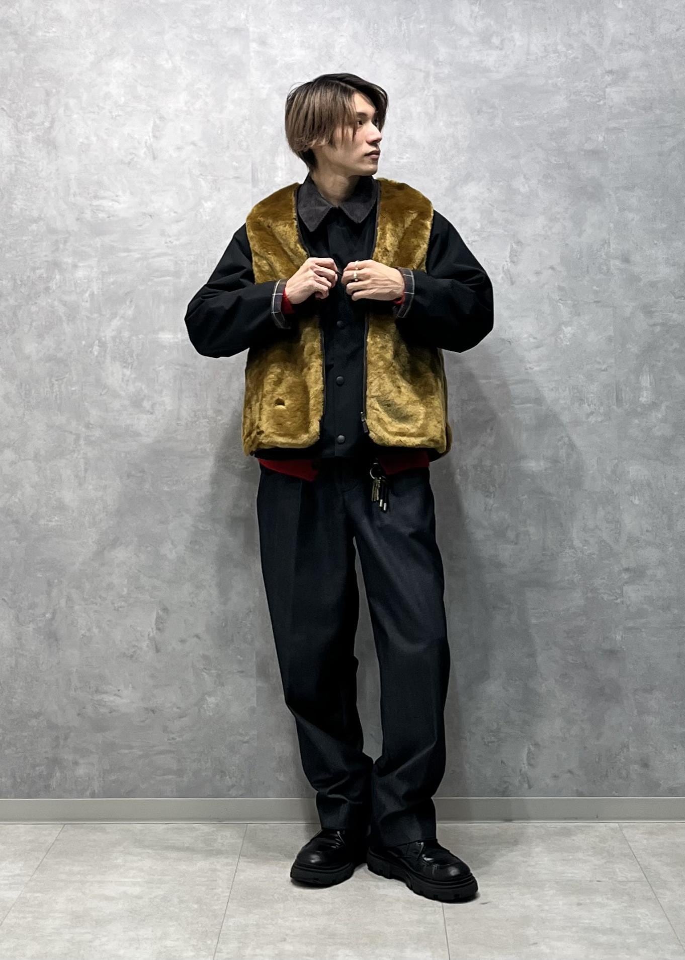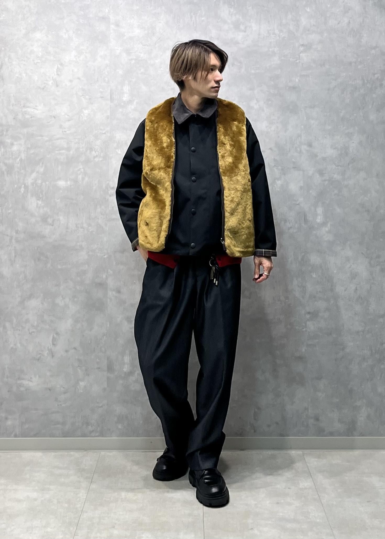 バブアーのベストもアクセントとして合わせたスタイリングにしました。