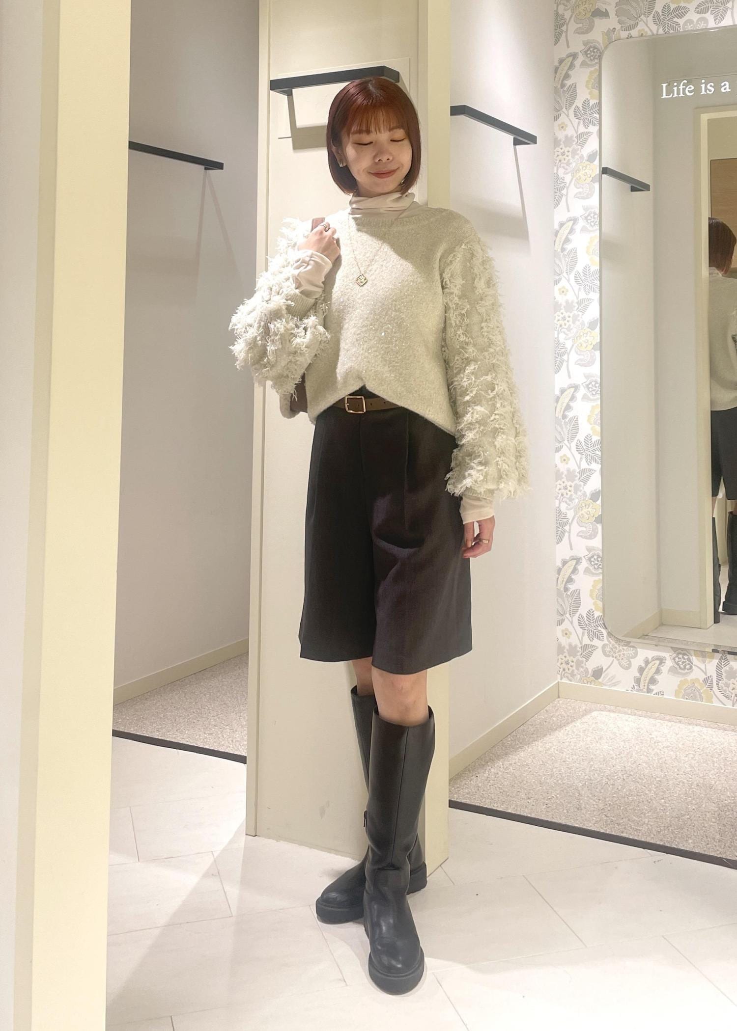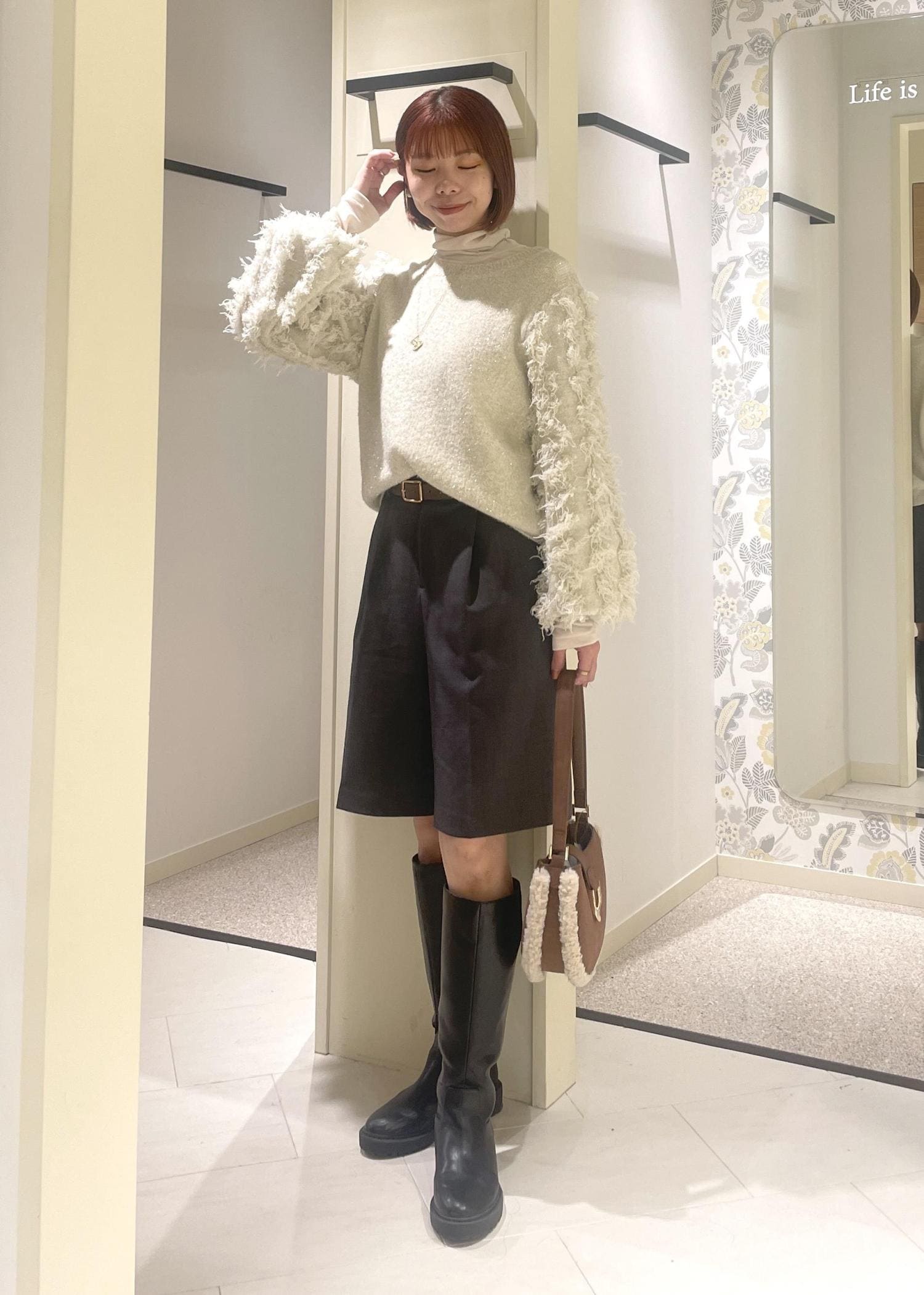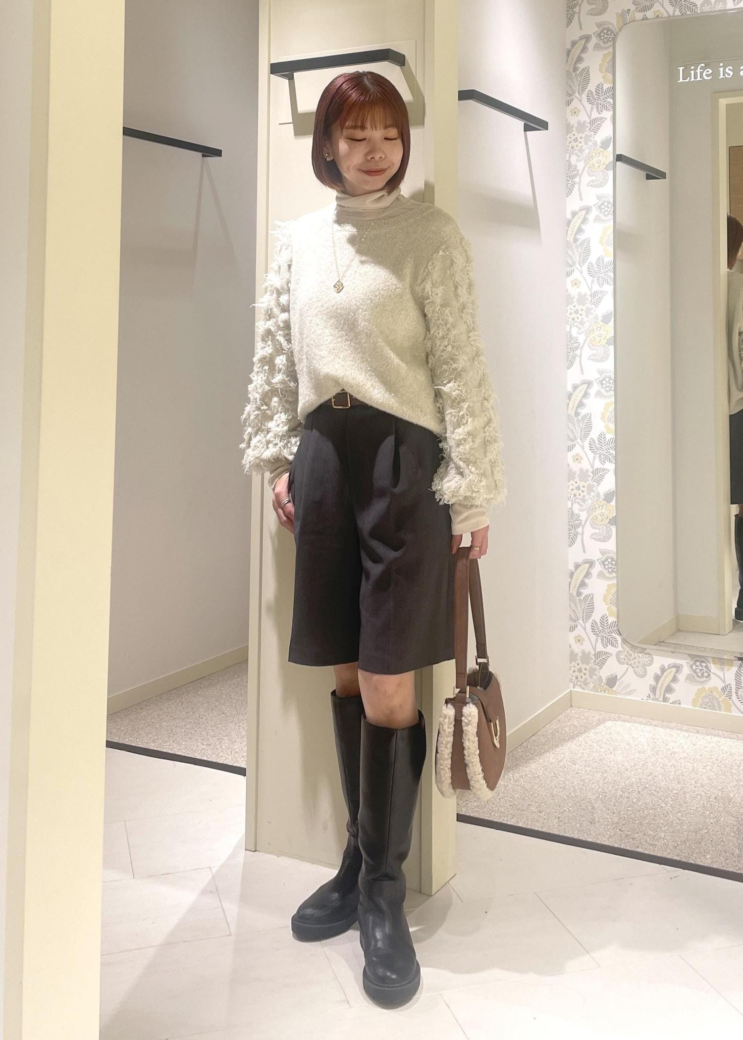 ベロアのタートルをレイヤードし、ハーフパンツで軽やかに合わせてみました。