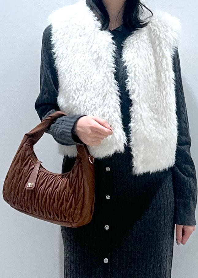 VISアソートファーショートベストキナリ / F¥8,899レビューふんわり軽く、秋冬に最適なフェイクファーベストは着るだけでこなれた印象を与えます。