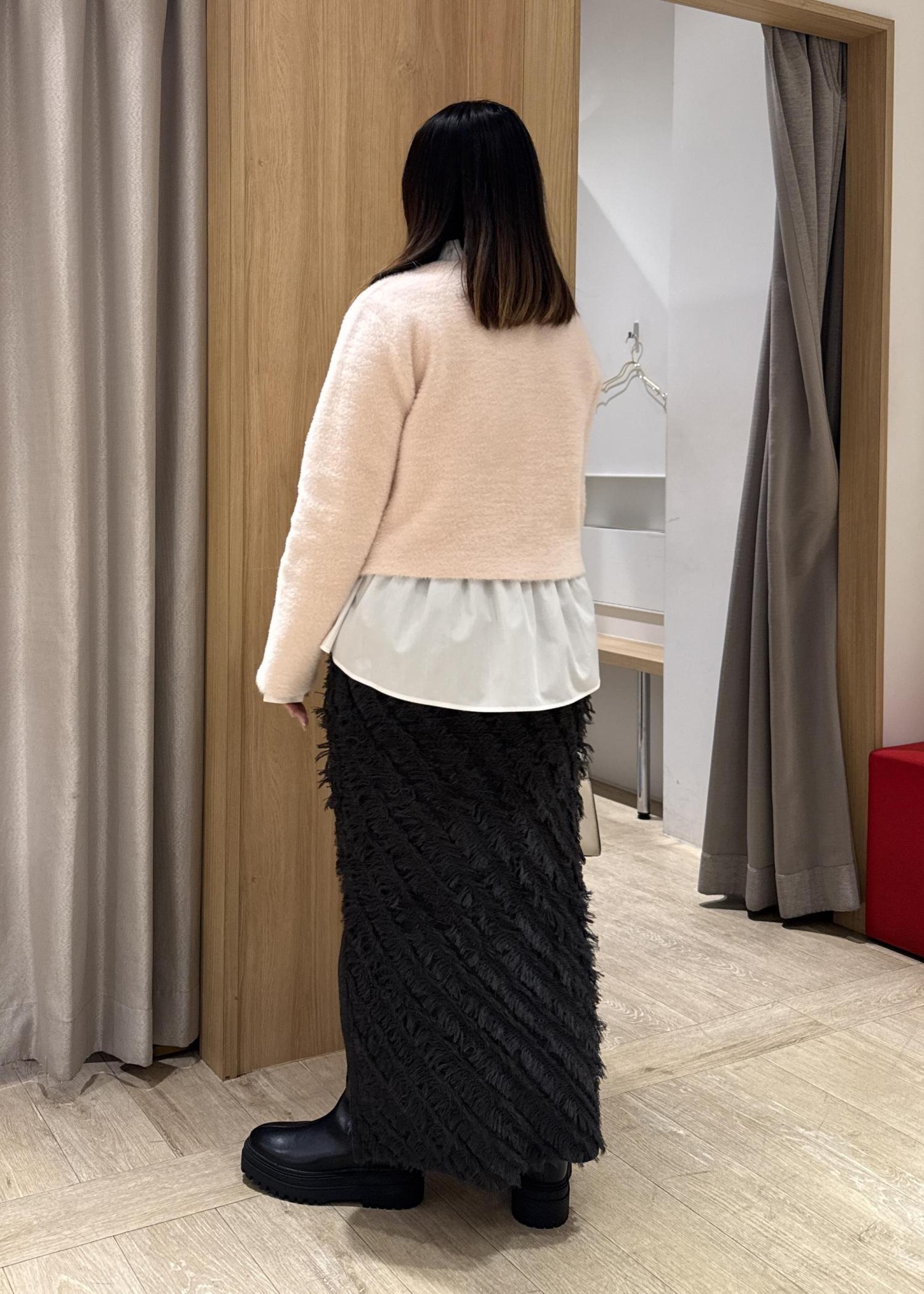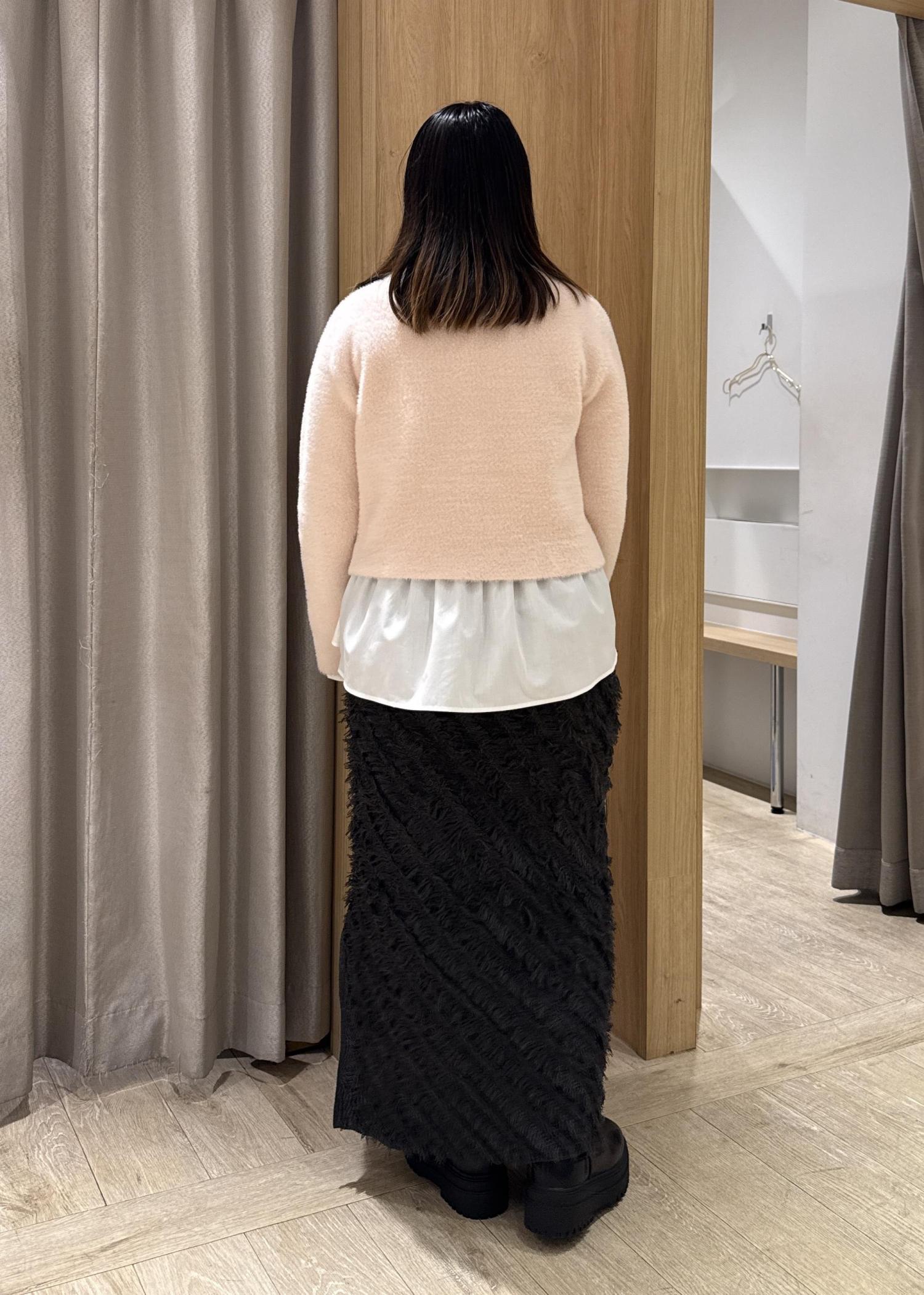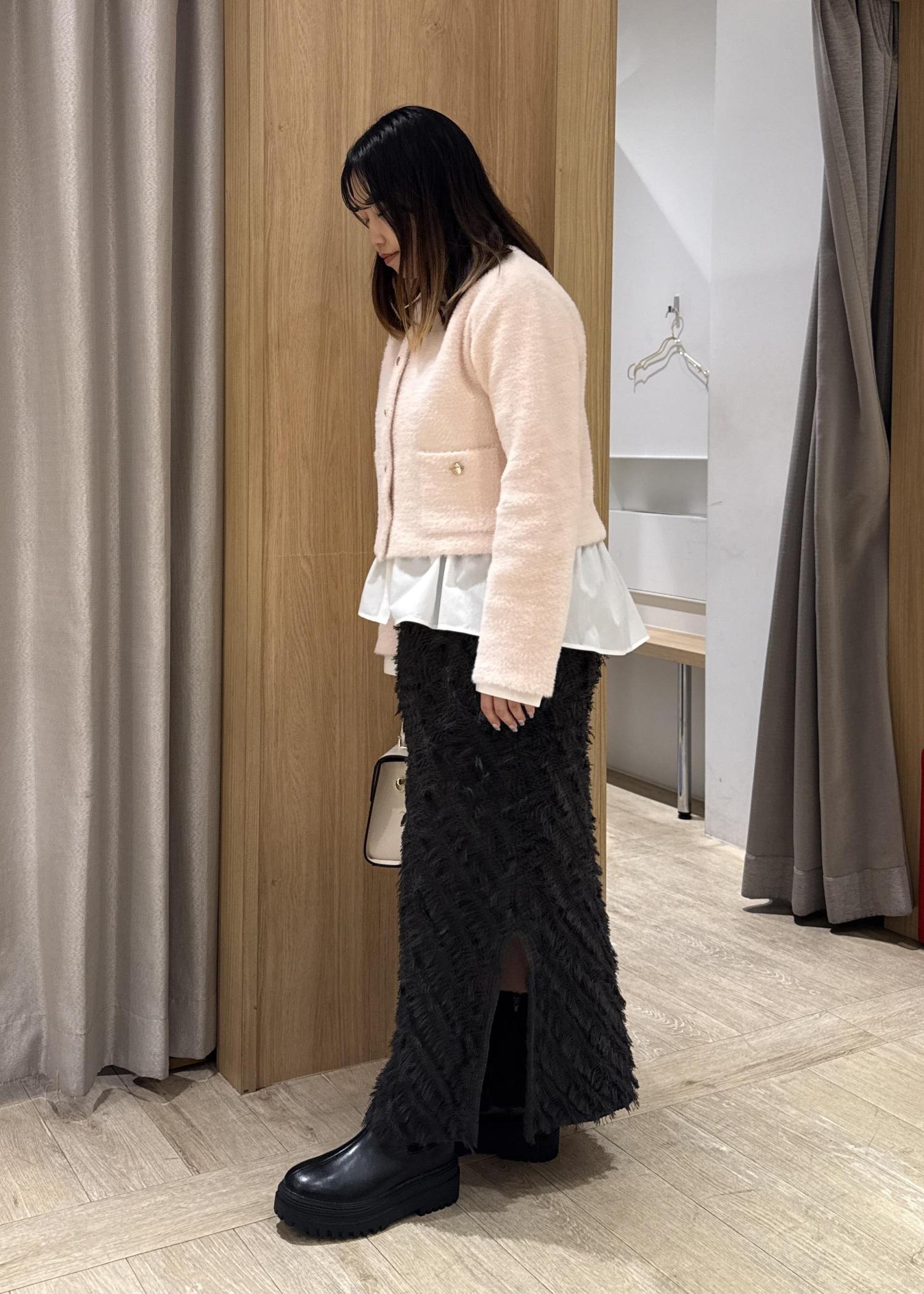 VISフリンジニットナロースカートチャコール / F¥6,589レビュー153cmの私ですが、足首にかかるくらいでした。