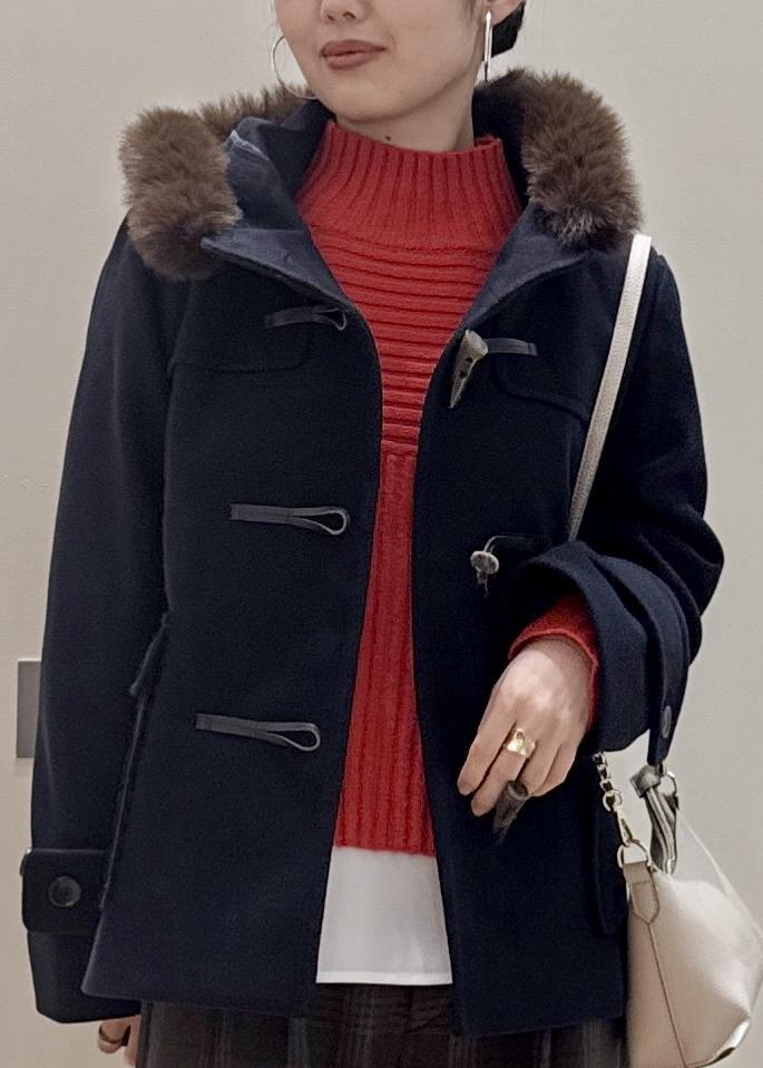 ROPÉ PICNICジャージーメルトンシリーズ ファー付きショートダッフルコート/リンクコーデネイビー / M¥13,200レビュー軽くて着やすいダッフルコート。