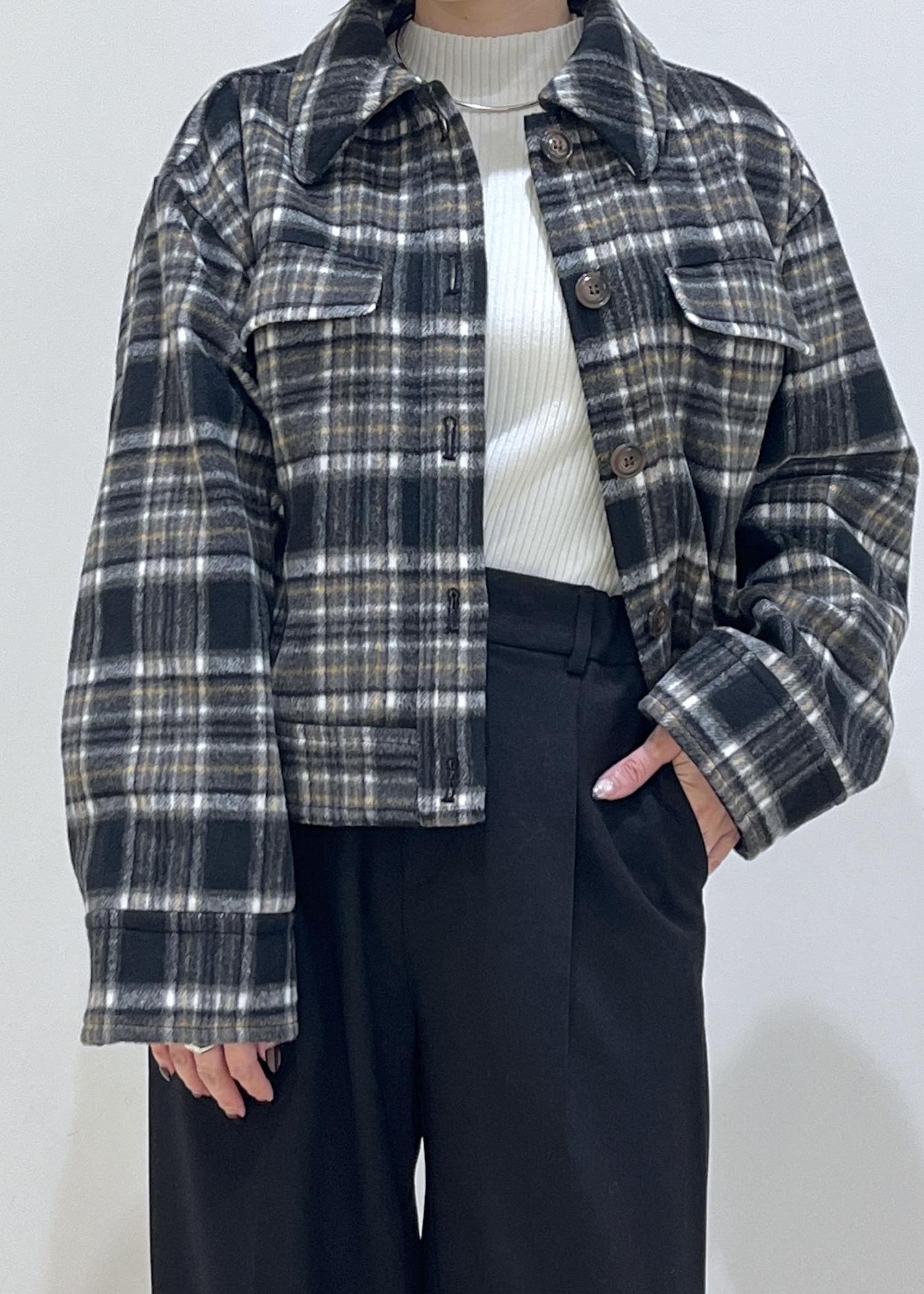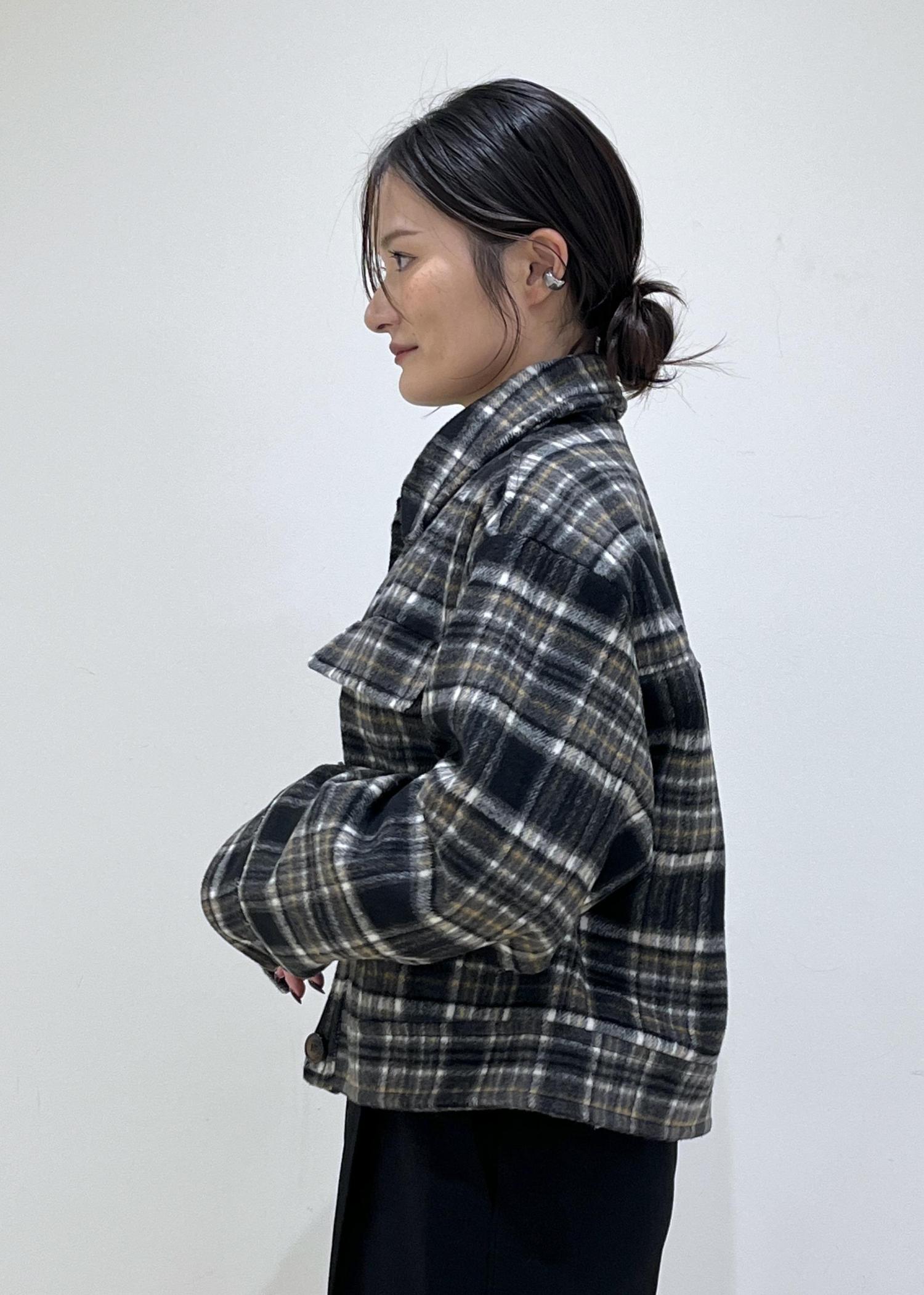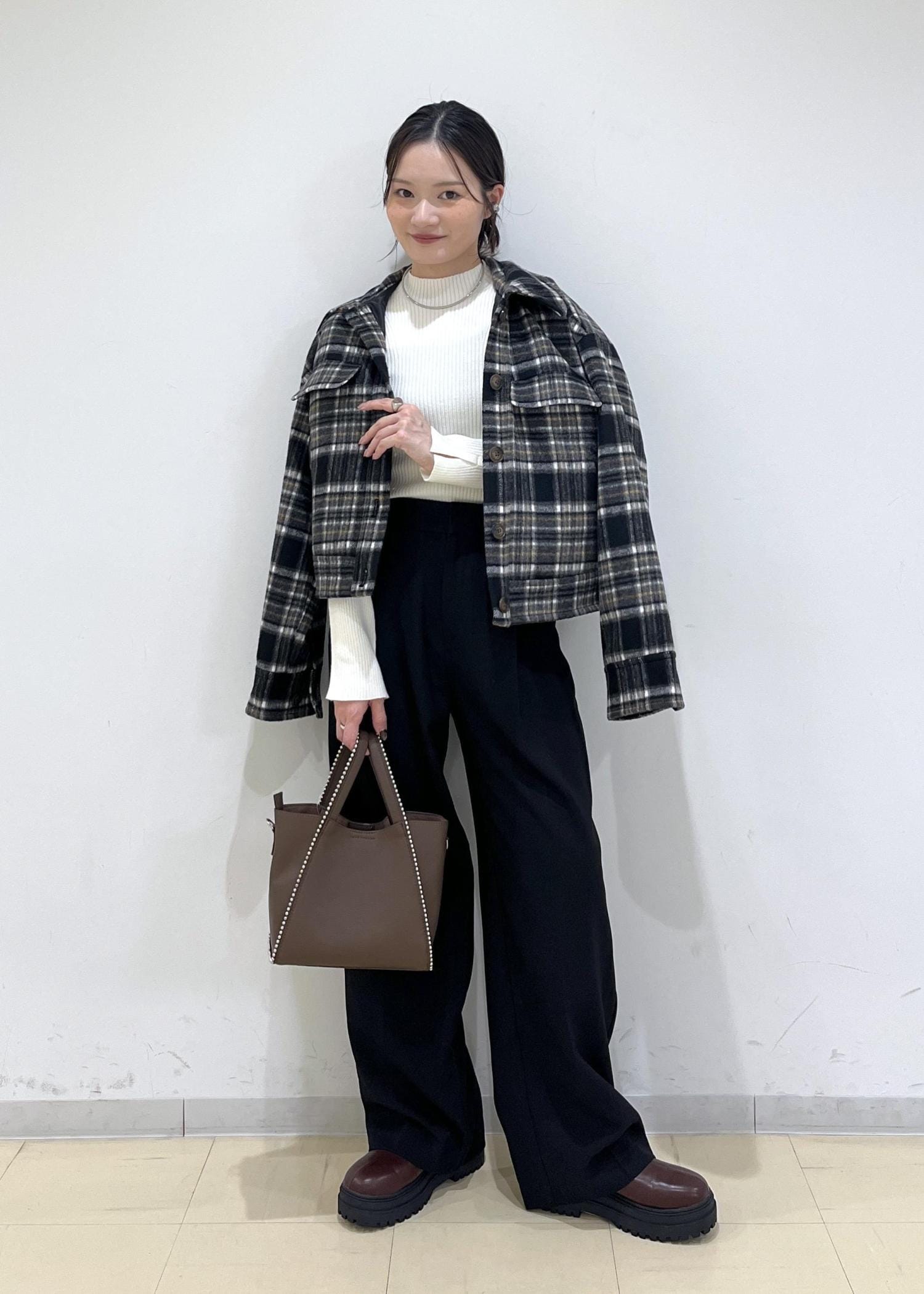 チェック柄アウターが主役。