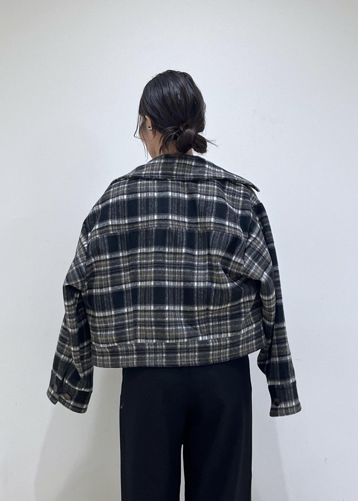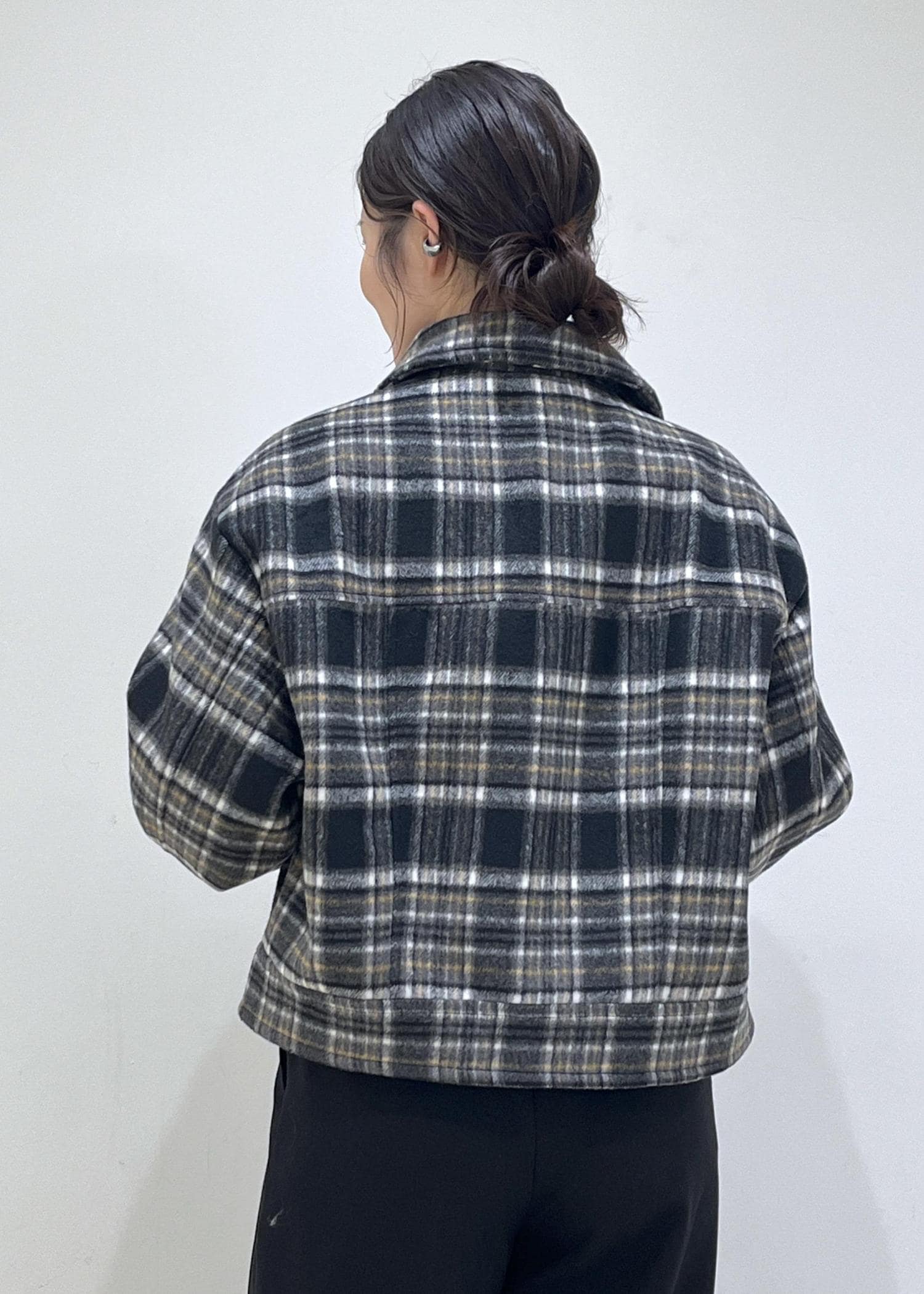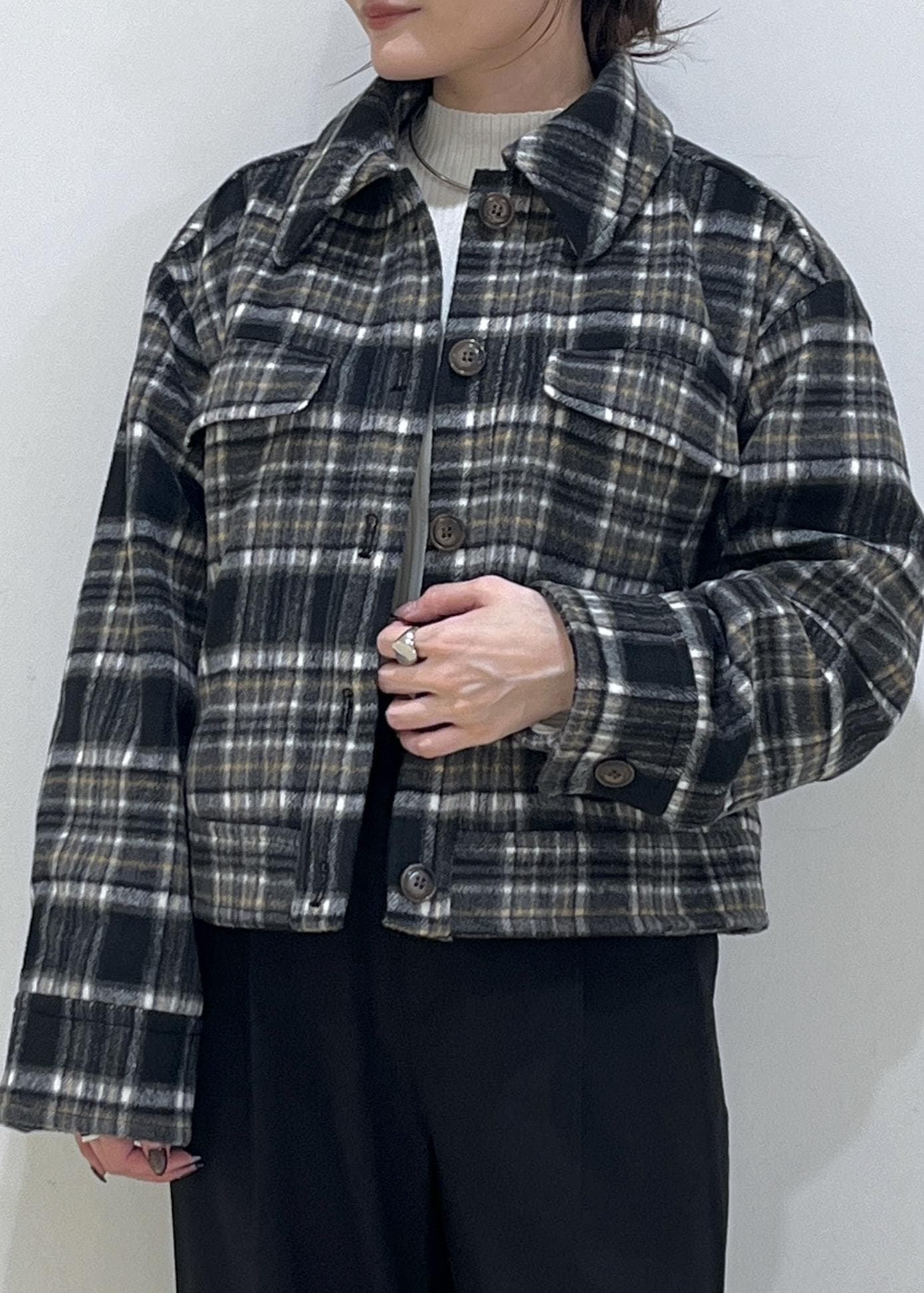 チェック柄アウターが主役。
