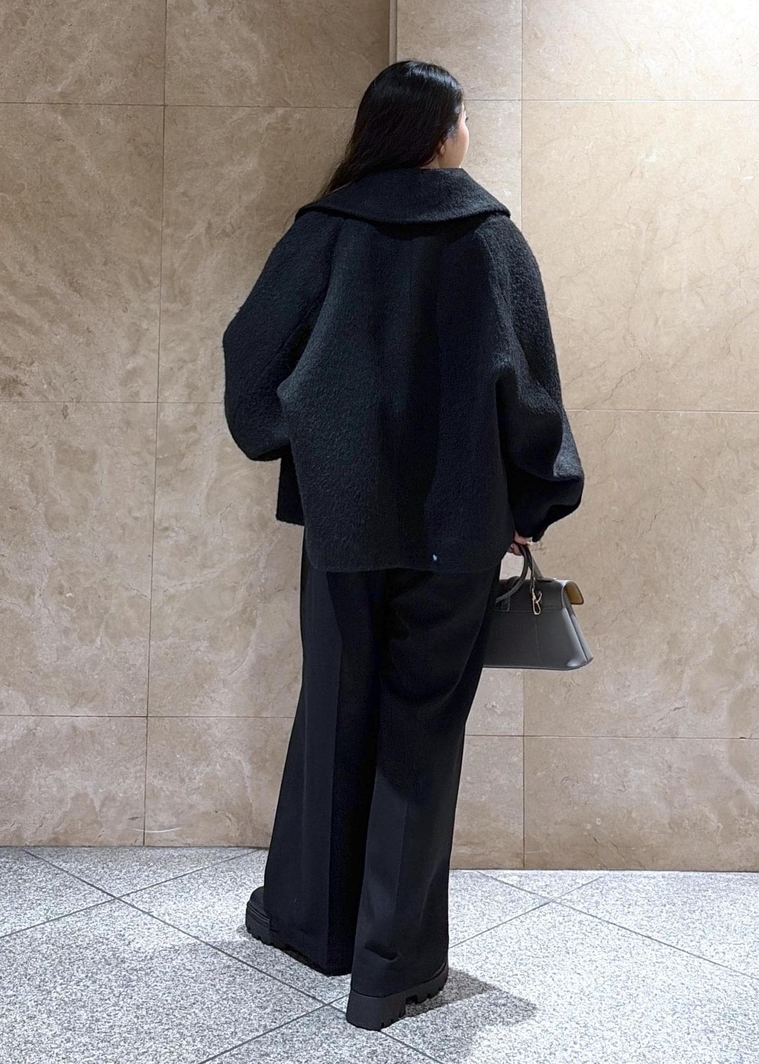 予約VIS【アウター総選挙1位】ビッグカラーモモンガシャギーショートコートブラック / M¥10,989レビュー後ろから見た時のほわんとしたスタイルが