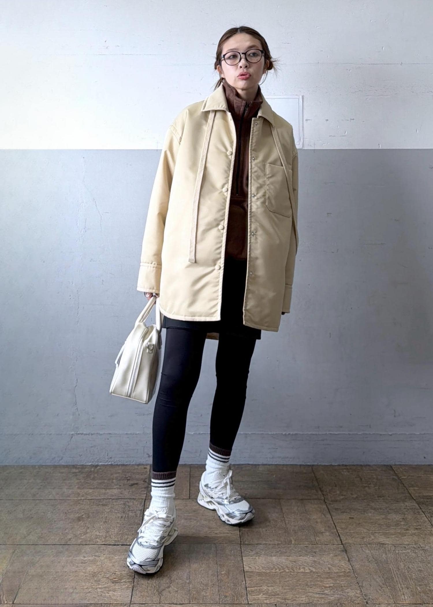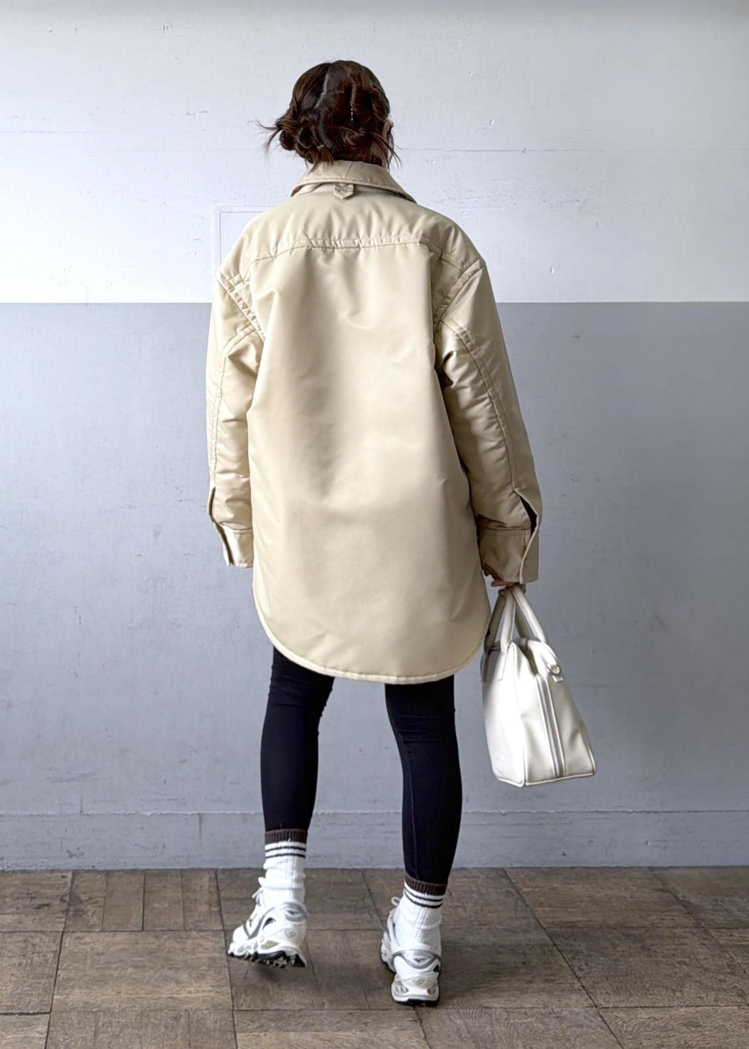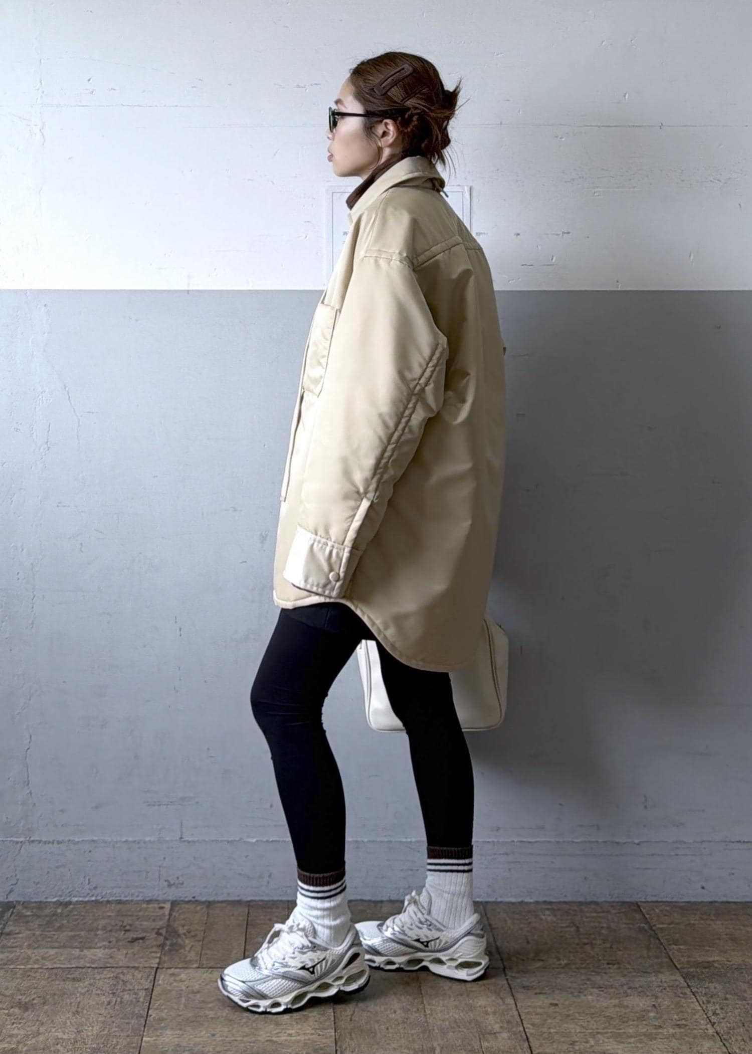 ゆとりがあるので中に合わせるアイテムの厚み・シルエットを問わず着用頂けます。
