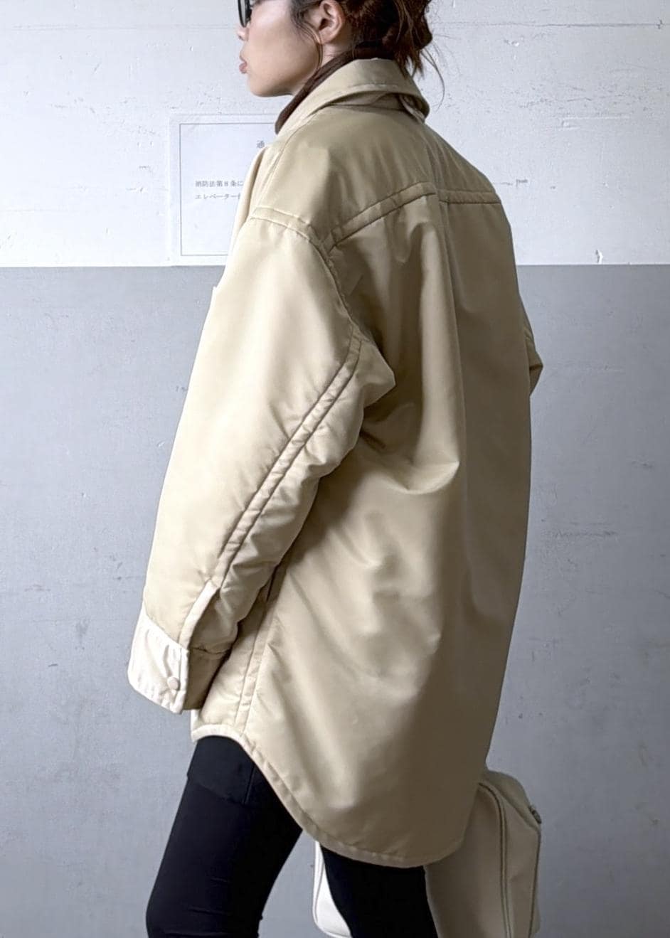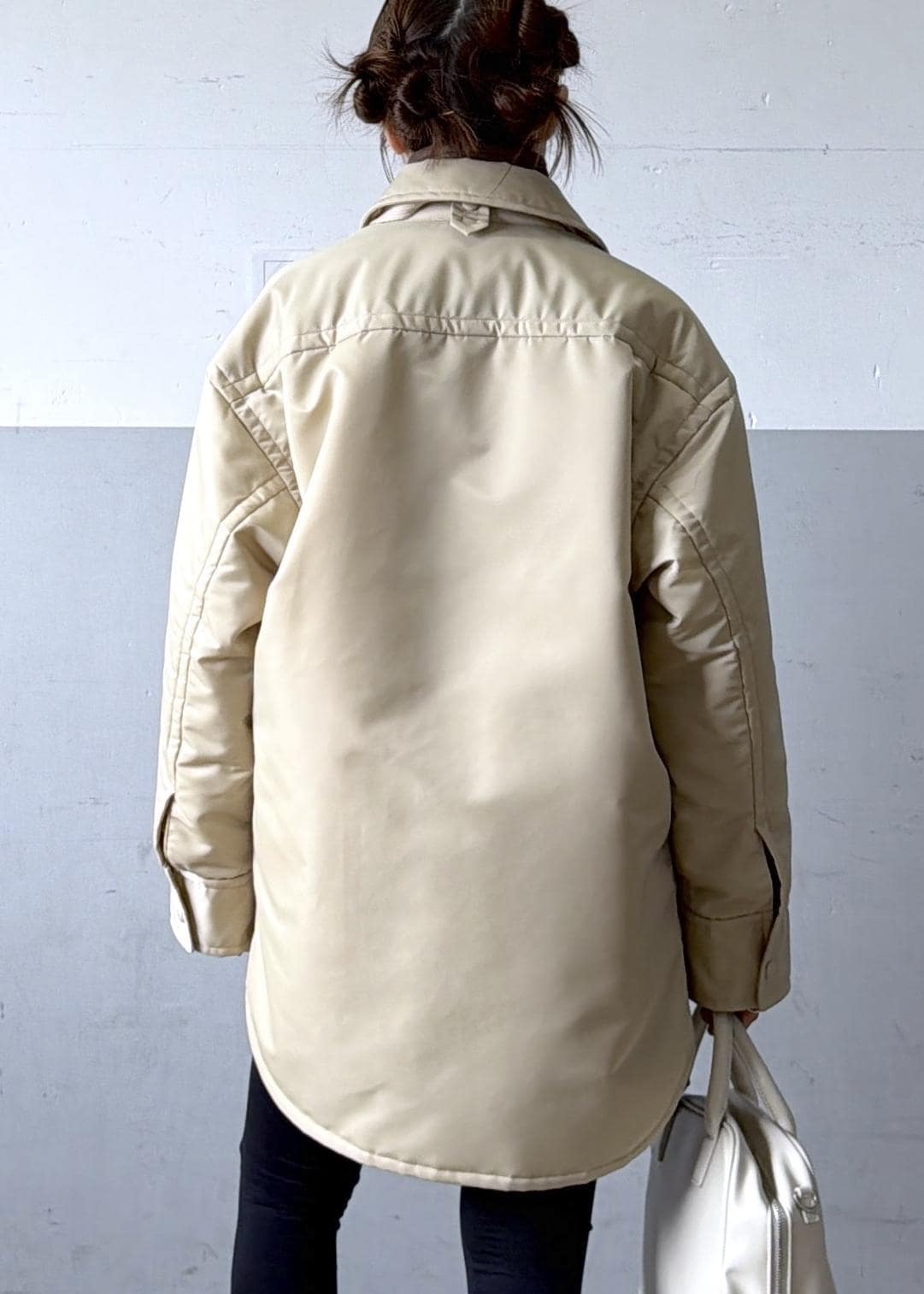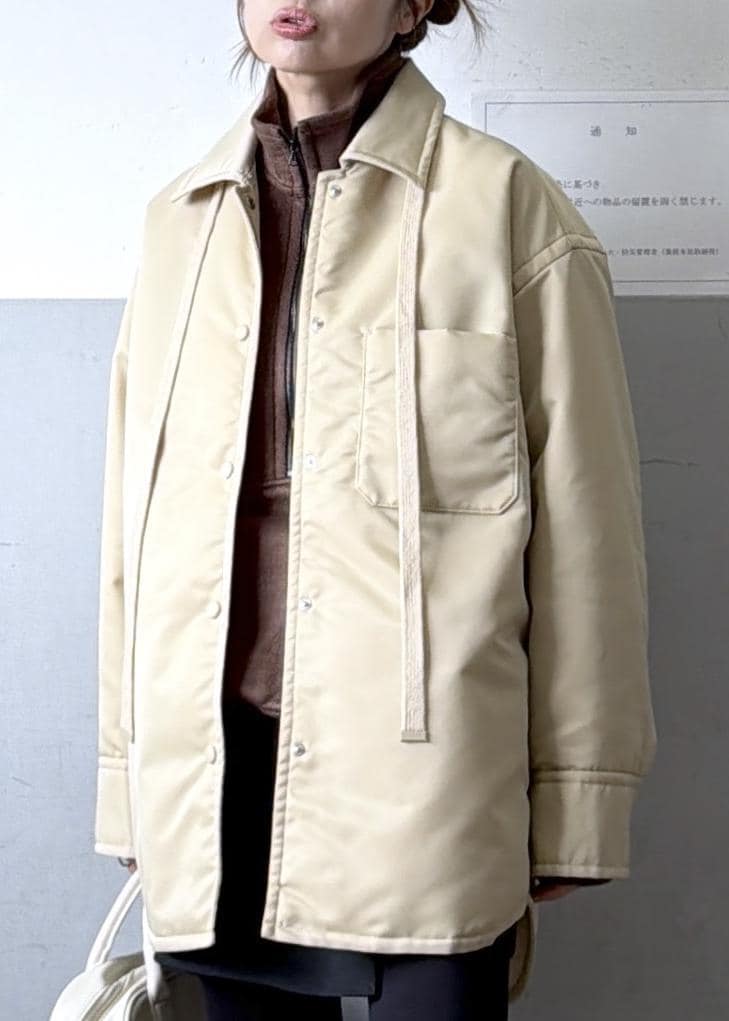ADAM ET ROPÉ FEMME【サステナブル】ボンバーツイルパデットシャツブルゾン/撥水ベージュ / F¥29,700レビューダウンに劣らない暖かさの機能性中綿素材。
