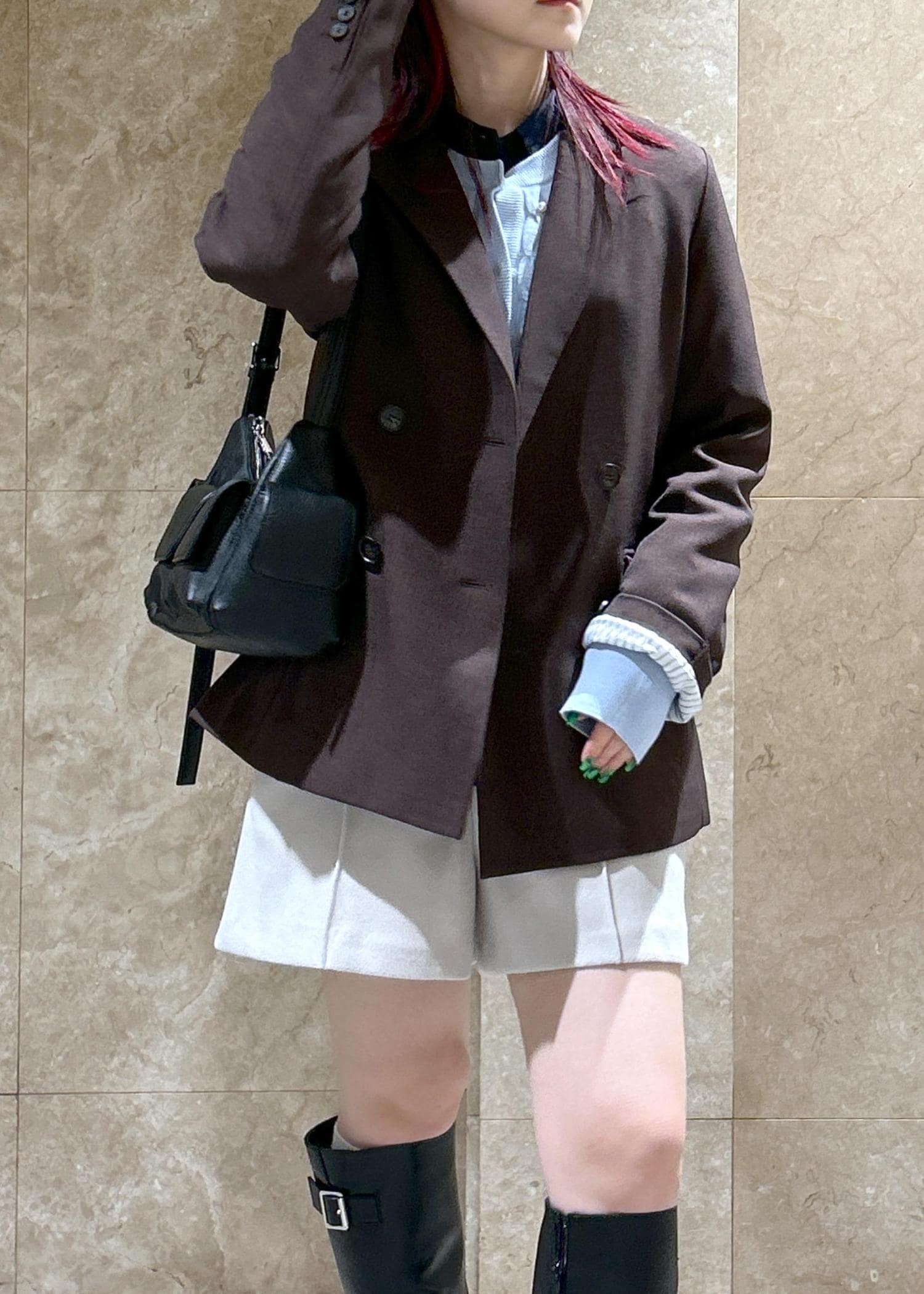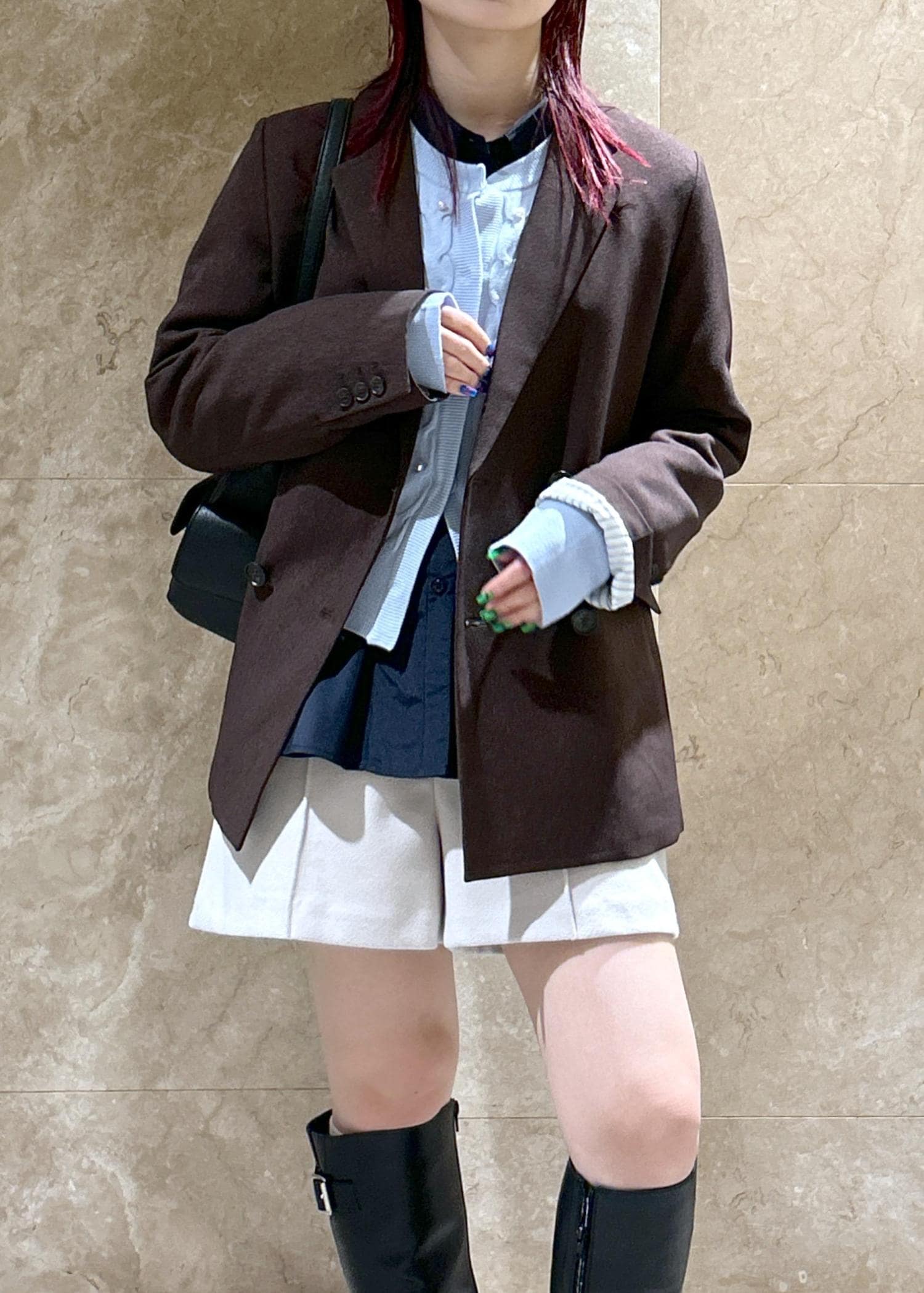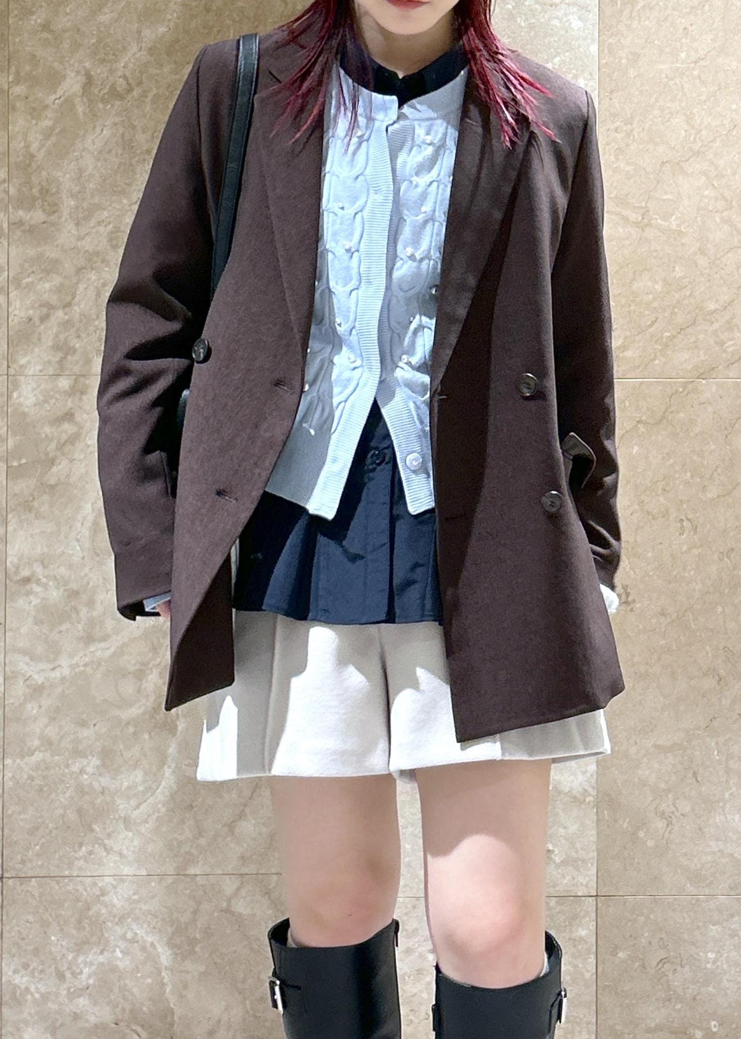 VIS【美easy】ウーリッシュダブルブレストテーラードジャケット【セットアップ対応/洗える】ダークブラウン / S¥8,899レビュー薄すぎず厚すぎずな素材感で、全体的に程よくゆとりがあるので、厚みのある服の上からでも着ていただけます!