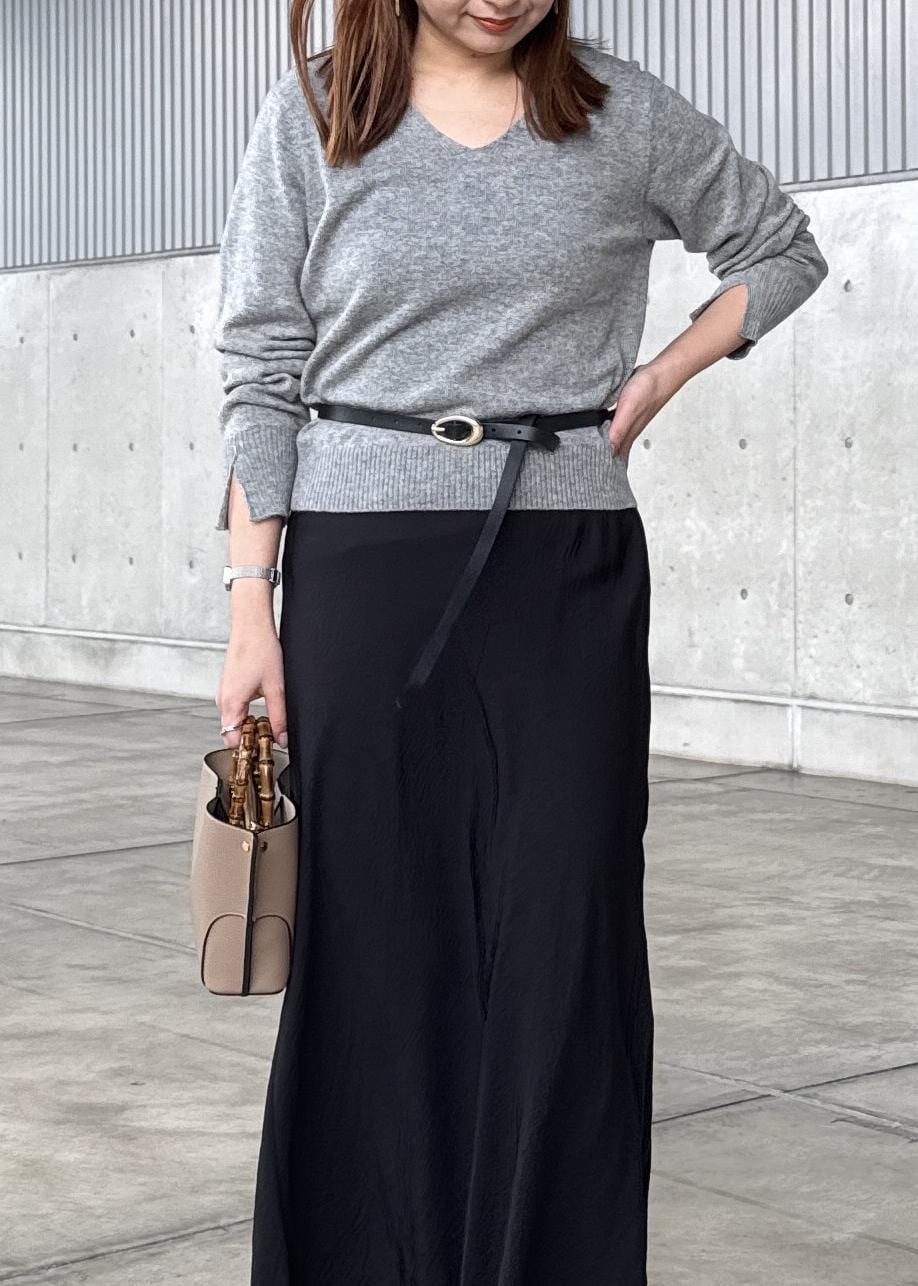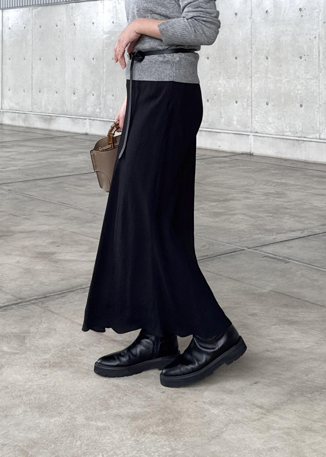 程よいマーメイドラインで、細めのウエストゴムなので着心地よくストレスフリーでお召しいただけます◎