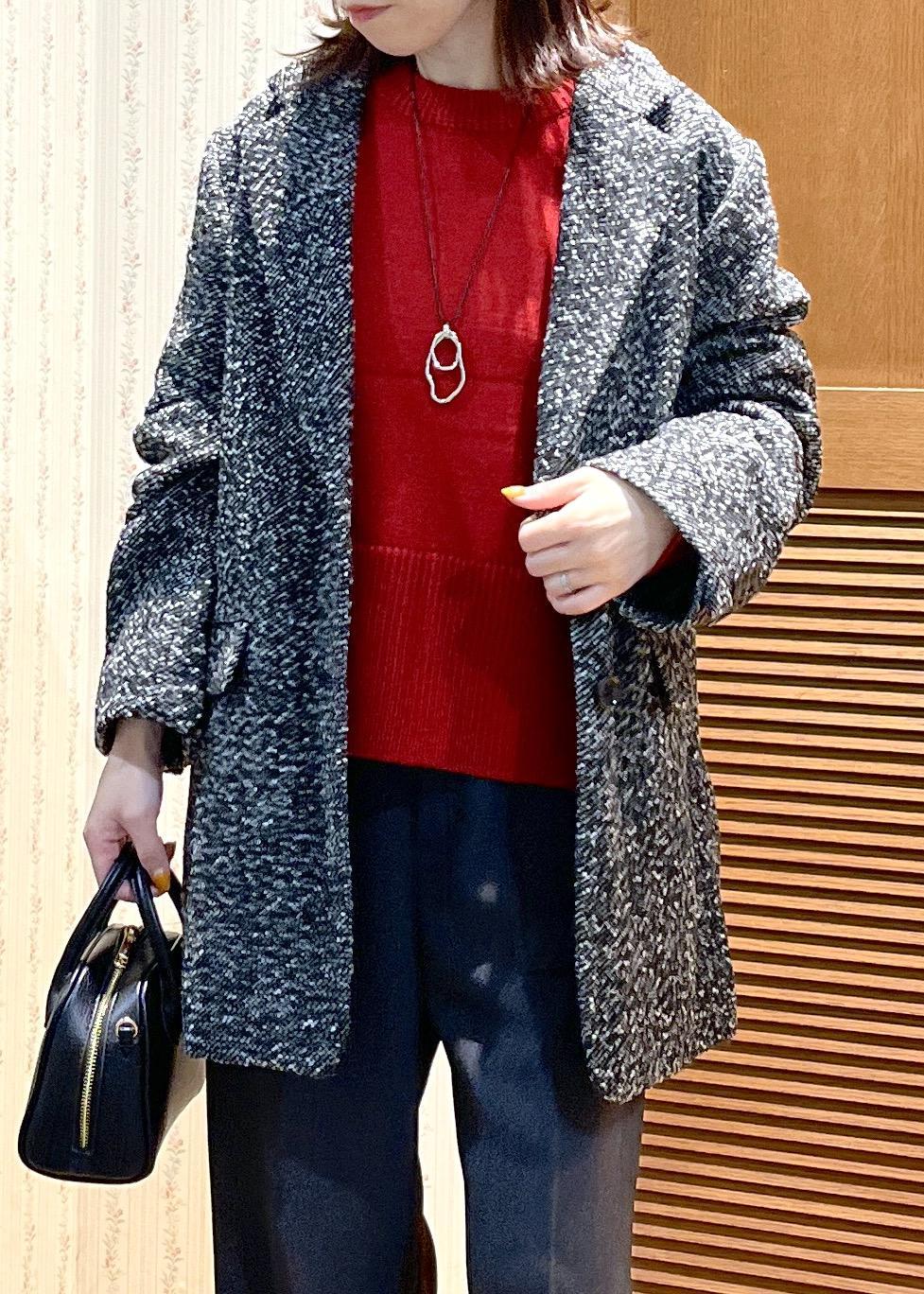 トレンドのジャコットは裏地もあり、ヒップが隠れるくらいの丈感なので暖かくてお出かけにおすすめです。