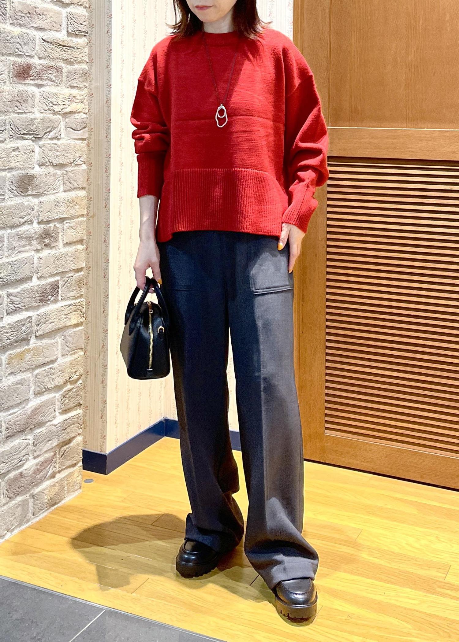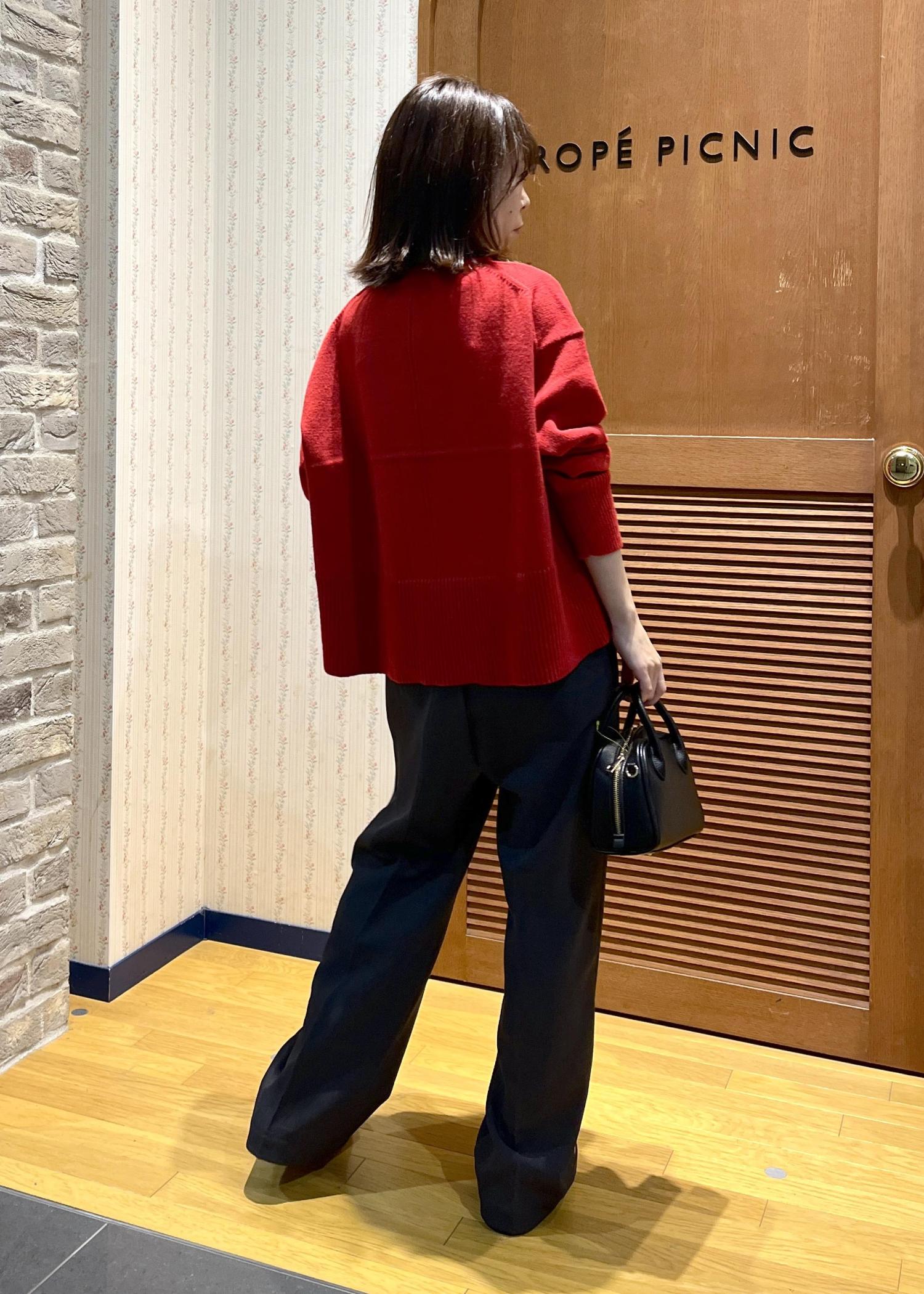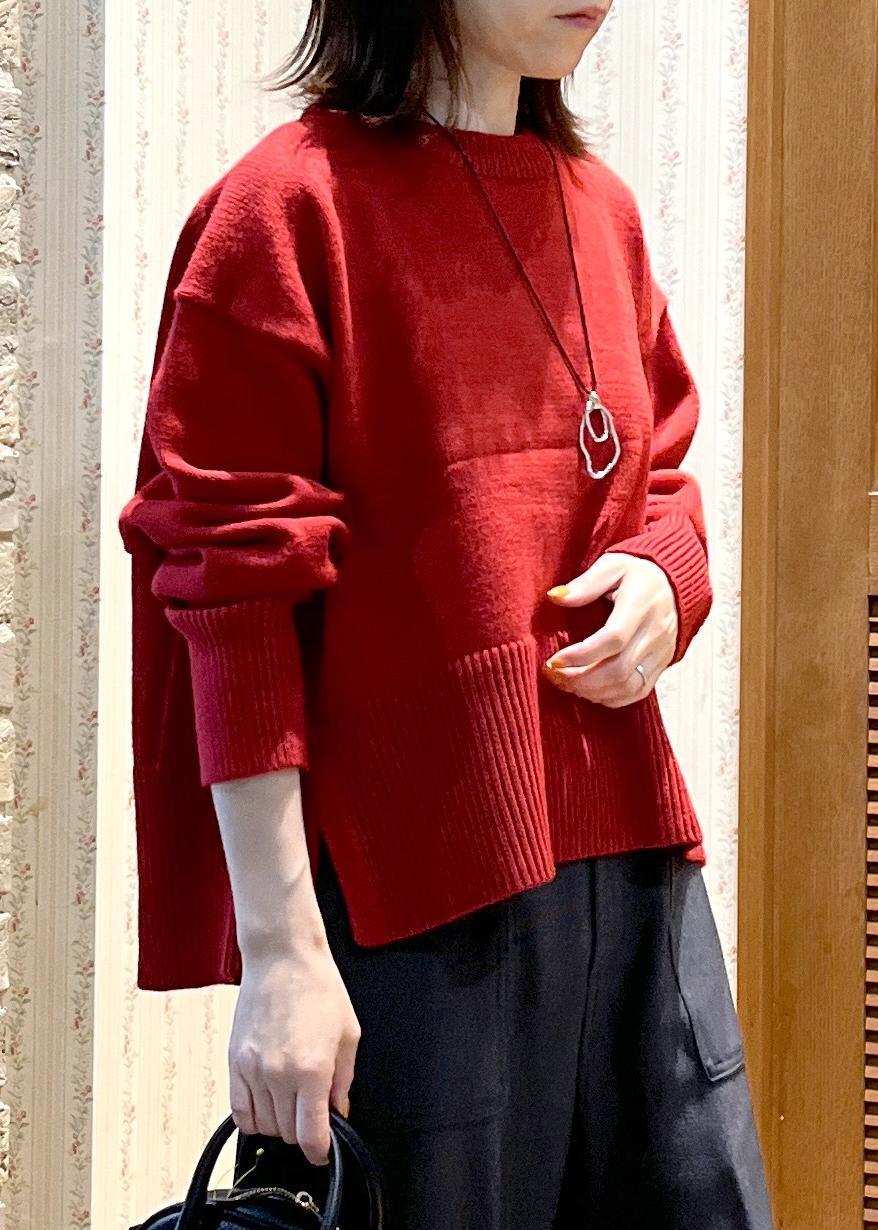 NEW!ROPÉ PICNIC【新色追加】着丈が選べるクルーネックサイドスリットニットプルオーバー/イージーケアレッド / M¥4,499レビューフロントの方が少し短めになっていて、ヒップにかかる丈感です。