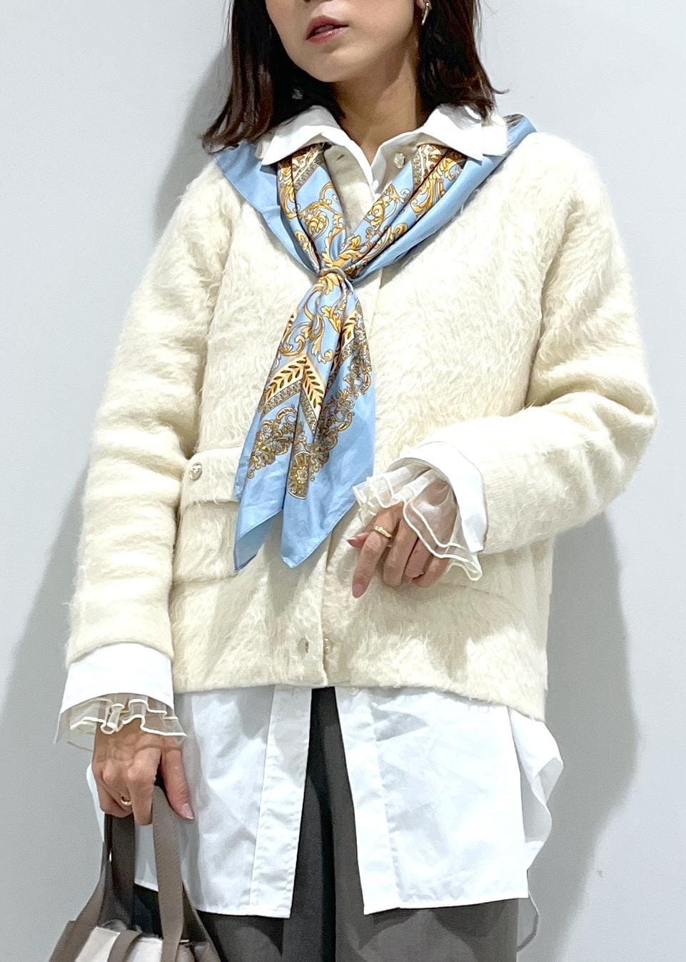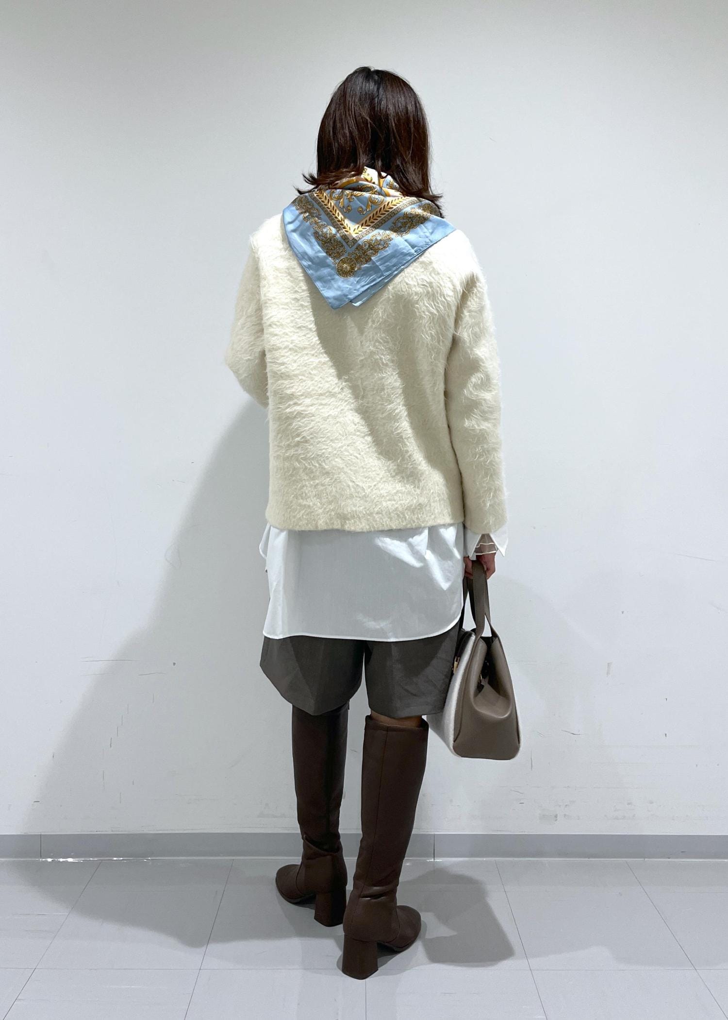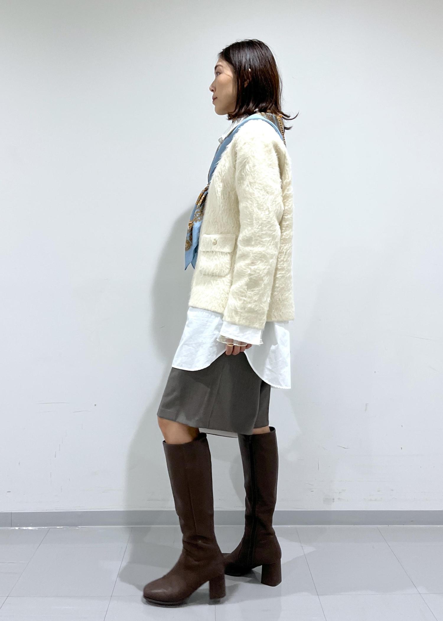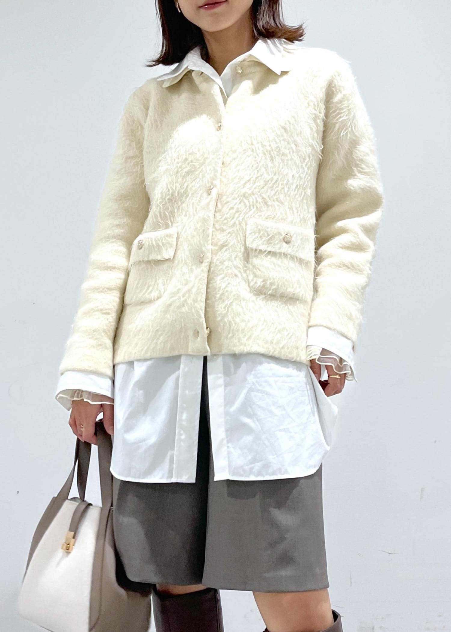 ホースヘア調のシャギー素材がアクセントになりコーディネートのポイントに。