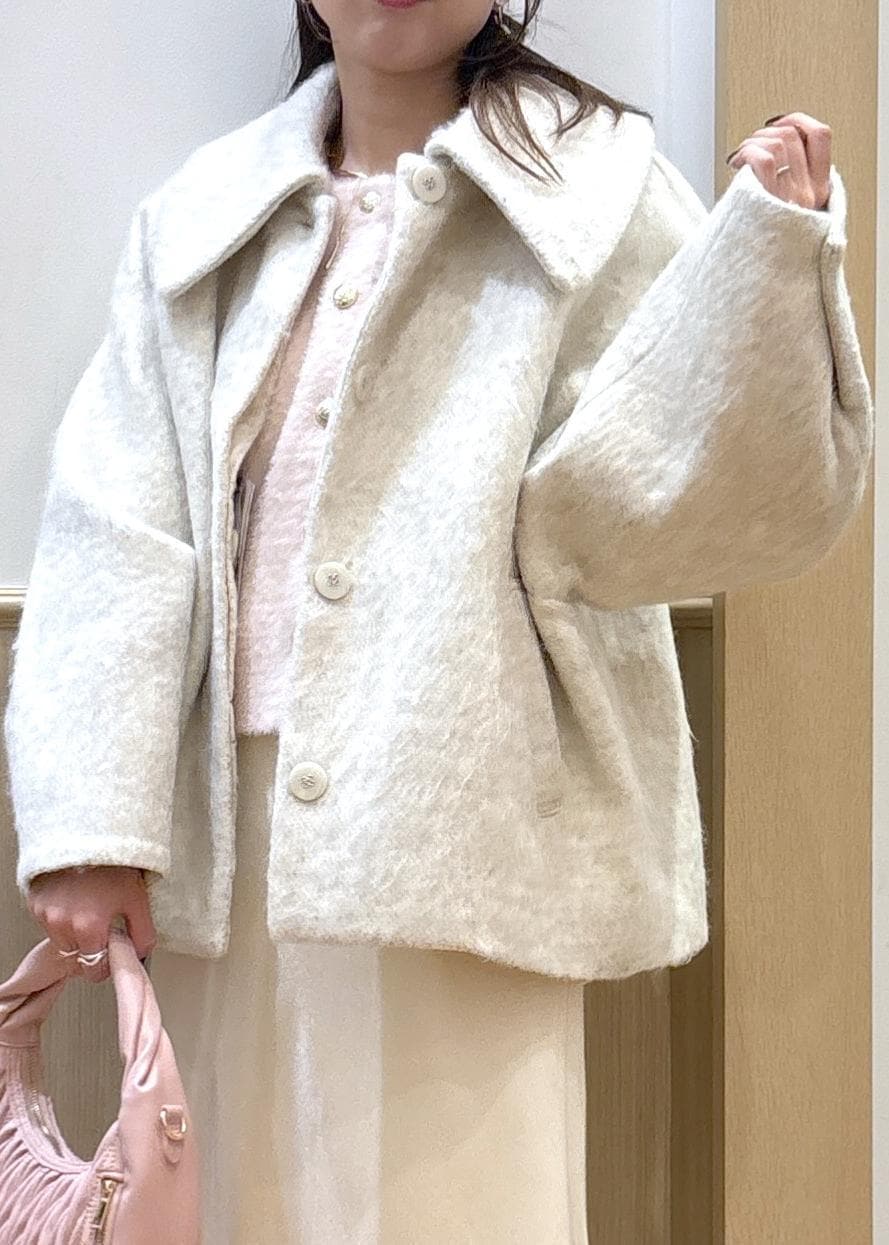 予約VIS【アウター総選挙1位】ビッグカラーモモンガシャギーショートコートオフホワイト / M¥10,989レビュー156センチでSサイズがジャストくらいで、袖は手がしっかり出て動きやすかったです。中に着込んでも苦しくないので、ジャストサイズが好きな方はSサイズで綺麗に着用できると思います!