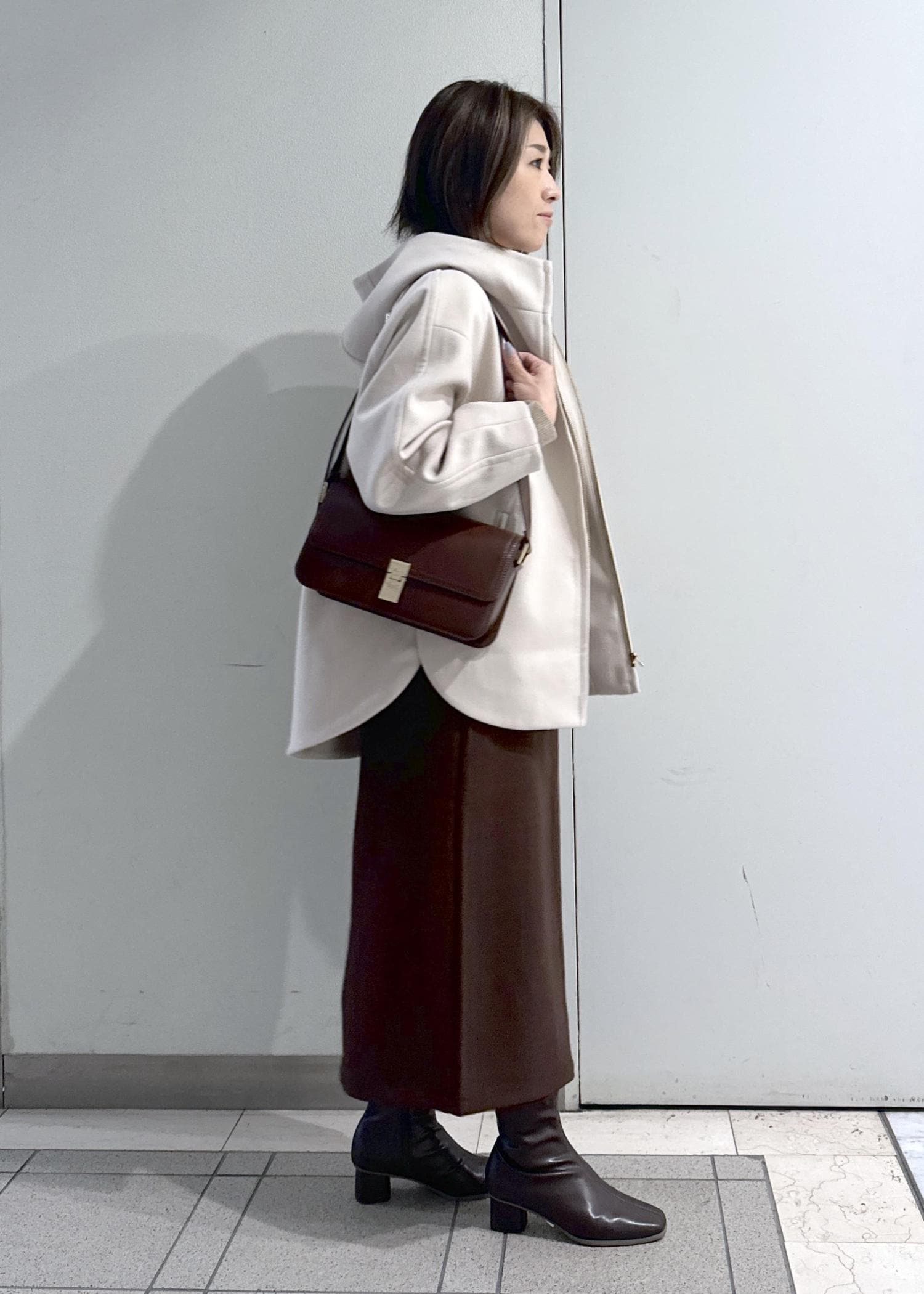 ROPÉ PICNICフロントポケットアイラインスカートダークブラウン / 36¥3,993レビュー長めの着丈とアイラインシルエットで上品な印象です。ややハイウエストで後ろはゴムになっているのでトップスもインしやすいです。