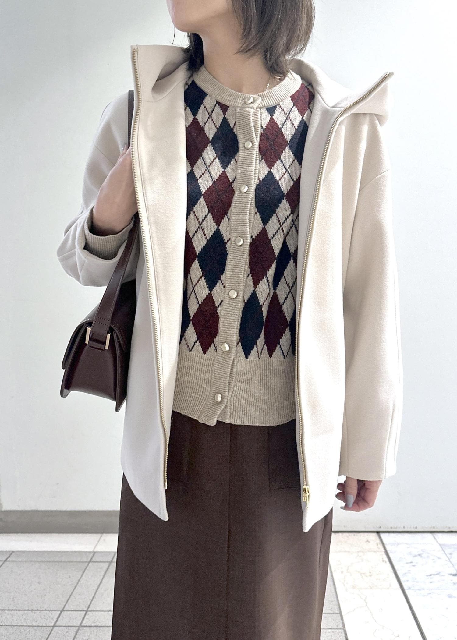 ROPÉ PICNICジャージーメルトンシリーズ ジップアップフーデッドコート/無地・チェック/リンクコーデベージュ / F¥10,989レビュー軽やかな着心地と柔らかい素材感。