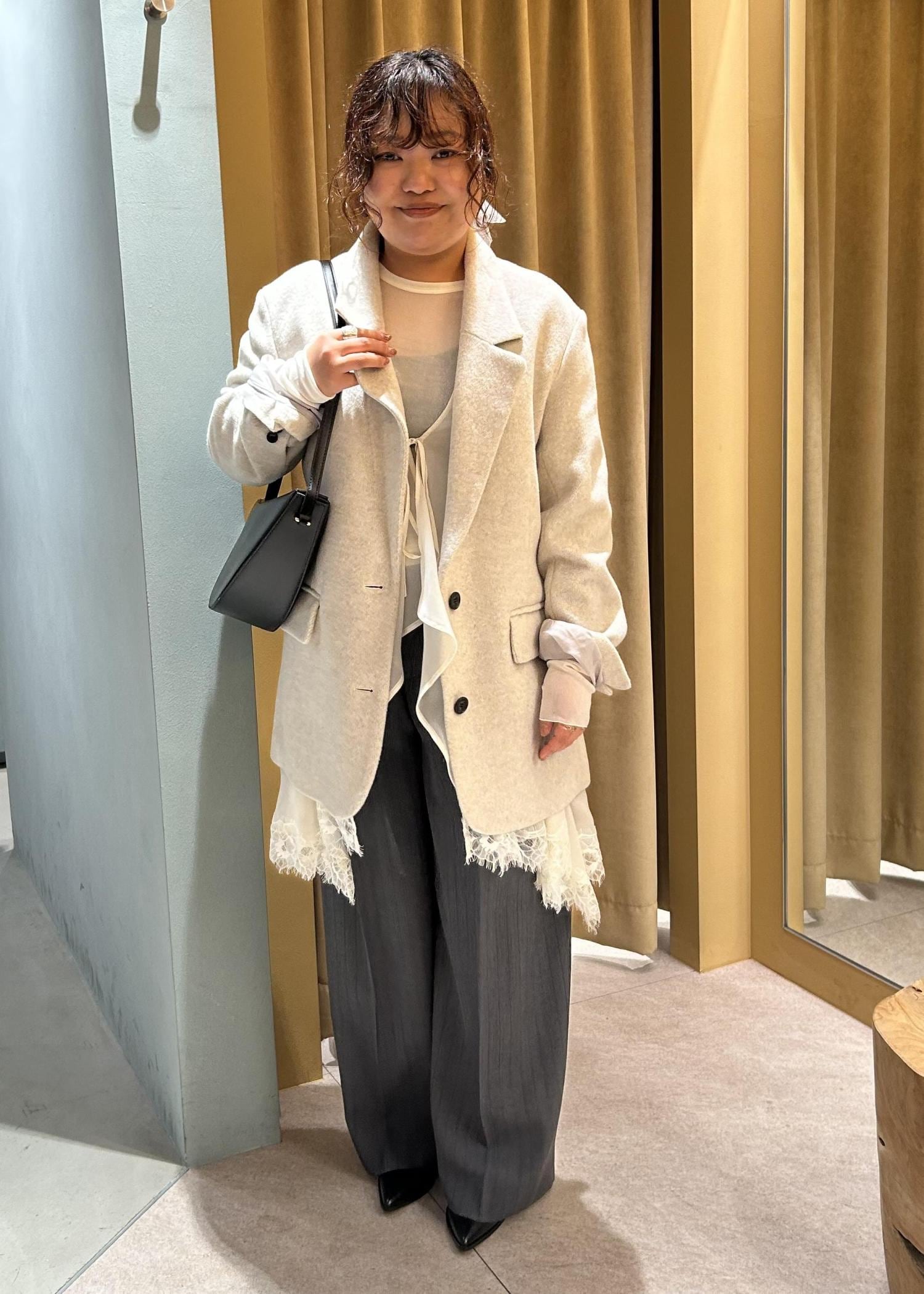 ADAM ET ROPÉ FEMMEリラクシーオーバージャケットオフホワイト / F¥37,400レビュージャケット型がスッキリとした仕上がりのコート。都内の冬なら十分暖かく過ごせます。柔らかなグレイッシュホワイトがシーズンムード満点です。