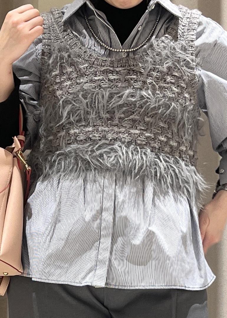 VISフェザーツイードニットビスチェ/2WAYグレー / F¥5,489レビューニット素材なので柔らかく、伸縮するので着脱もラクなベストです。