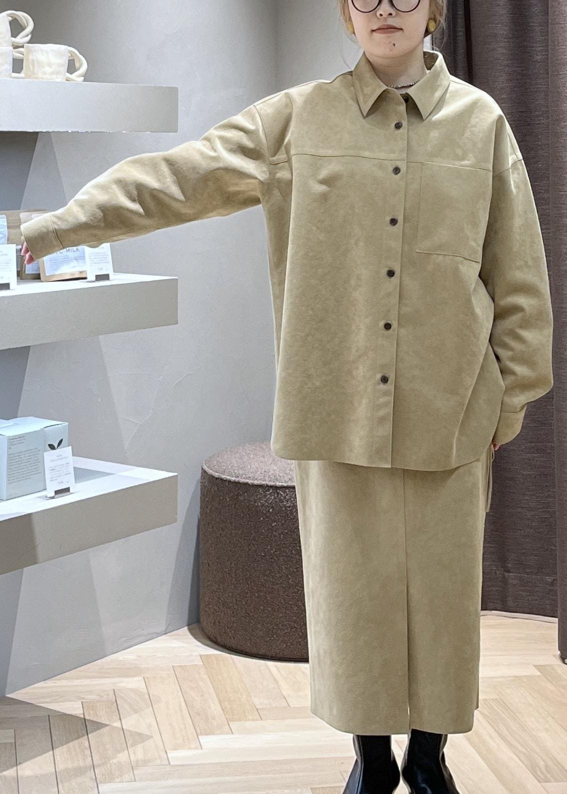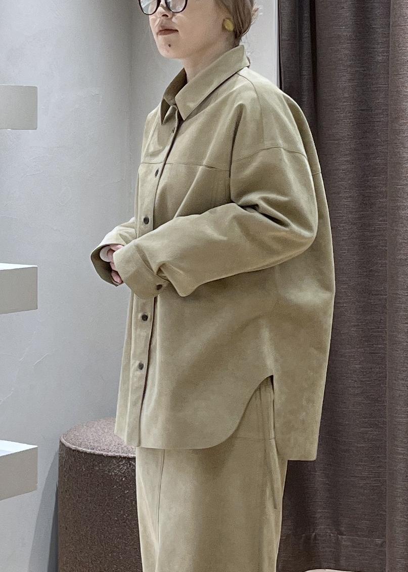 SALON adam et ropéUltrasuede(R)オーバーシャツ / セットアップ対応ベージュ / F¥49,500レビューなかなか見かけないレザー調のシャツ。