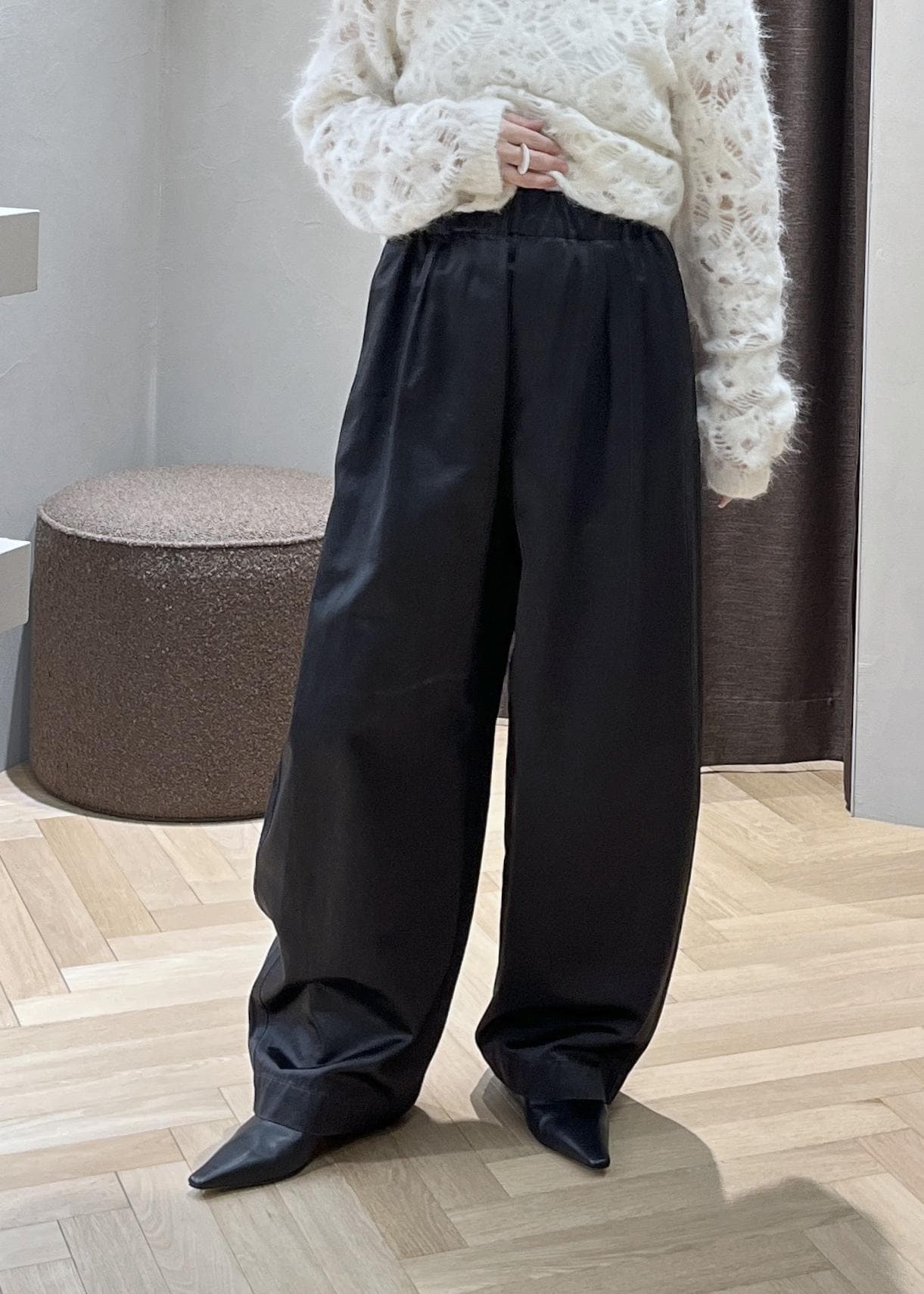 SALON adam et ropéサテンフェードイージーカーヴィーパンツブラウン系 / S¥23,100レビュー152cm、Sサイズで丈やや床に接するくらいのギリギリ丈。写真ではウエストで一折りしています。