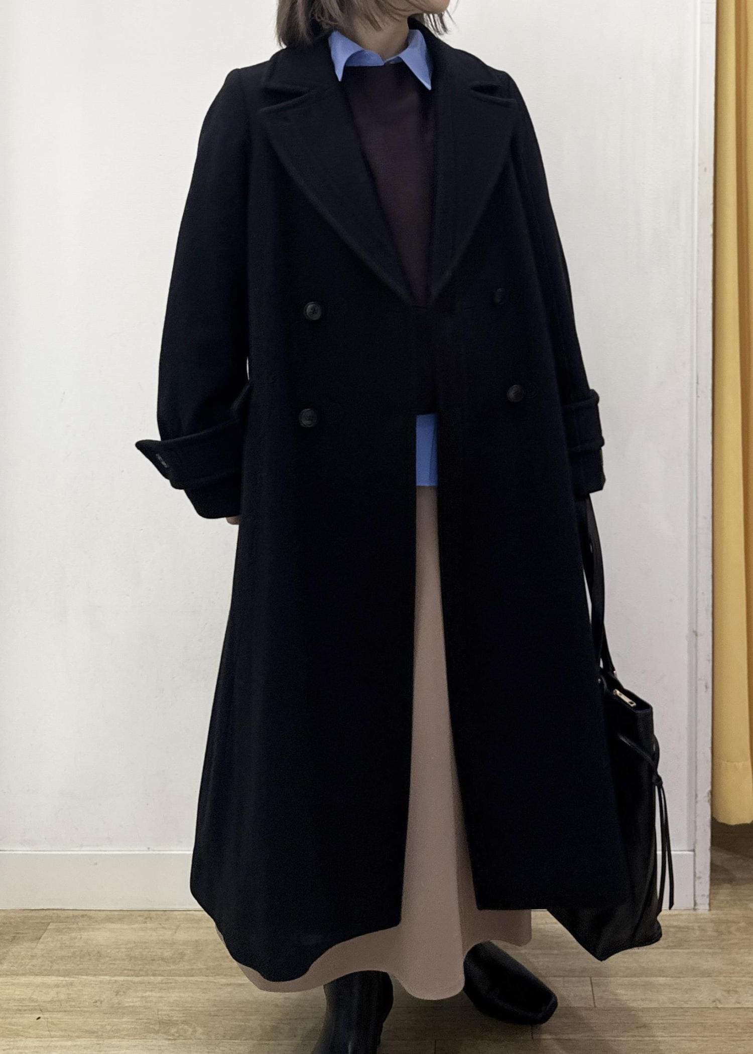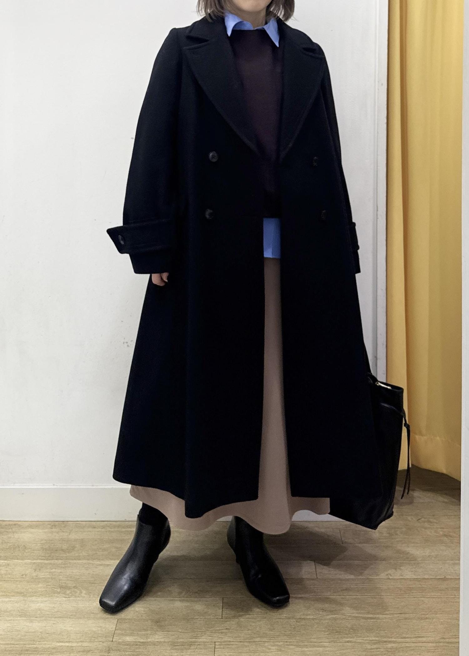 ROPÉ PICNICJAPAN FABRIC ダブルチェスターコート/一部WEB限定カラーブラック / F¥19,800レビュー厚手のニット合わせでもゆとりののあるサイズ感で着られました。