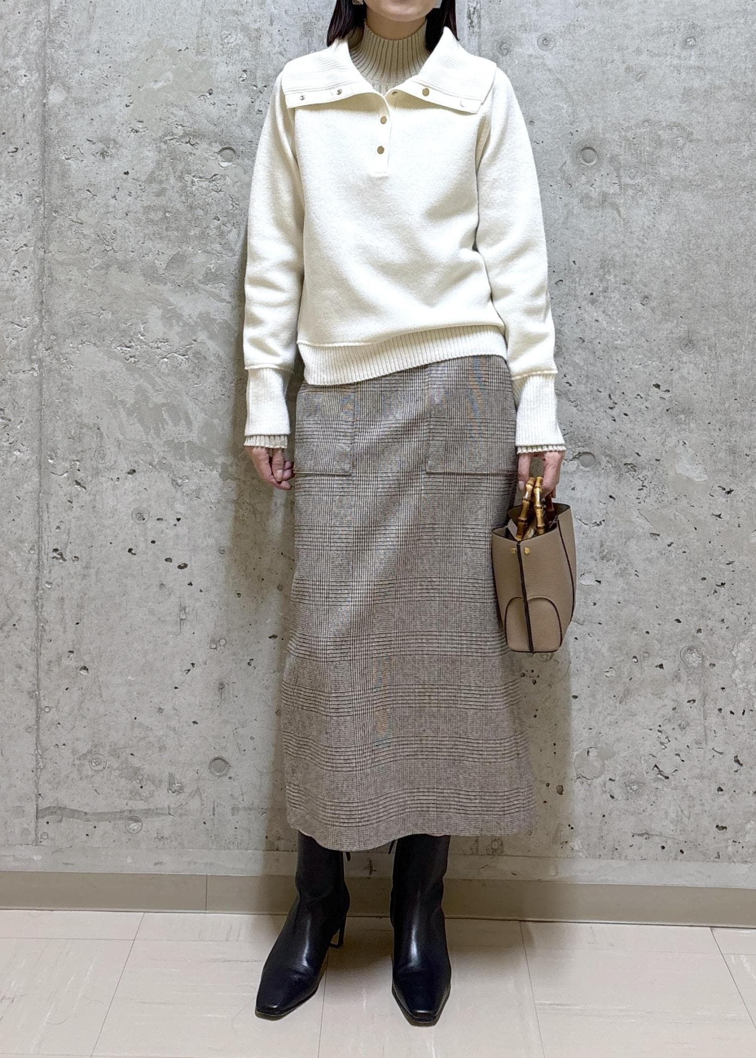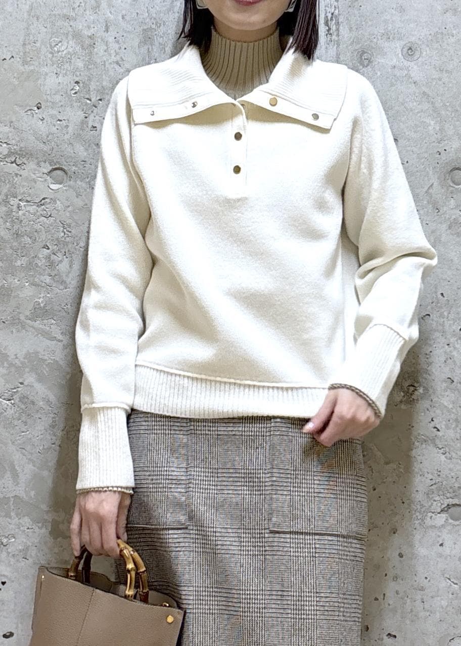 NEW!ROPÉ接結ウールドットボタンハイネックニット/イージーケアオフホワイト / F¥28,600レビューほどよくゆとりのあるサイズ感のニット。