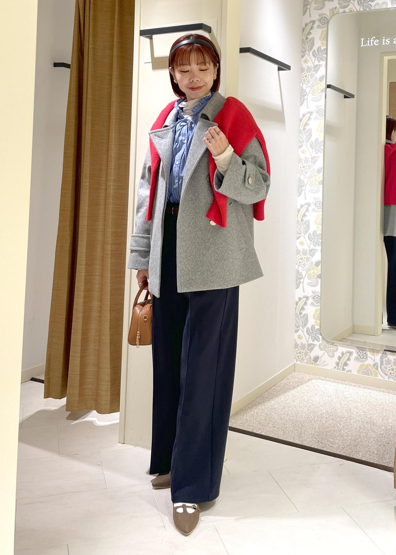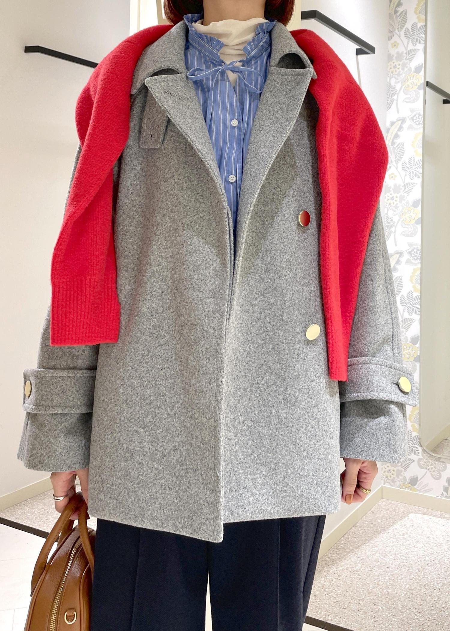 ROPÉ PICNICジャージーメルトンシリーズ 金ボタンミドル丈コート/リンクコーデライトグレー / F¥10,989レビュージャージメルトンのふっくらとした温かみのあるミドル丈コート。