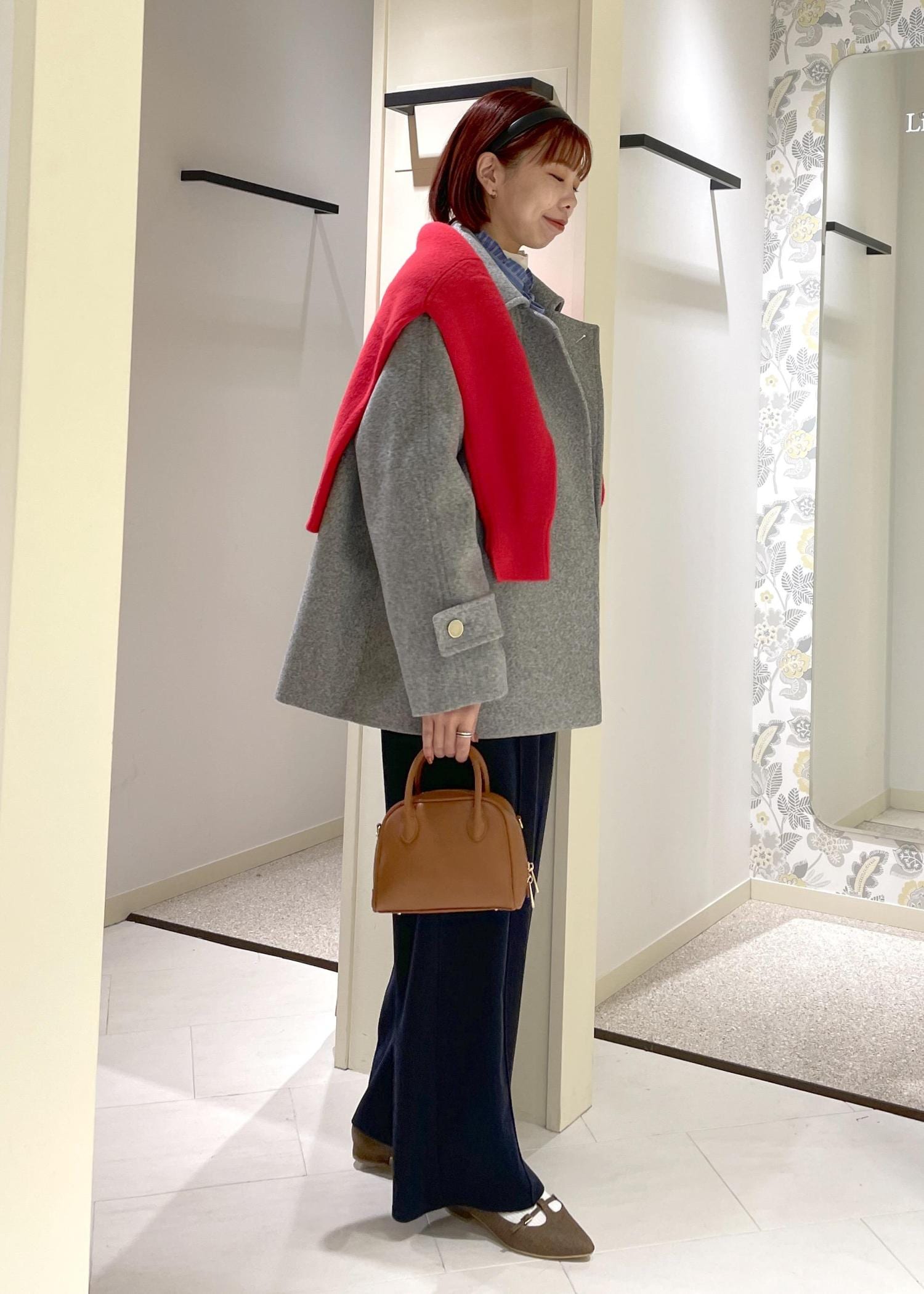 全体的にゆとりのあるサイズ感で、中にも厚みのあるニットも合わせて頂きやすく、軽量でストレスフリーな着心地です。