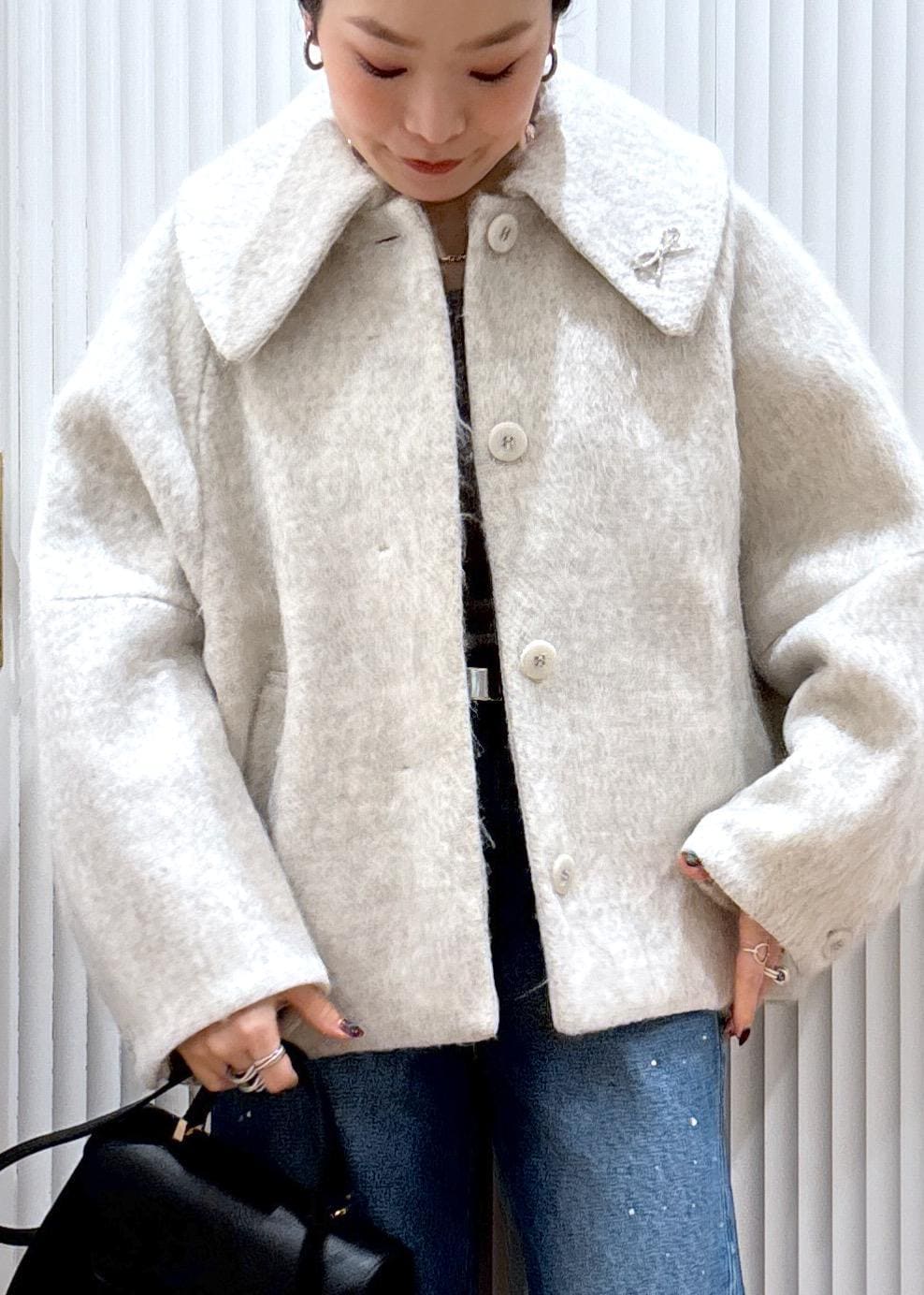 予約VIS【アウター総選挙1位】ビッグカラーモモンガシャギーショートコートオフホワイト / M¥10,989レビューウール混で軽く温かいショートコートです。ラグランのデザインで肩周りがゆったりしており、中に沢山着こんでも着膨れ知らず。裏地も付いており袖通りも滑らかです。