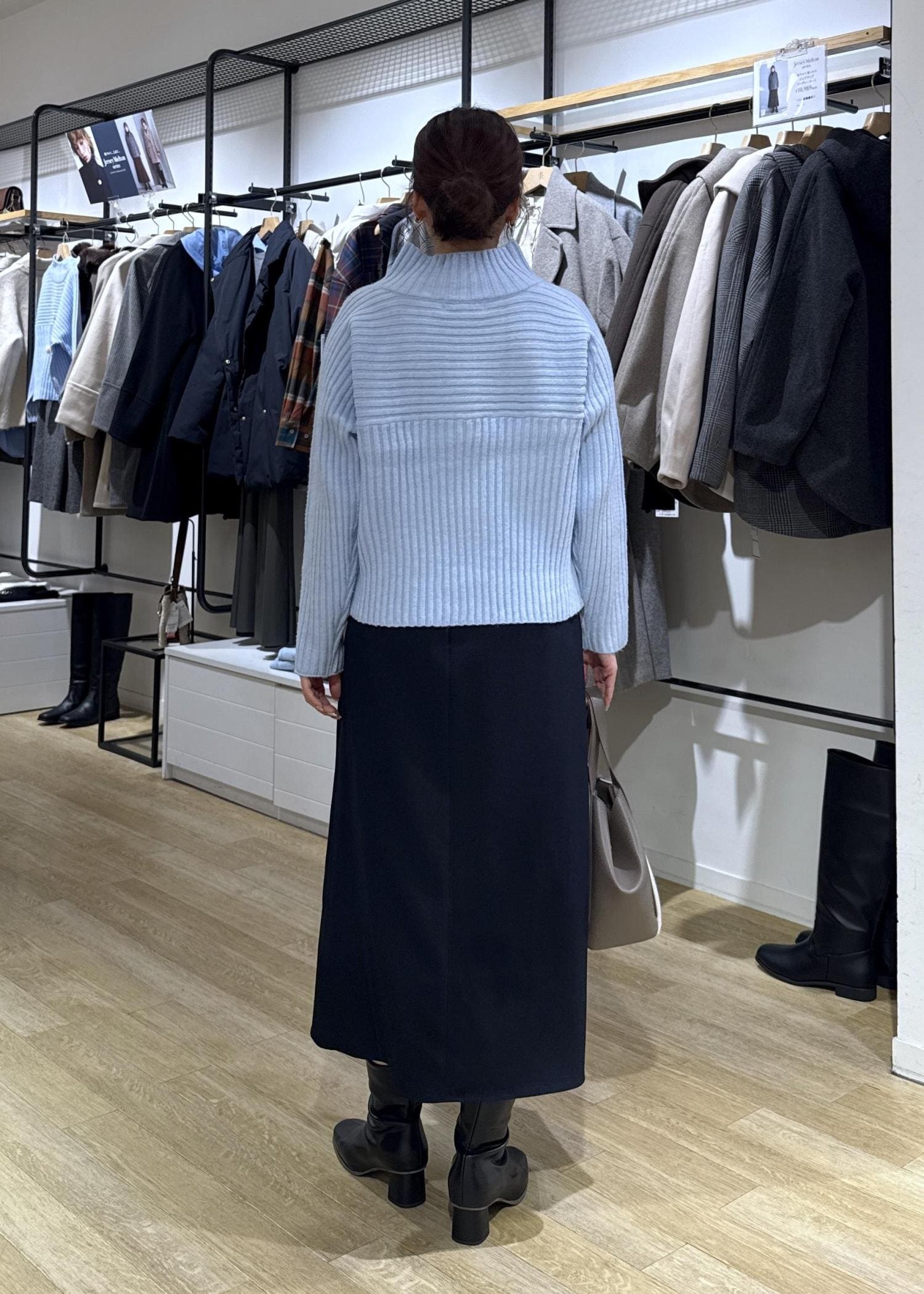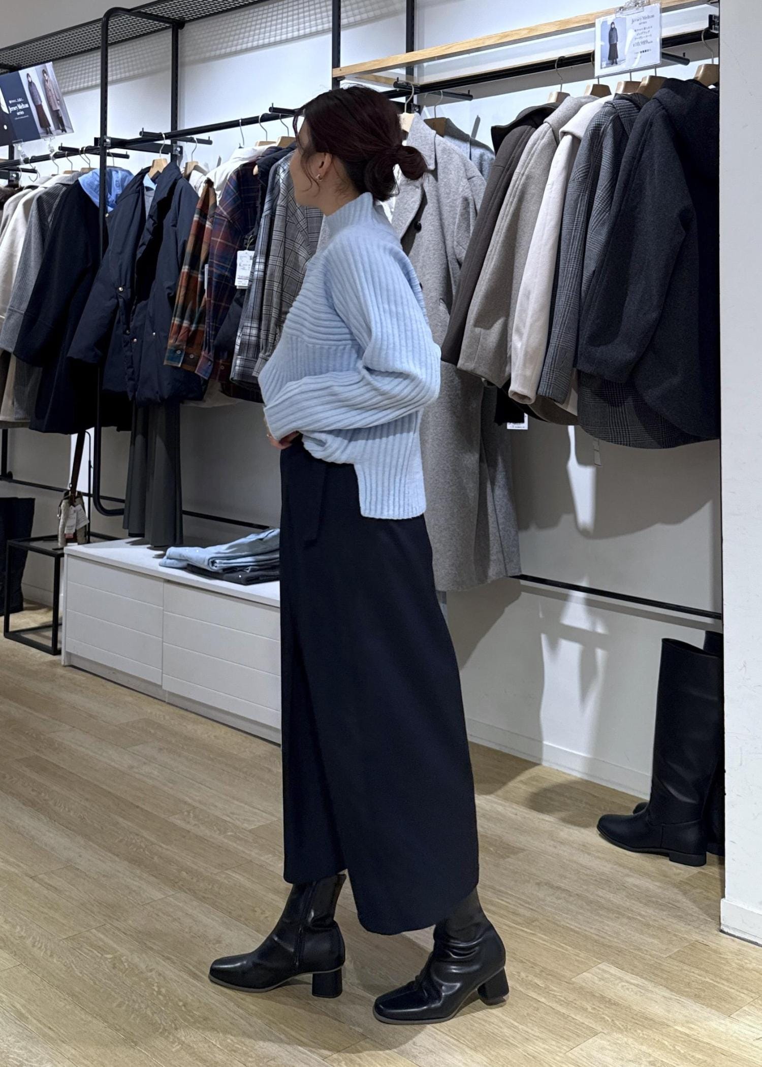 大人気!リブ切り替えニットのスカートコーデ