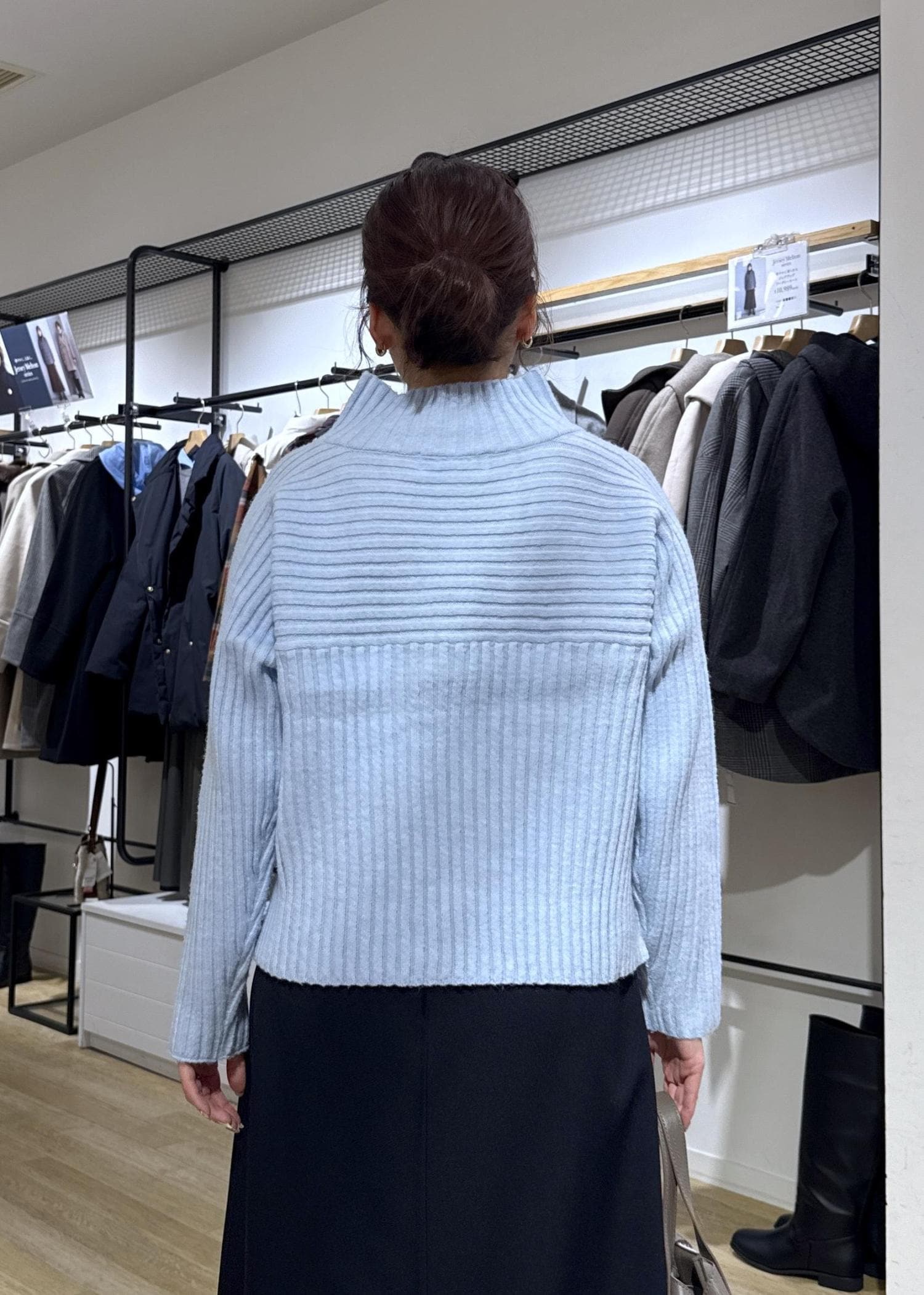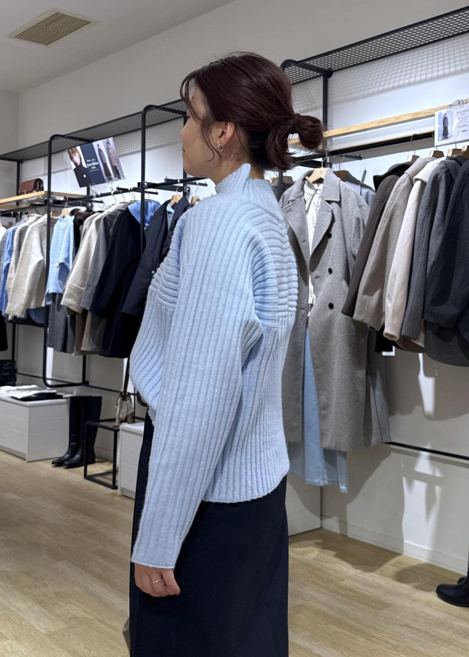 ライトブルーのカラーが可愛かったのでニットを主役に