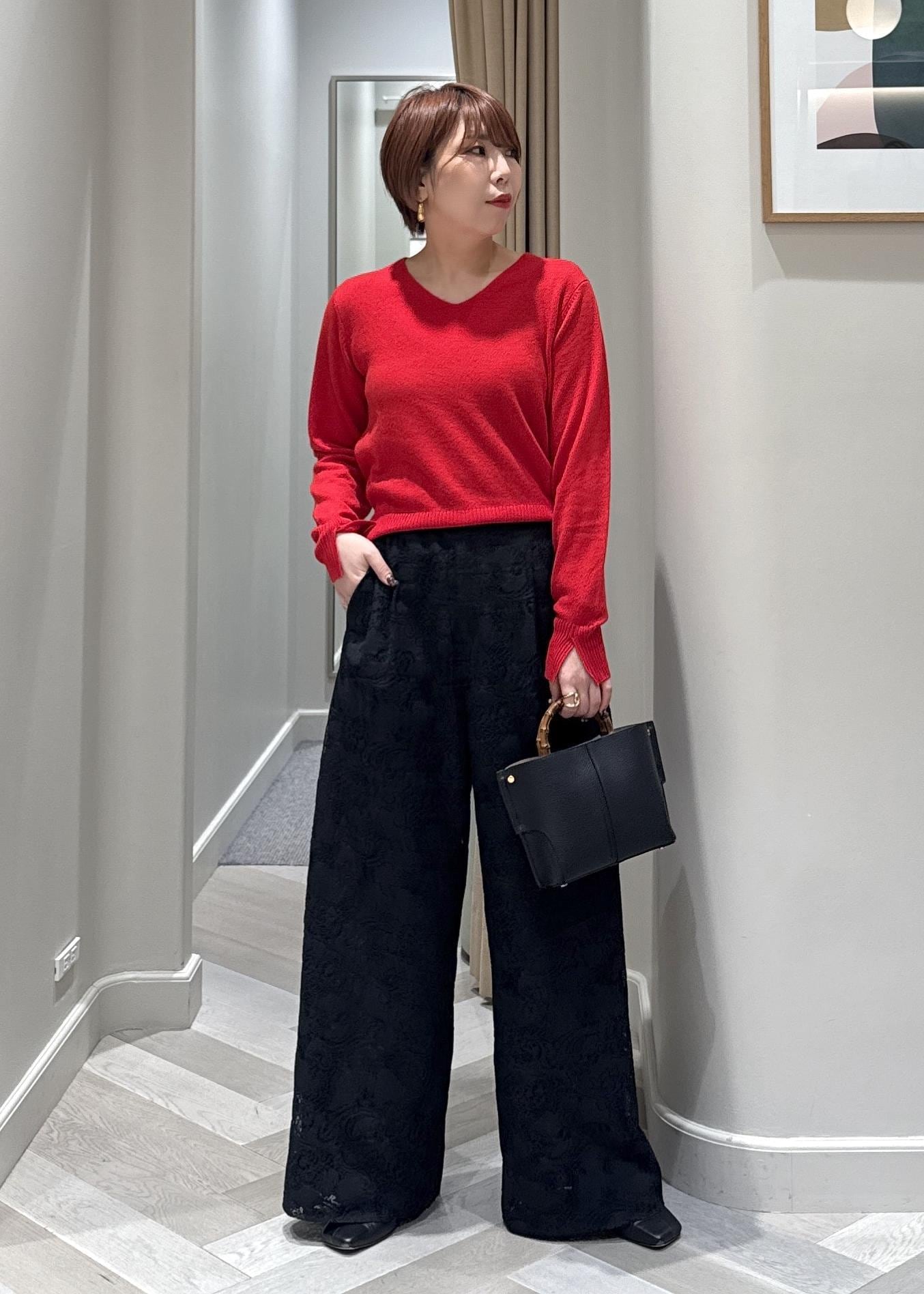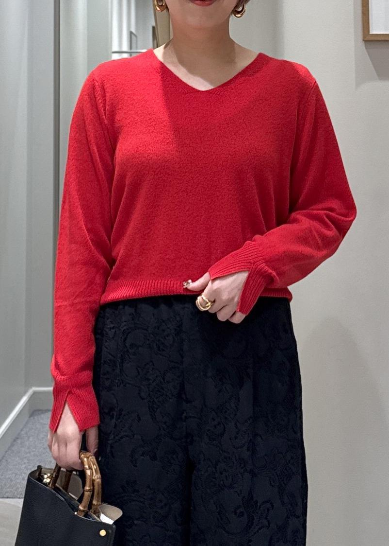 NEW!ROPÉカシミヤVネックニットプルオーバーレッド / F¥25,300レビューカシミヤ100%で滑らかな肌触り。