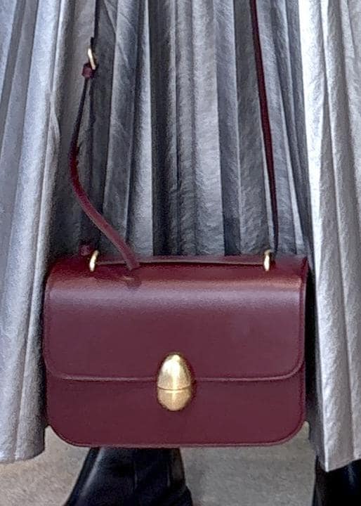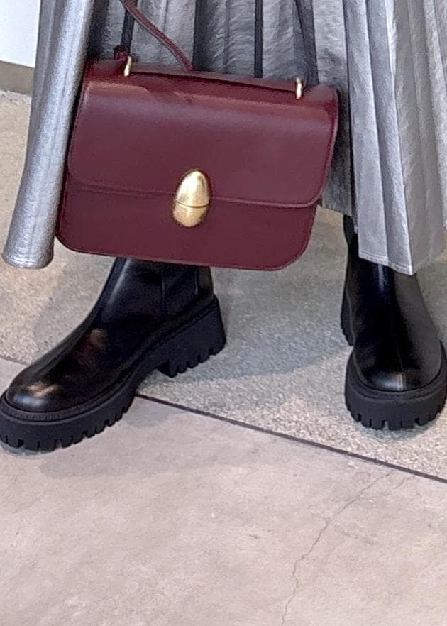 差し色のボルドーバッグで全体を引き締めつつ、冬らしい上品さもプラスしました。