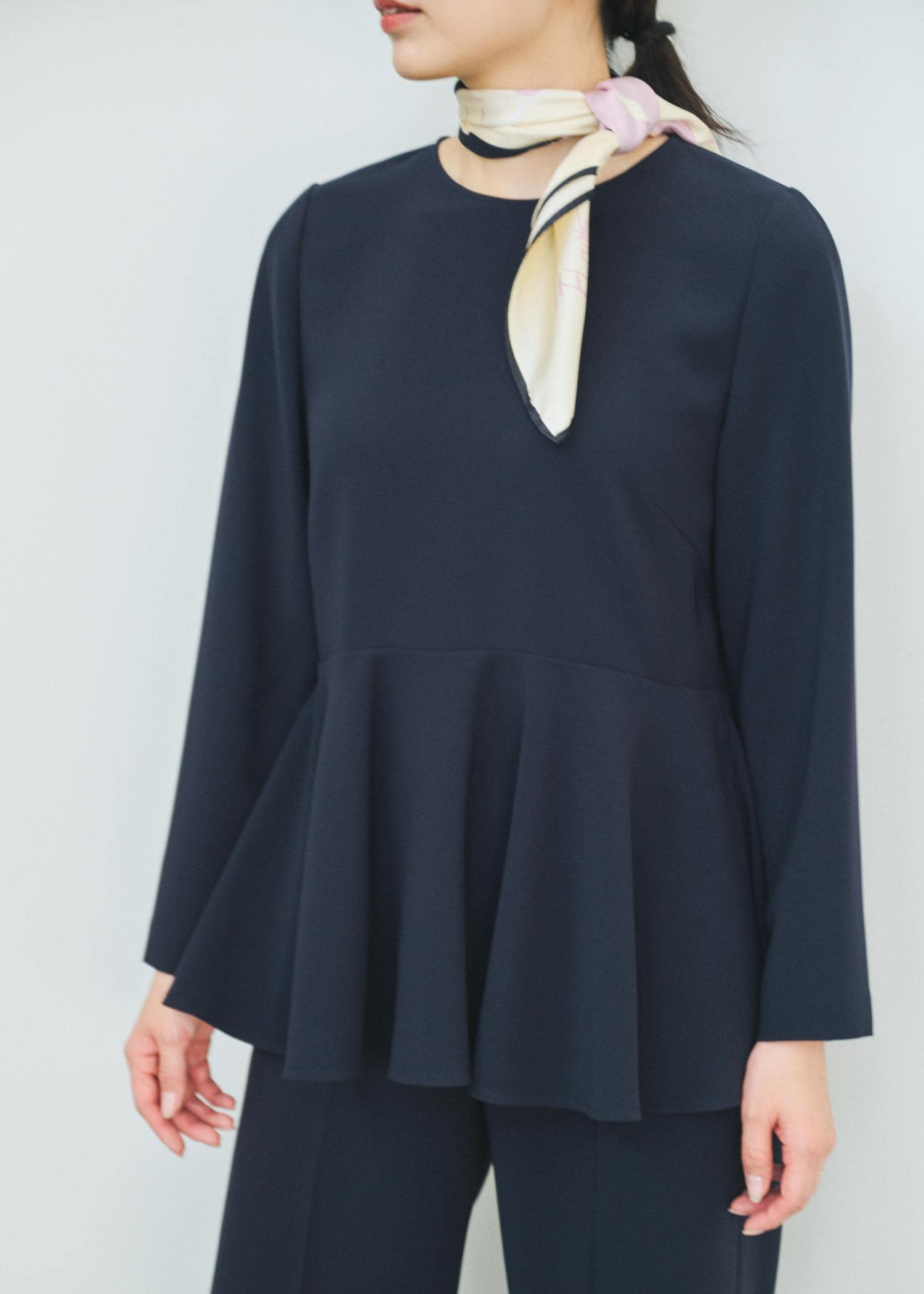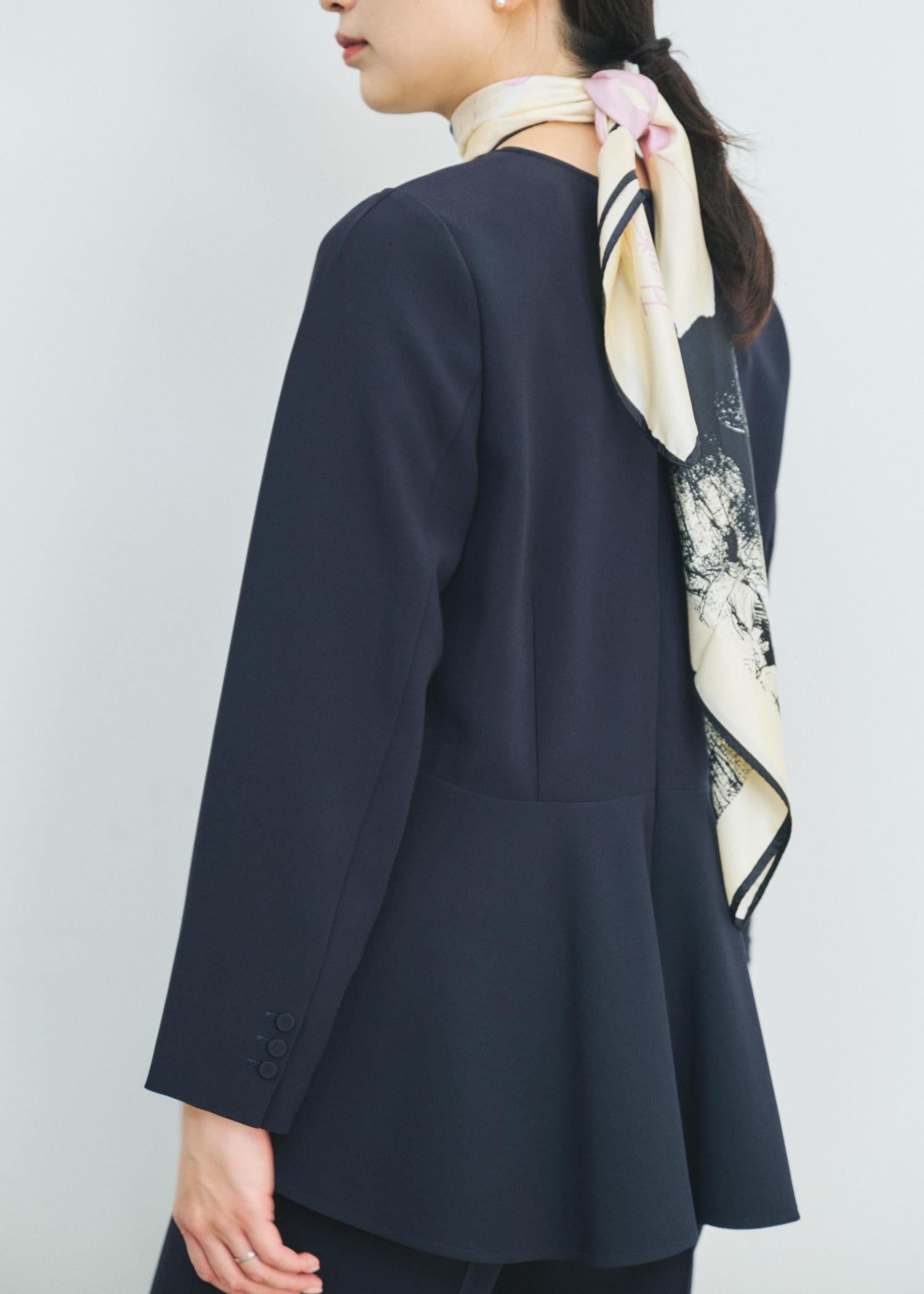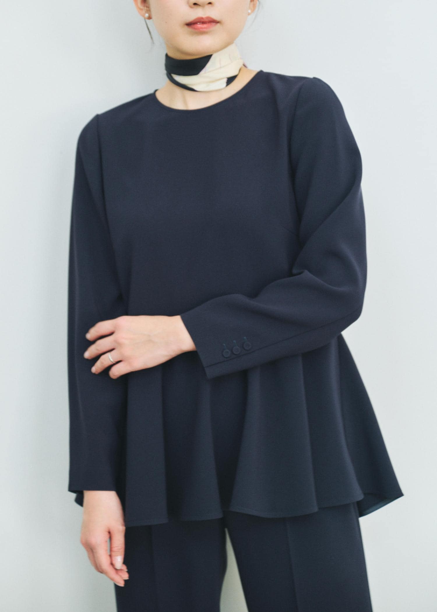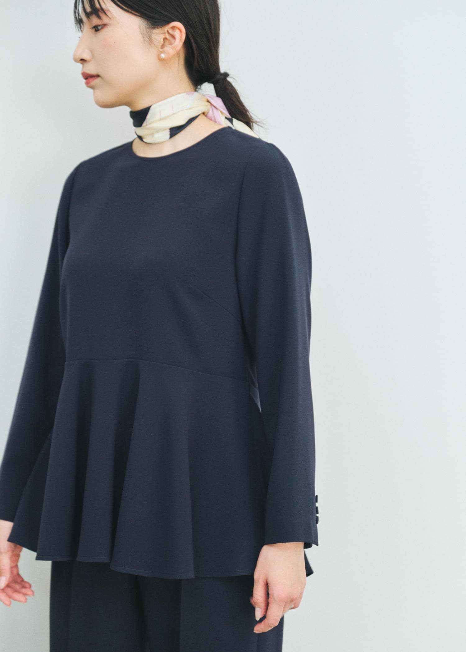 ペプラムの落ち感が綺麗で大人っぽく、エレガントな雰囲気で着ていただけます。