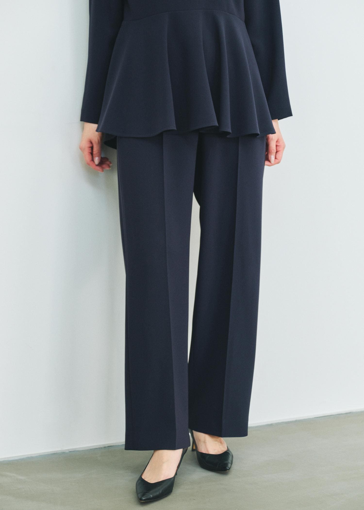 ヒップ下から裾にかけてストンと落ちるようなワイドストレートシルエット。