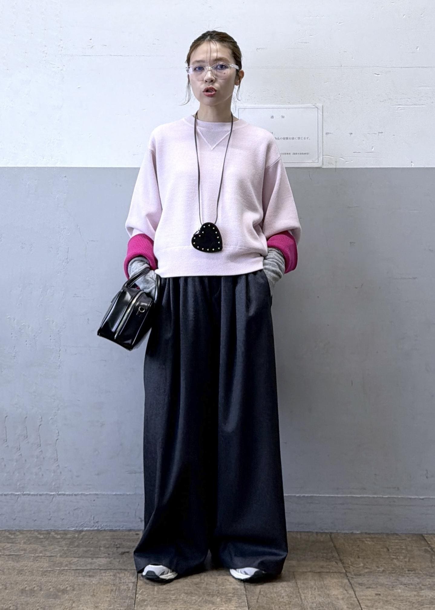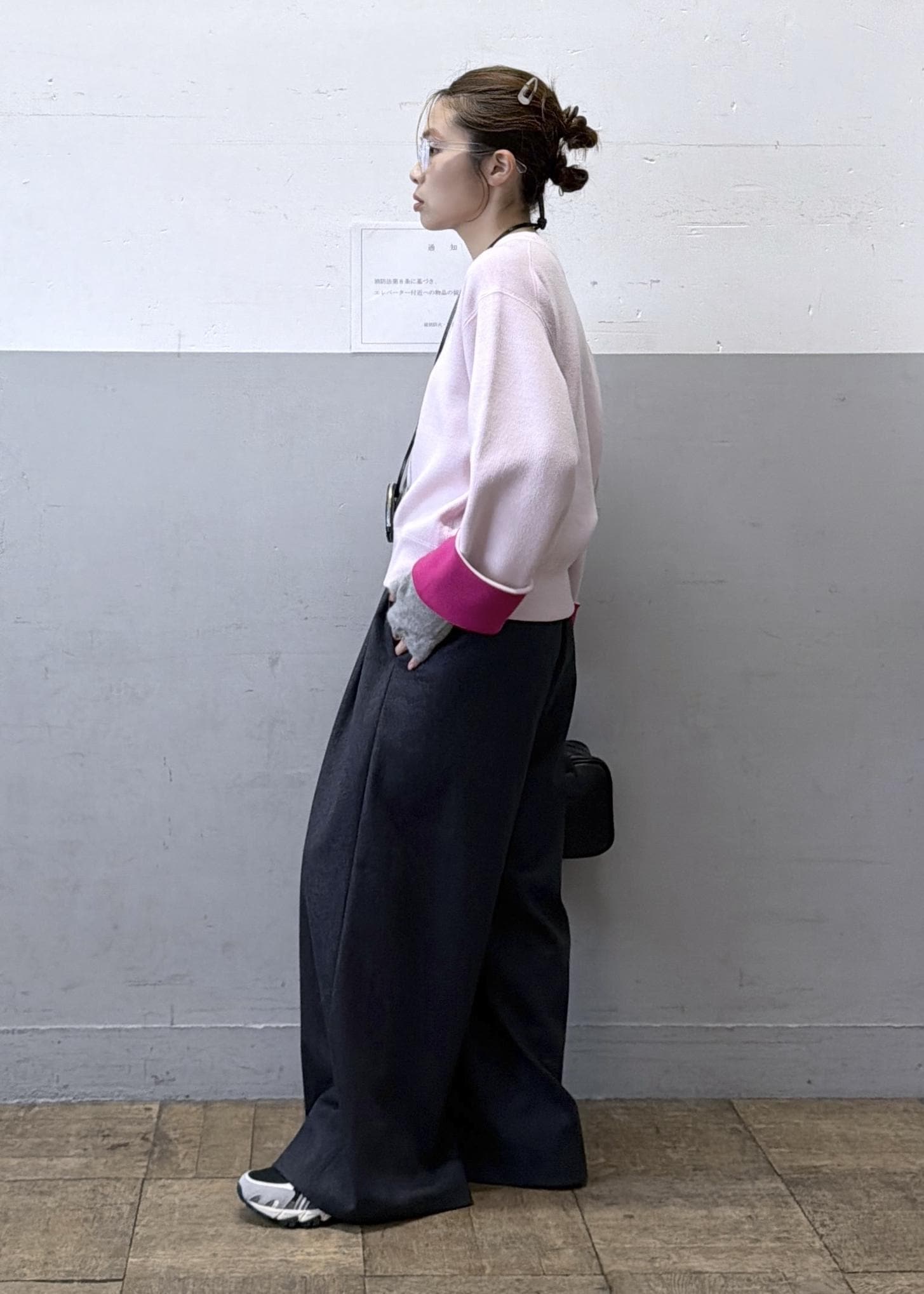 女性らしいピンクなので、合わせるアイテムは全てカジュアルなアイテムにして甘さを控えました。