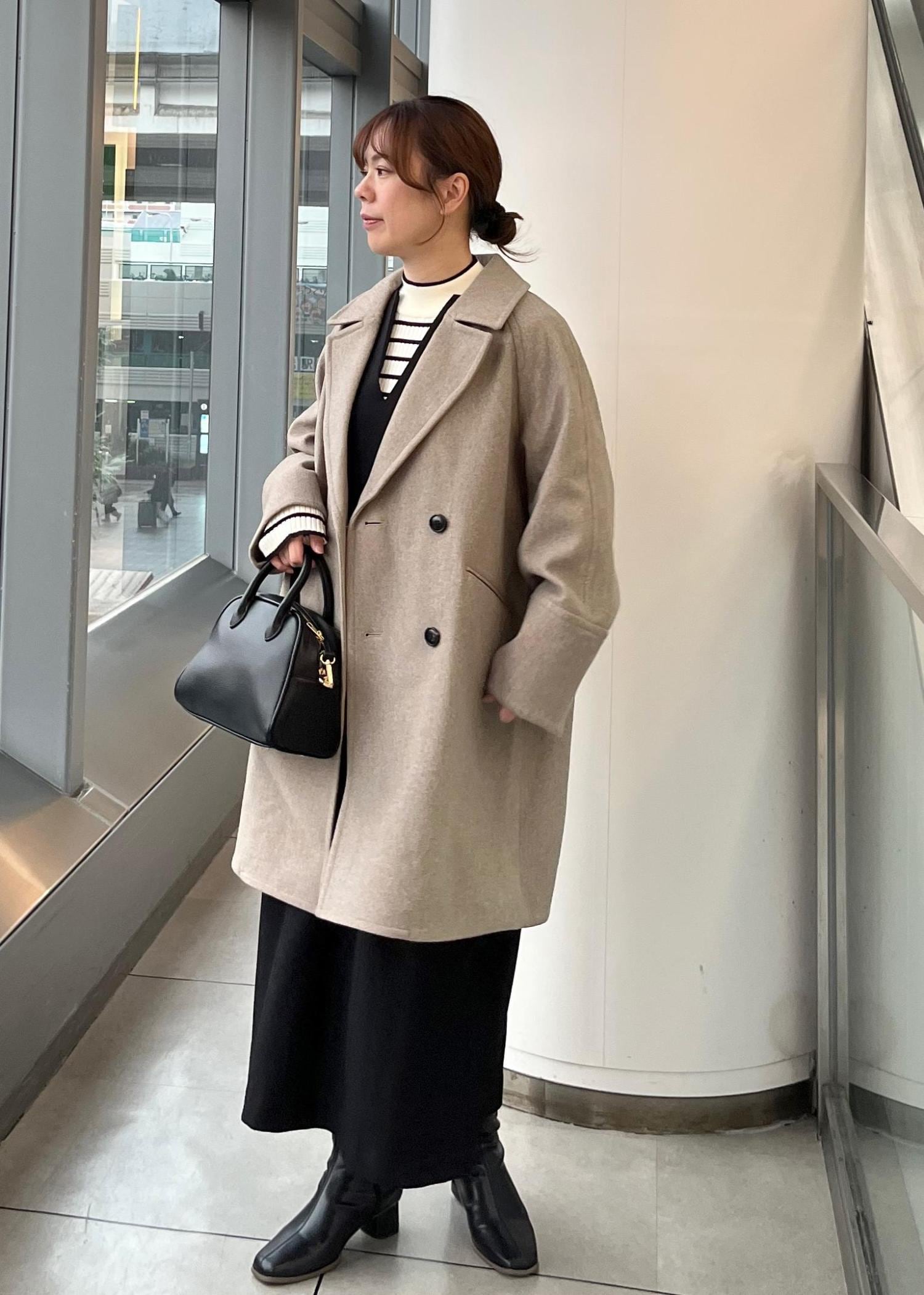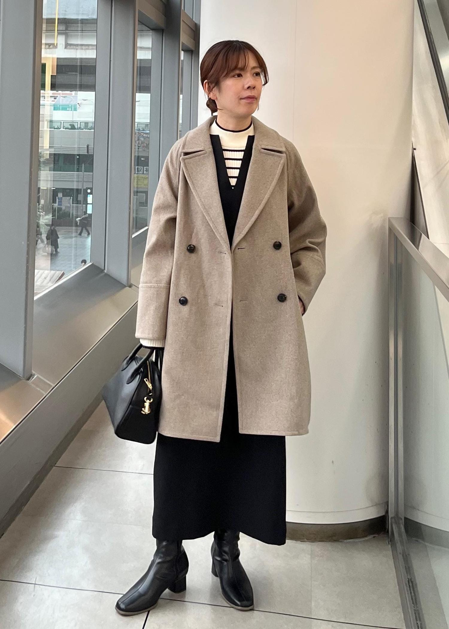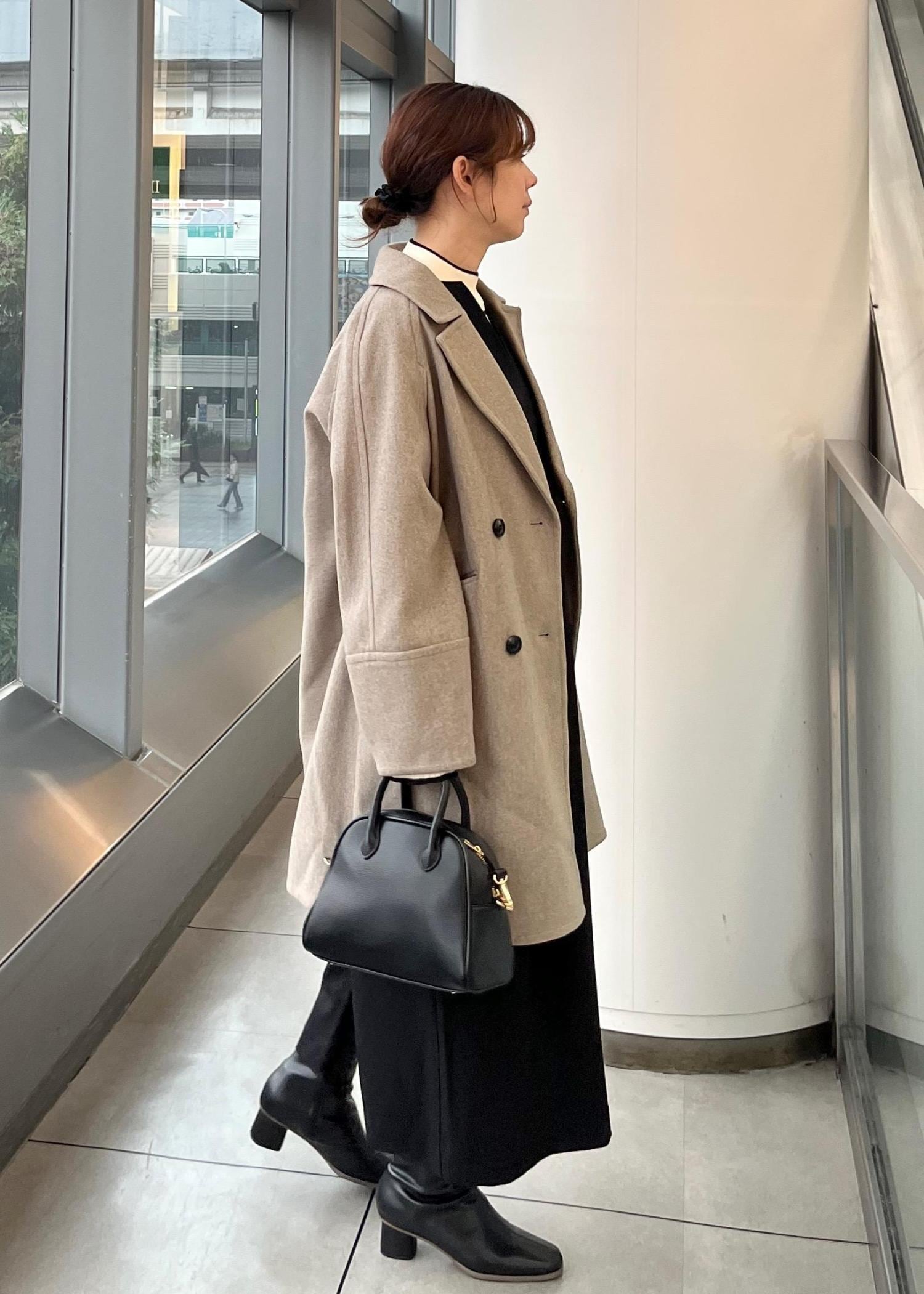 厚手のニットを着ても楽に羽織れるサイズ感で、軽くて楽な着心地です。 -