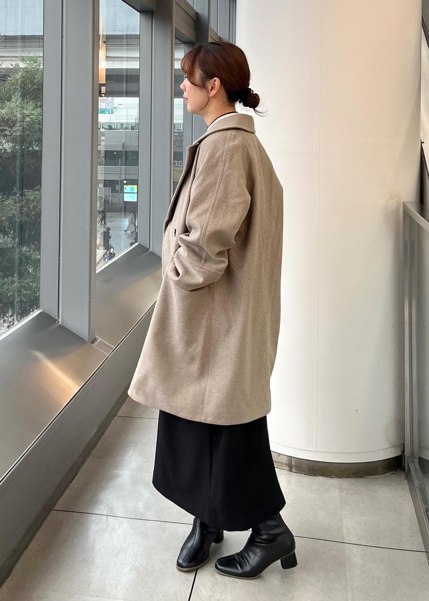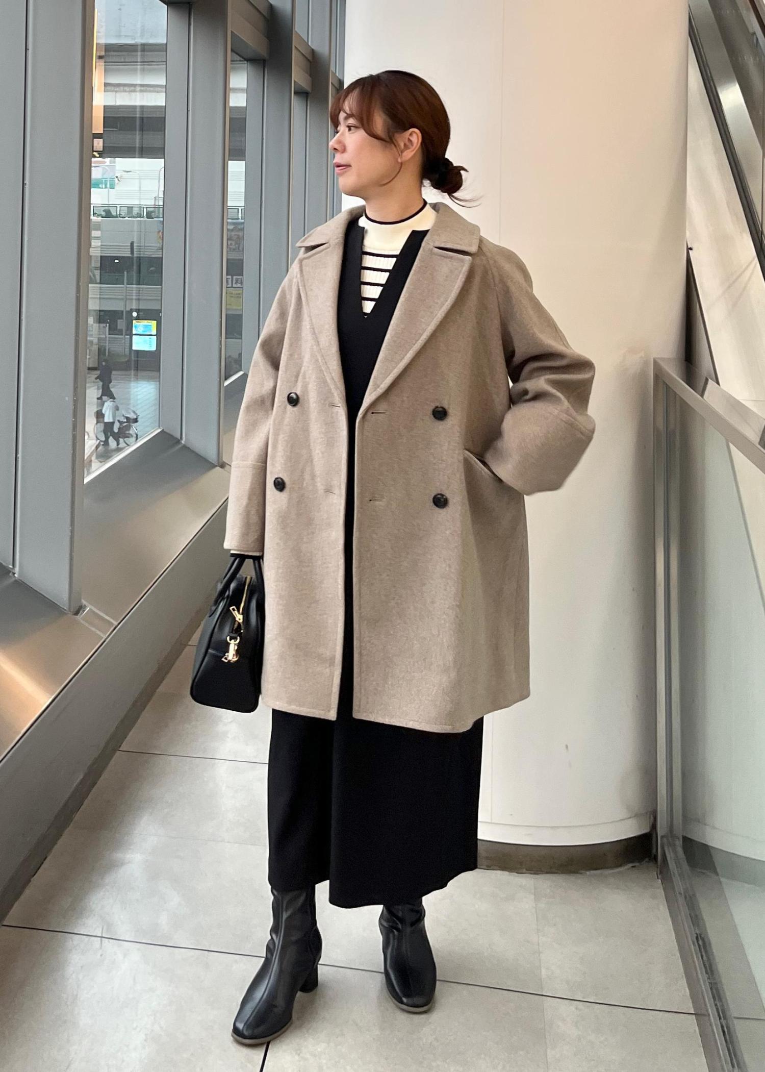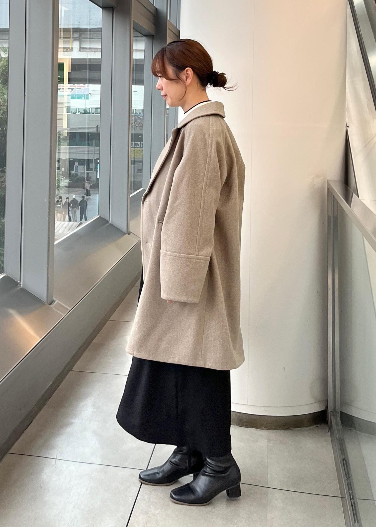 厚手のニットを着ても楽に羽織れるサイズ感で、軽くて楽な着心地です。 -