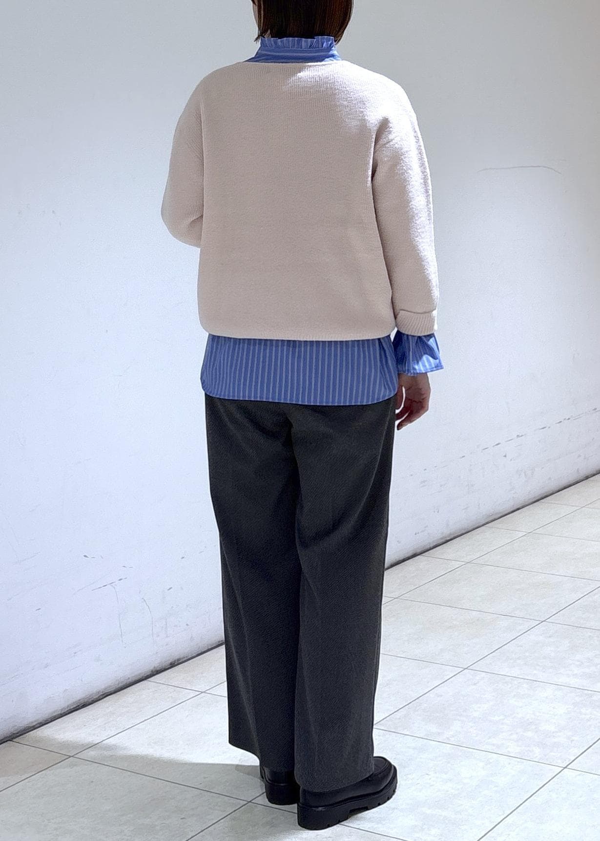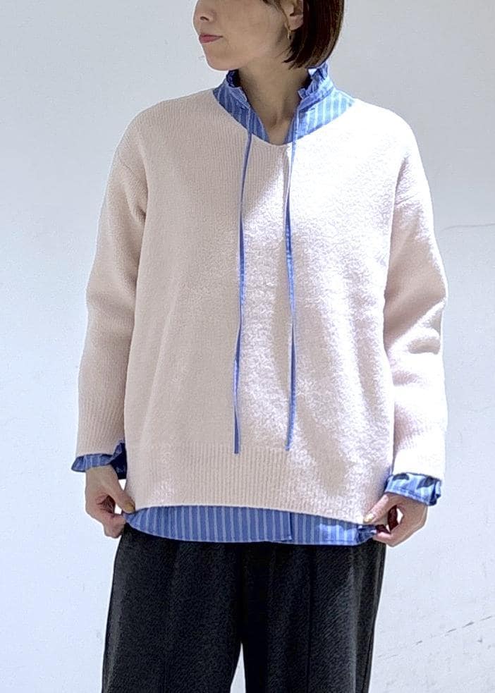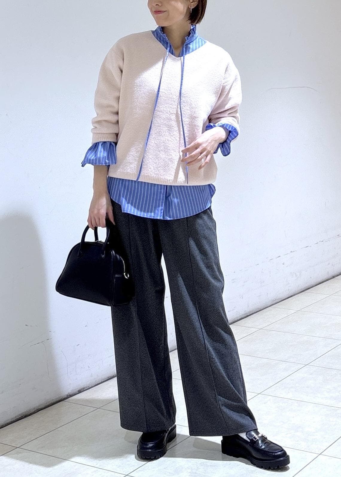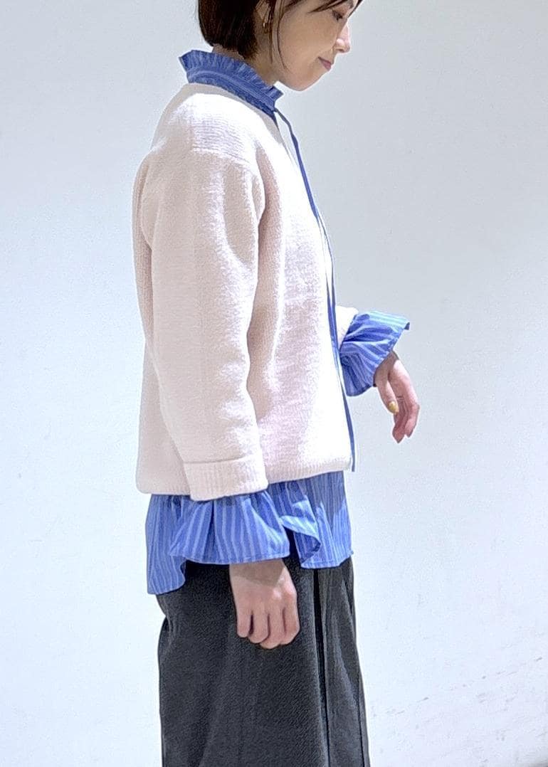 ニットやスウェットを重ねると首元のフリルがワンポイントになるので冬はレイヤードにおすすめです。 -