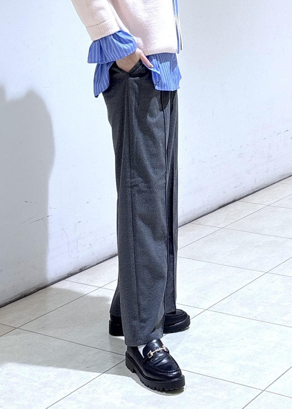 程よくゆとりがあり脚のラインを拾わず着用できます。