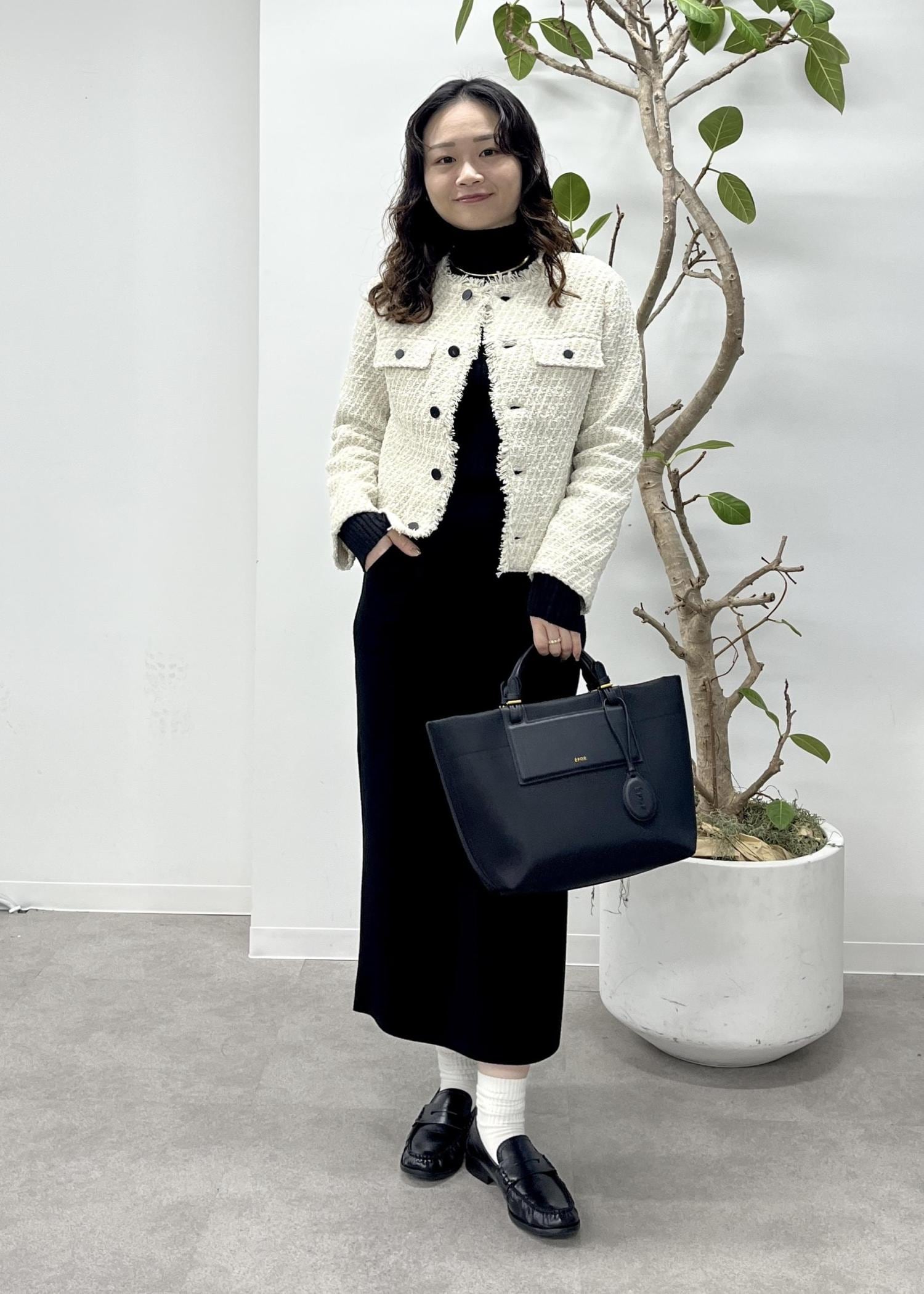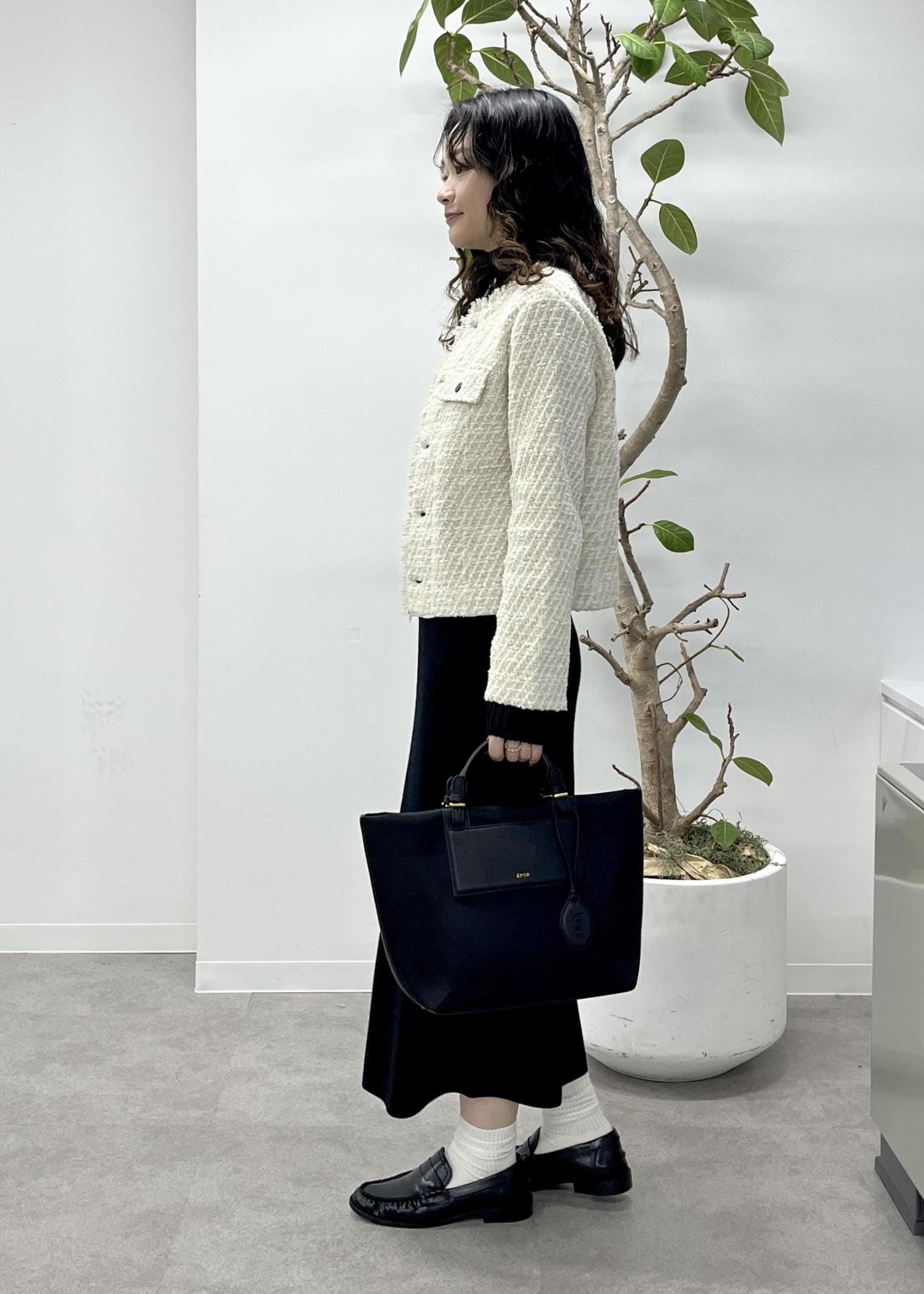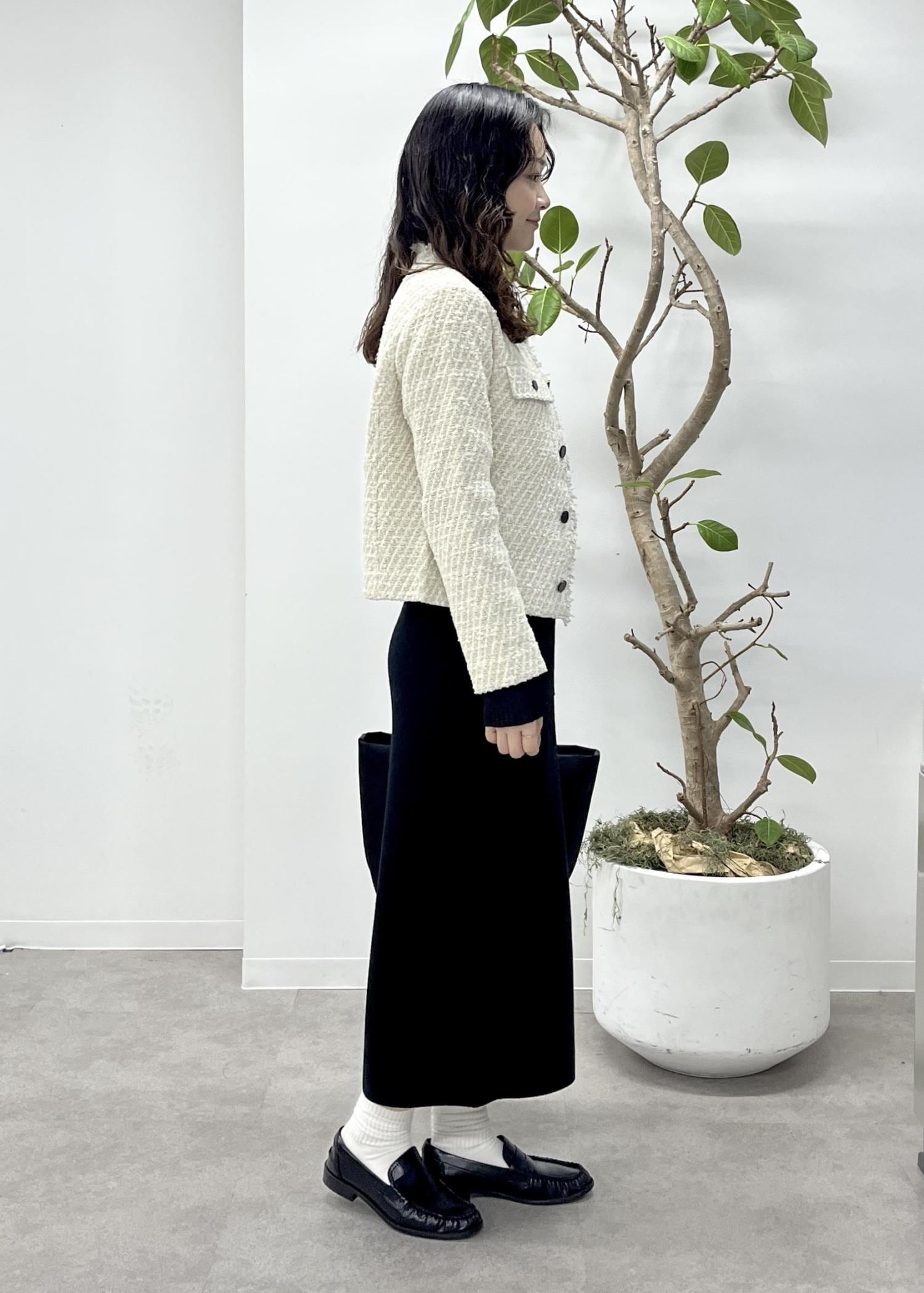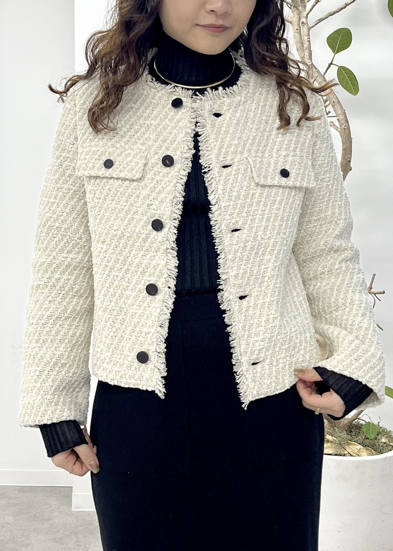 ツイードですが肩肘張らないラフに羽織れるジャケット。オンオフ兼用で使いやすいです◎ -