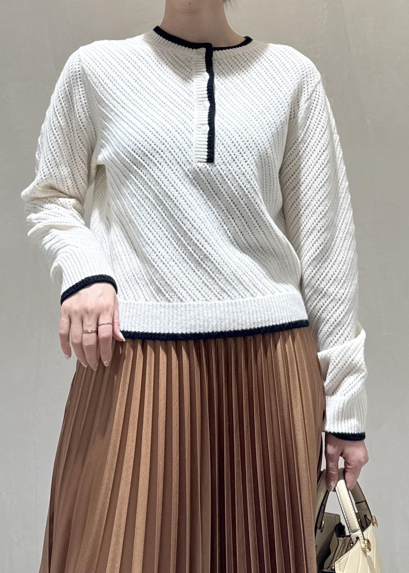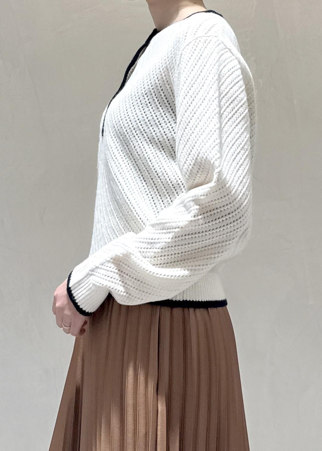 ROPÉカシミヤ混 透かし柄バイカラーニット/イージーケアオフホワイト / F¥27,500レビューカシミヤブレンドの肌触りが柔らかい素材。