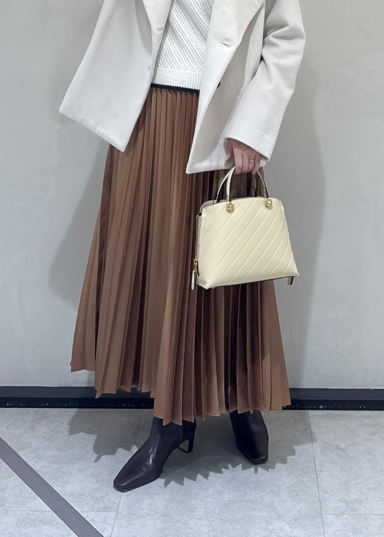 ROPÉシャイニープリーツスカート/イージーケアキャメル / F¥26,400レビュー上品な光沢があるサテン素材。