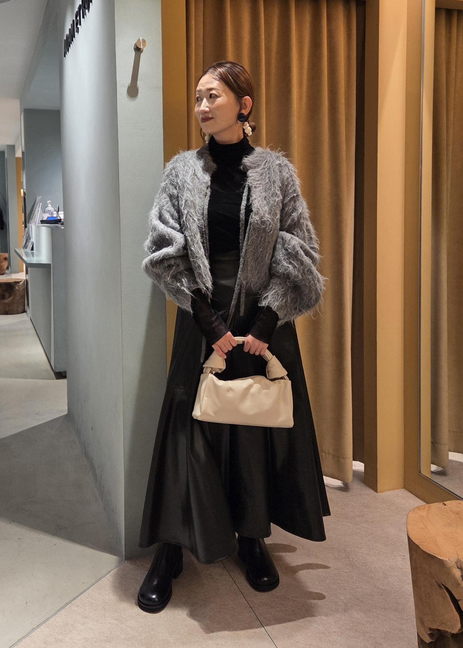 ADAM ET ROPÉ FEMMEアルパカフラッフィーカーディガンチャコール / F¥19,800レビューとっても暖かいです。見た目も可愛く、華やかです。ストラップはあえてほどいて着用しています。ワンピースや、Tシャツにデニムなどと合わせても可愛いですよ。