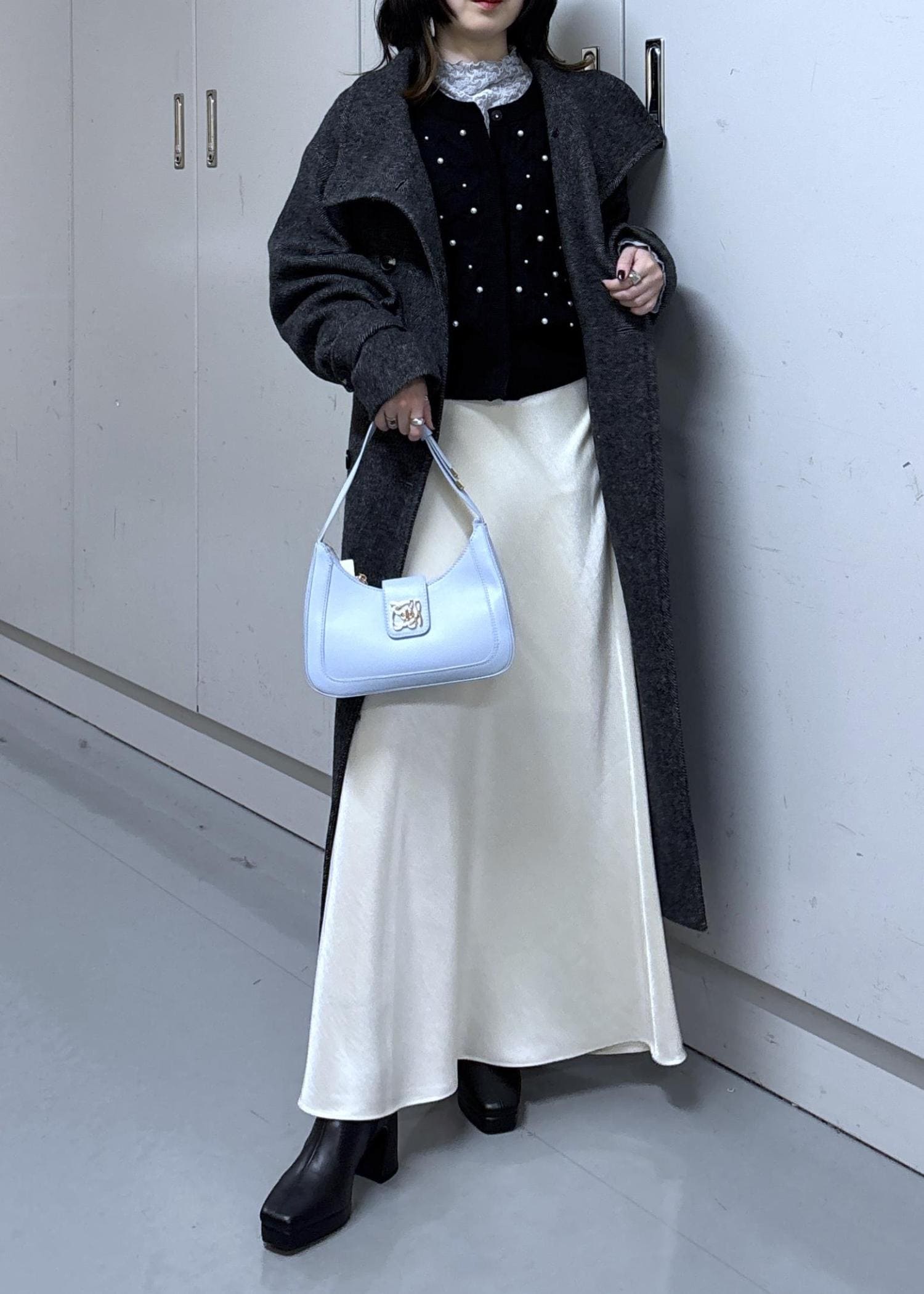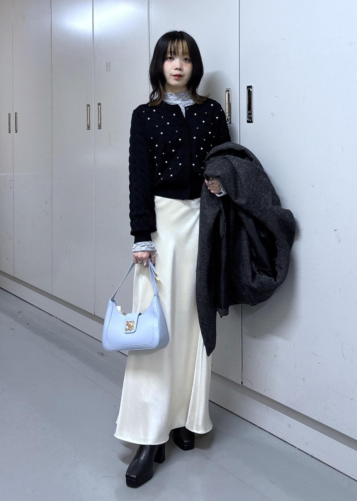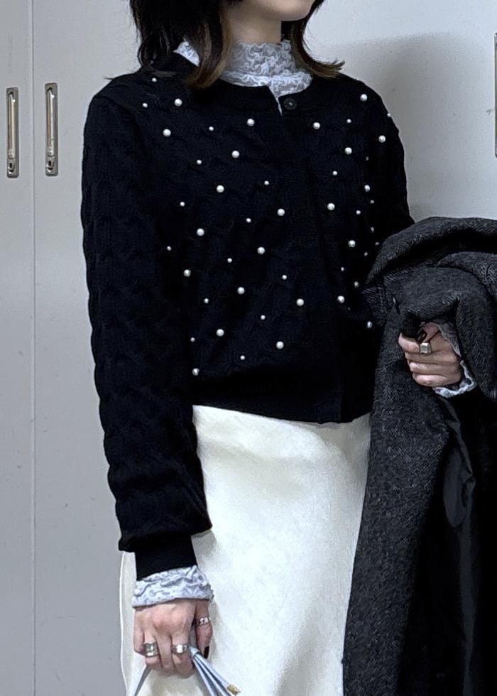 大小様々なサイズのパールが華やかで、冬のコーデにぴったり! -