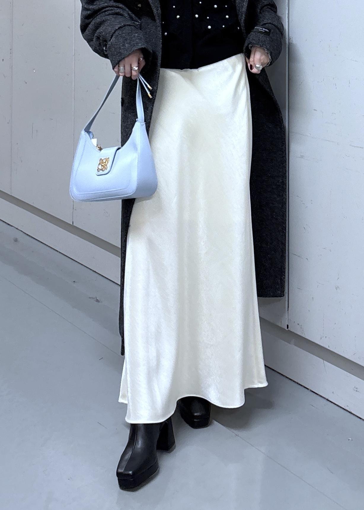 VISシャイニーナローフレアスカートキナリ / F¥6,589レビュー光の加減でキラッと輝く素材感が、大胆すぎない華やかさ✨